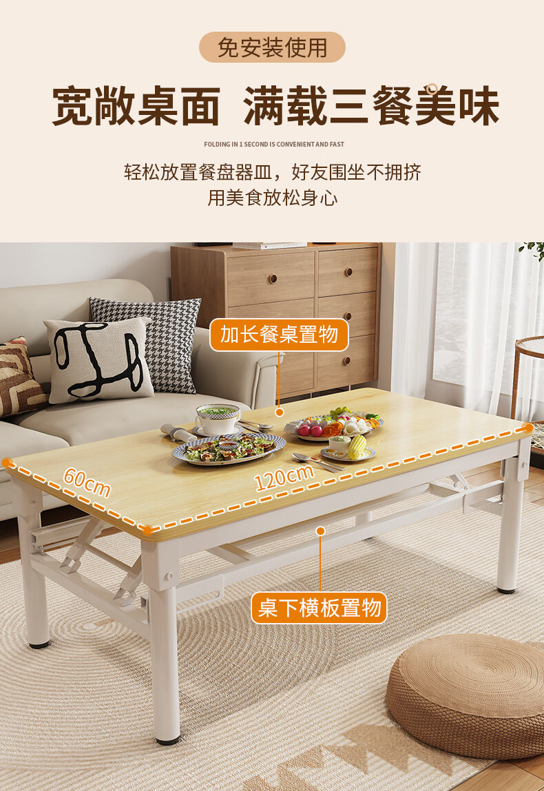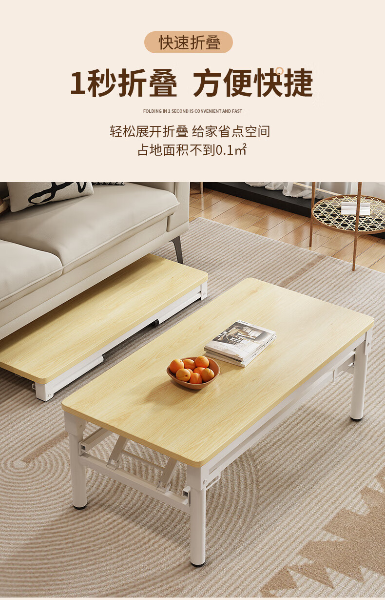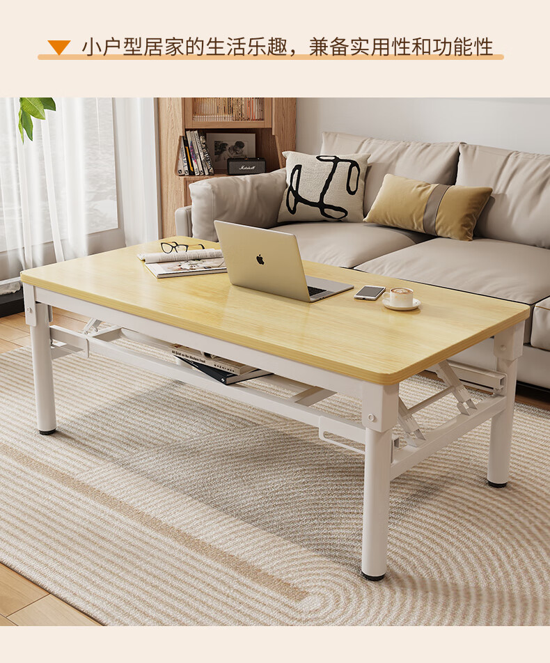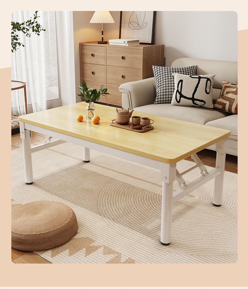 Xing'ao Shengtang foldable tea table for living room, small apartment, non-solid wood small table, simple tea table for bedroom study, white frame, white surface, single layer 100*50*55 single table