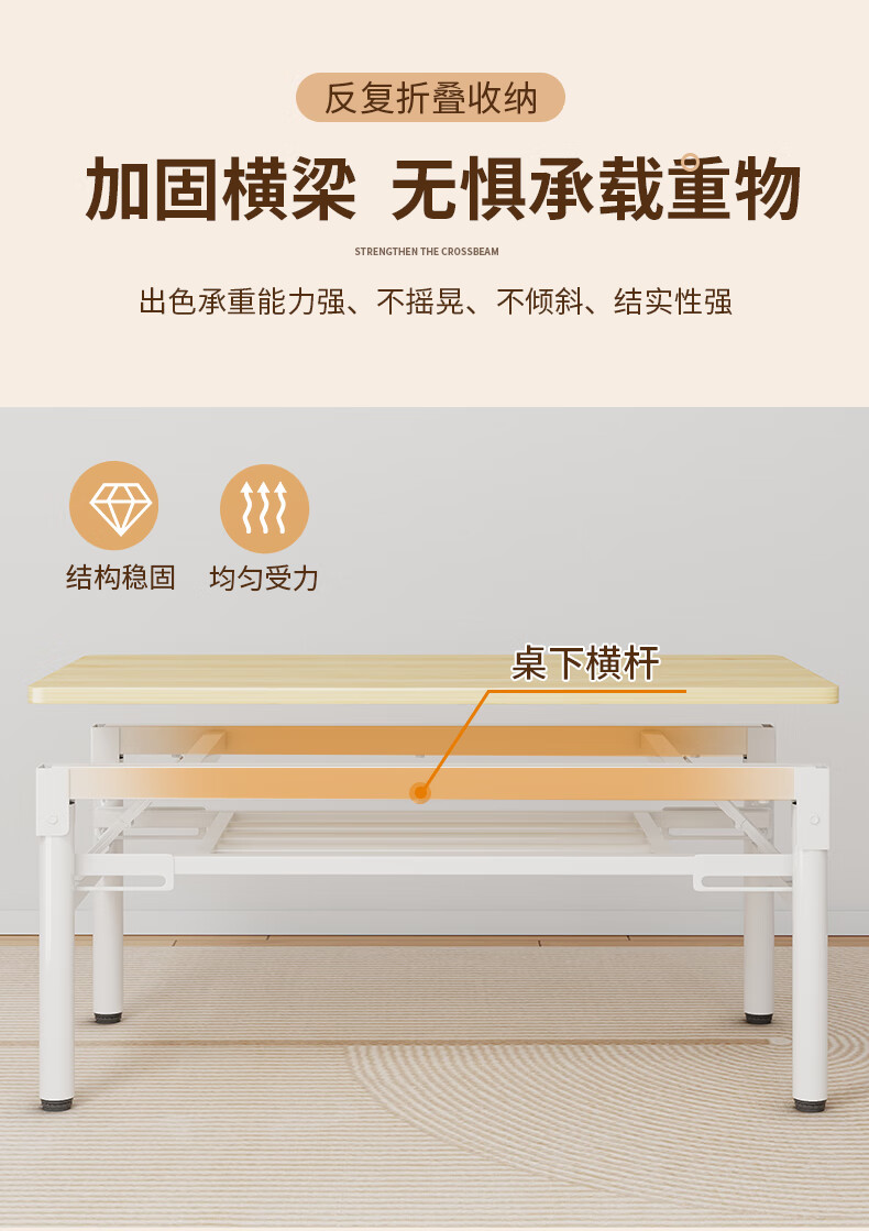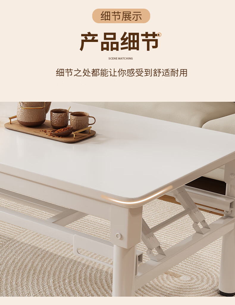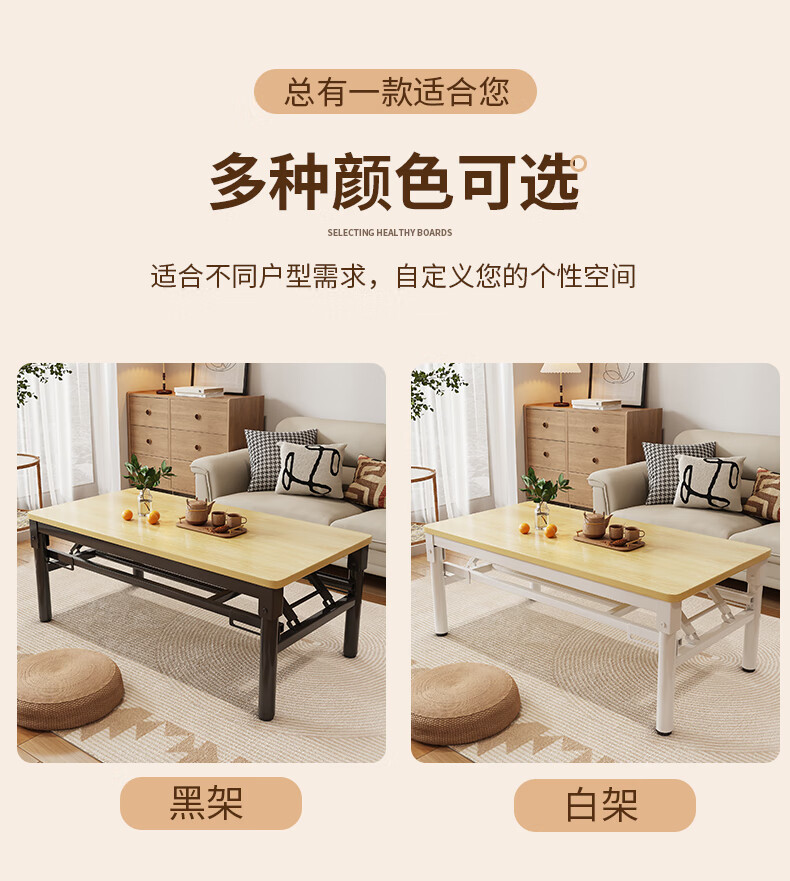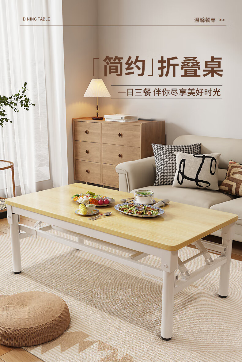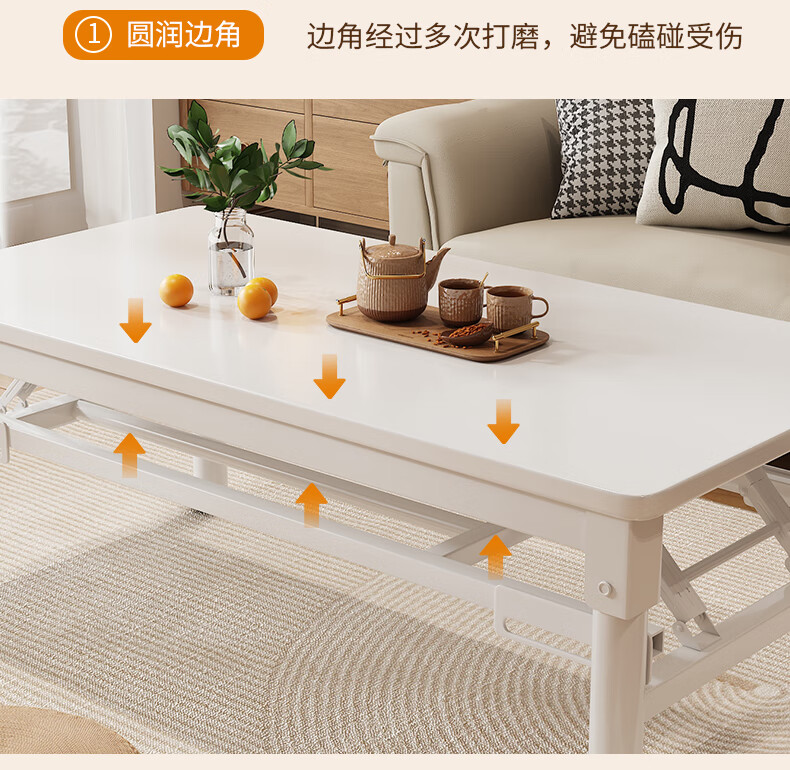 Xing'ao Shengtang foldable tea table for living room, small apartment, non-solid wood small table, simple tea table for bedroom study, white frame, white surface, single layer 100*50*55 single table