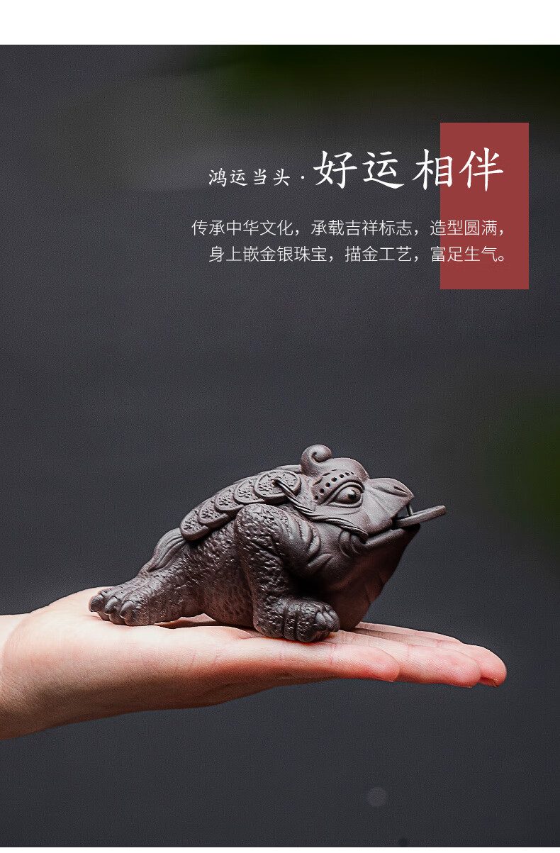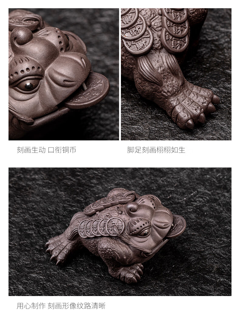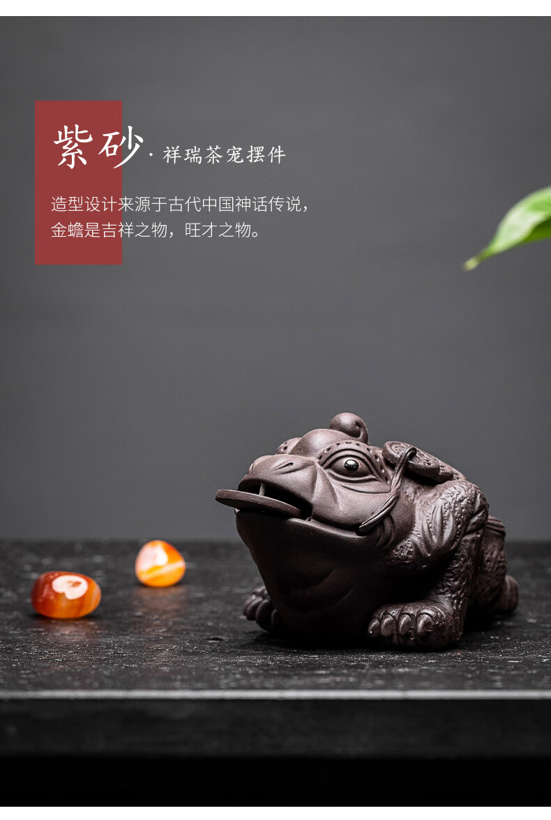Fat Donglai's same tea pet purple sand ink art three-legged golden toad ornaments can support Kung Fu tea set accessories tea play table decoration three-legged purple sand golden toad