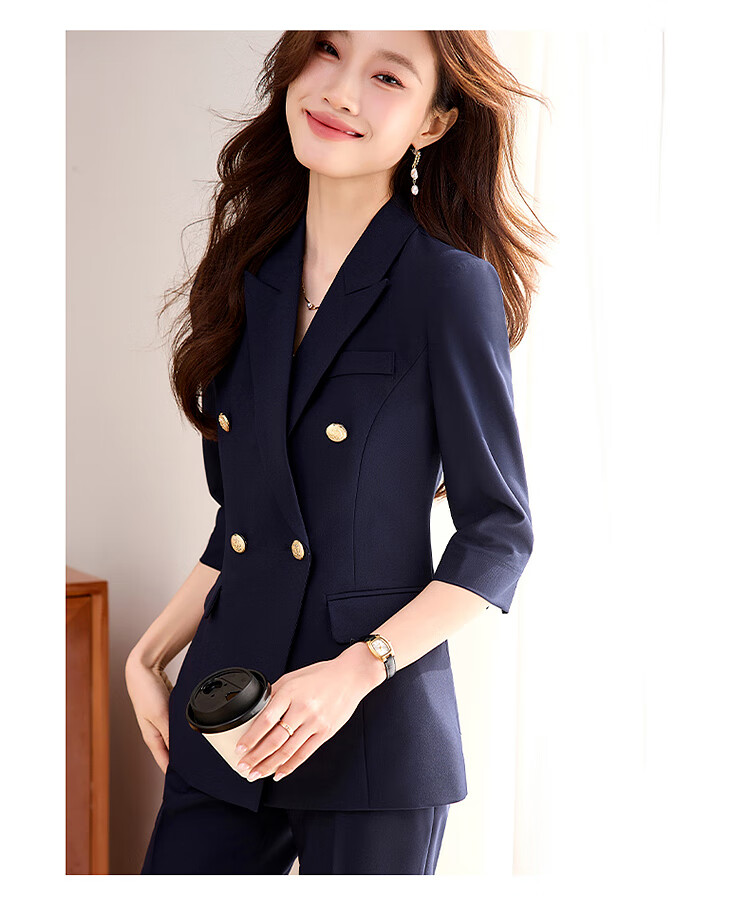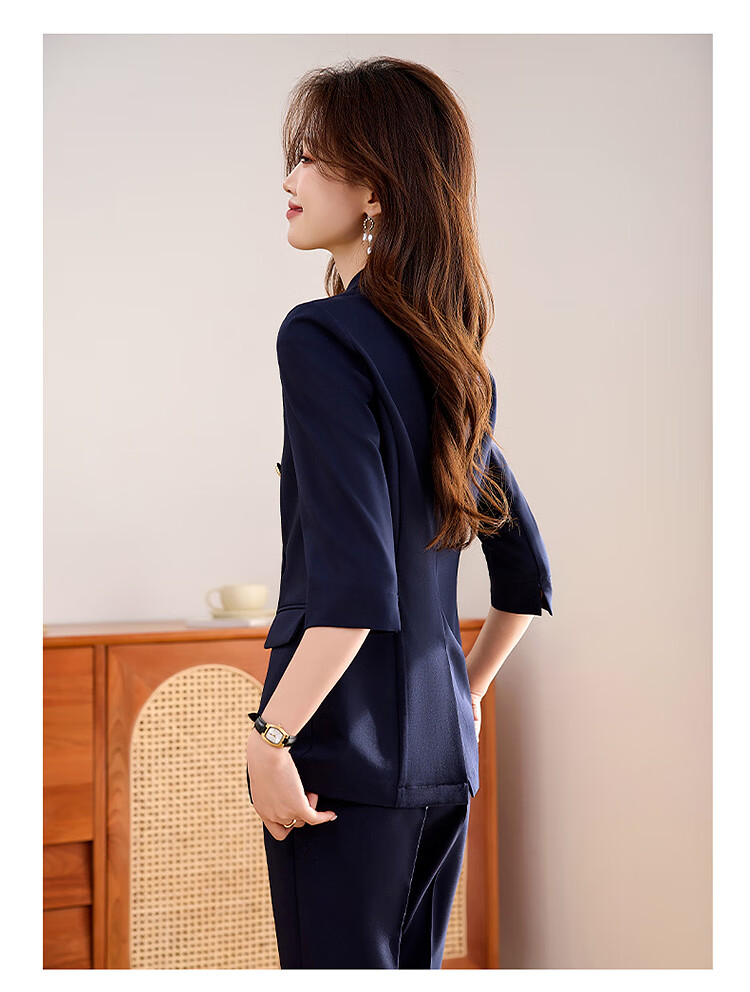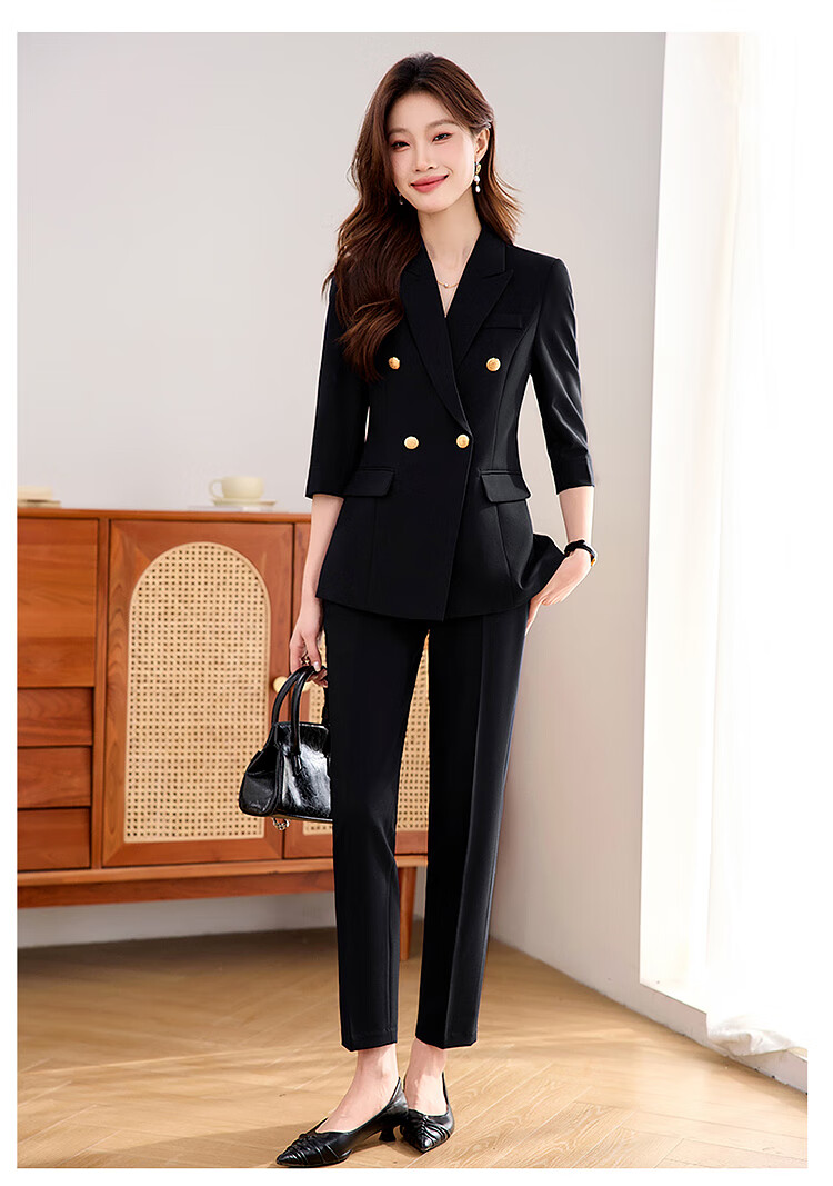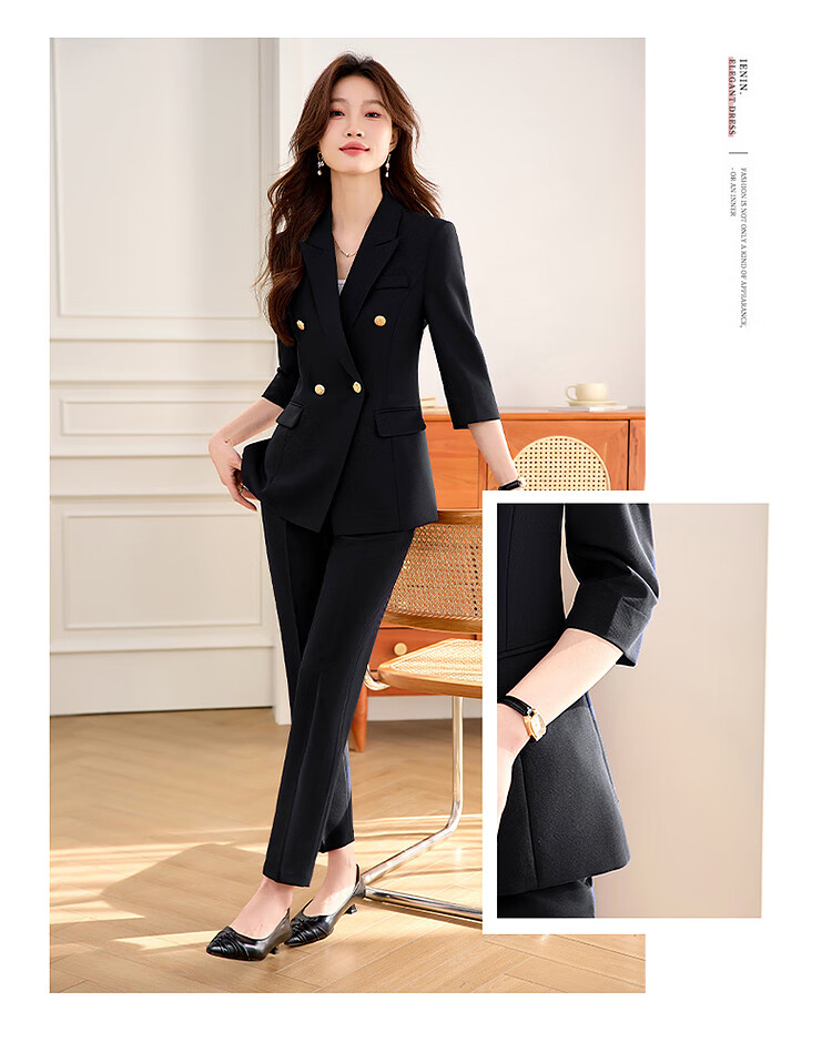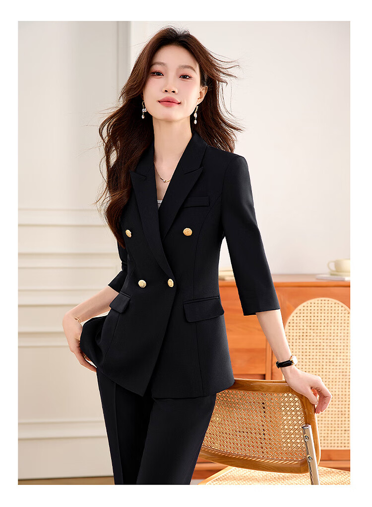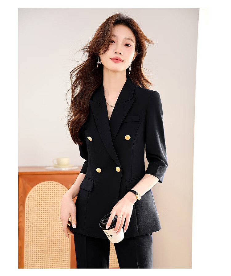 Woodpecker Summer Business Suit Suit Women's Thin Interview Formal High-end Mid-Sleeve Suit Jacket Temperament Work Wear Black Suit + Black Formal Pants L