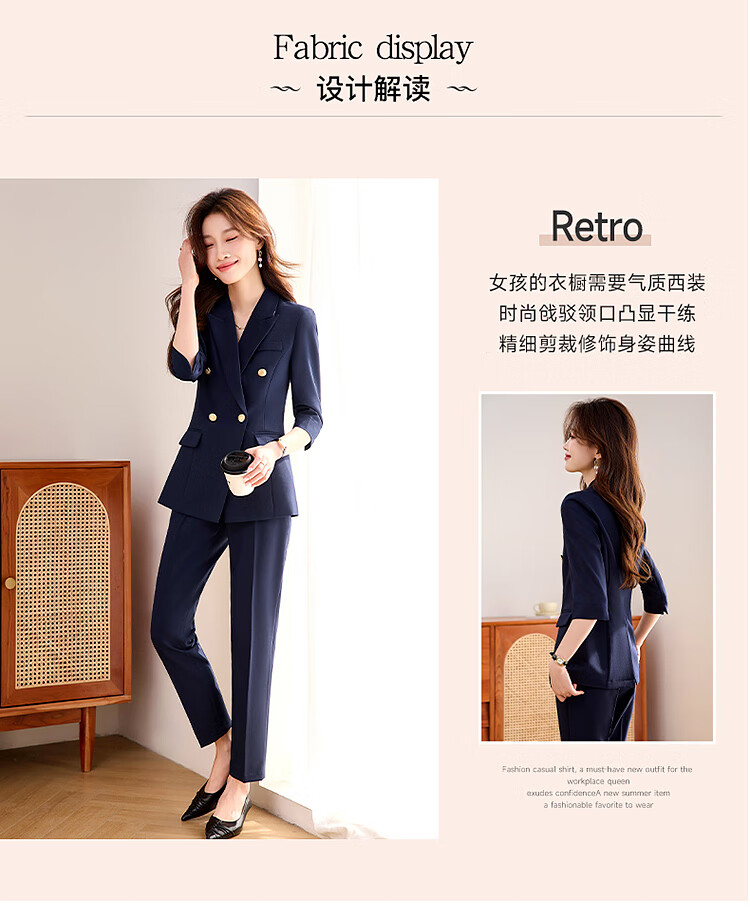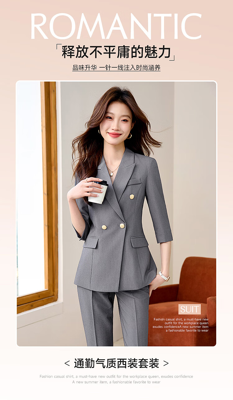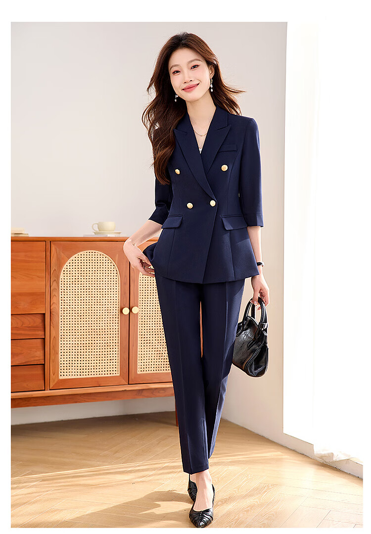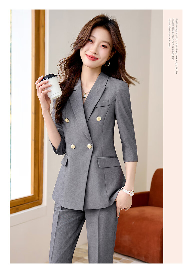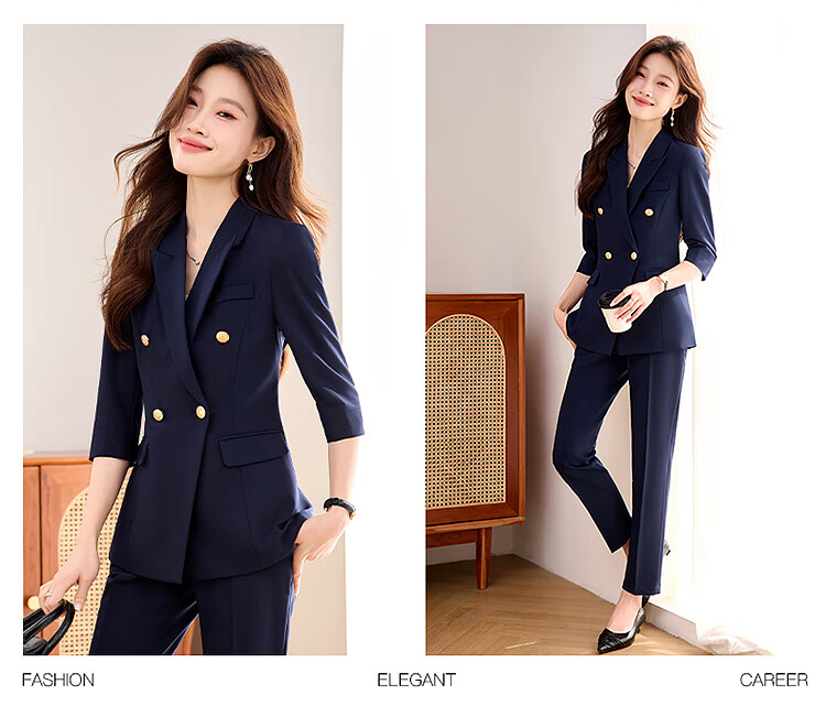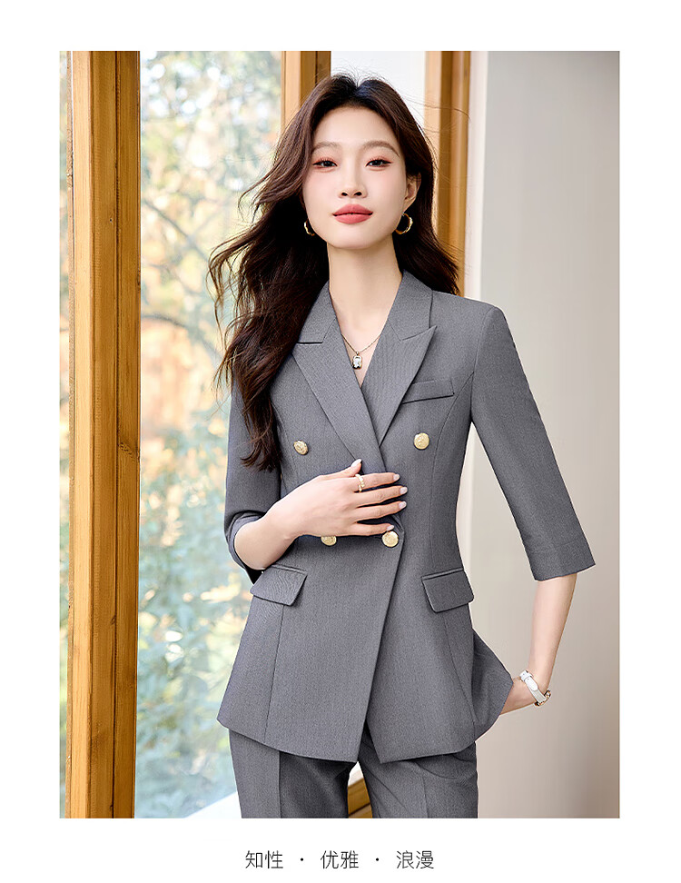 Woodpecker Summer Business Suit Suit Women's Thin Interview Formal High-end Mid-Sleeve Suit Jacket Temperament Work Wear Black Suit + Black Formal Pants L