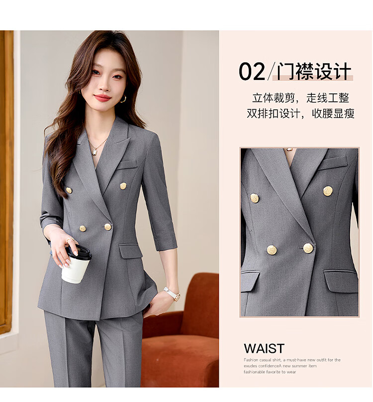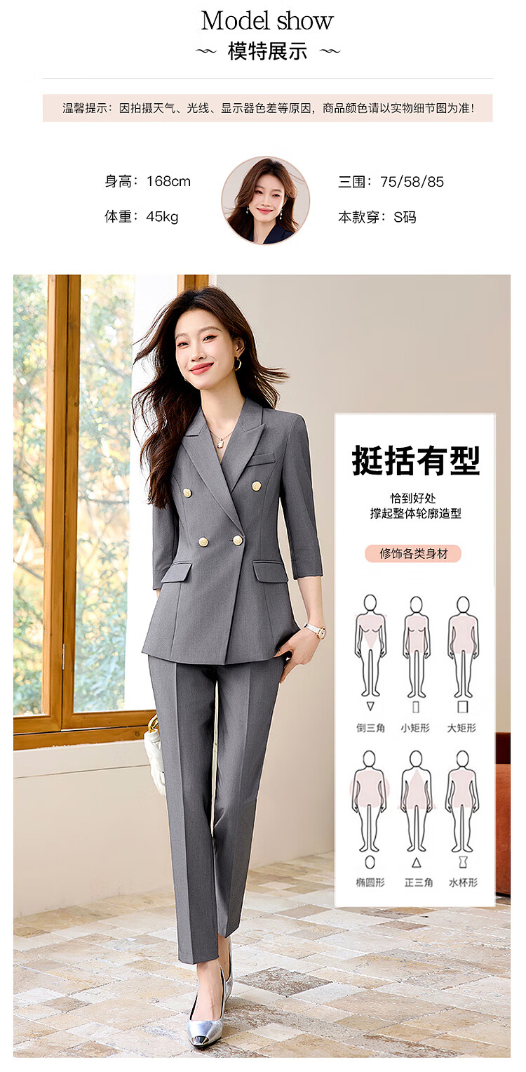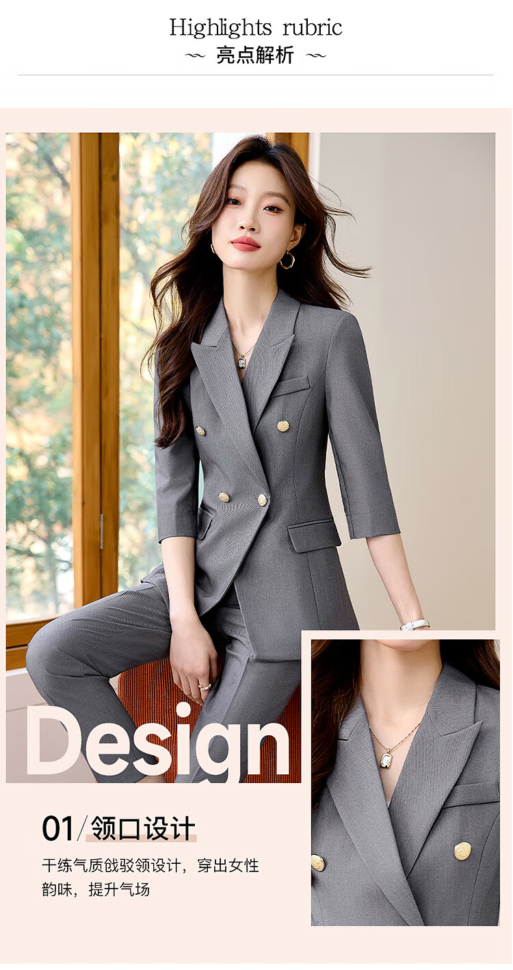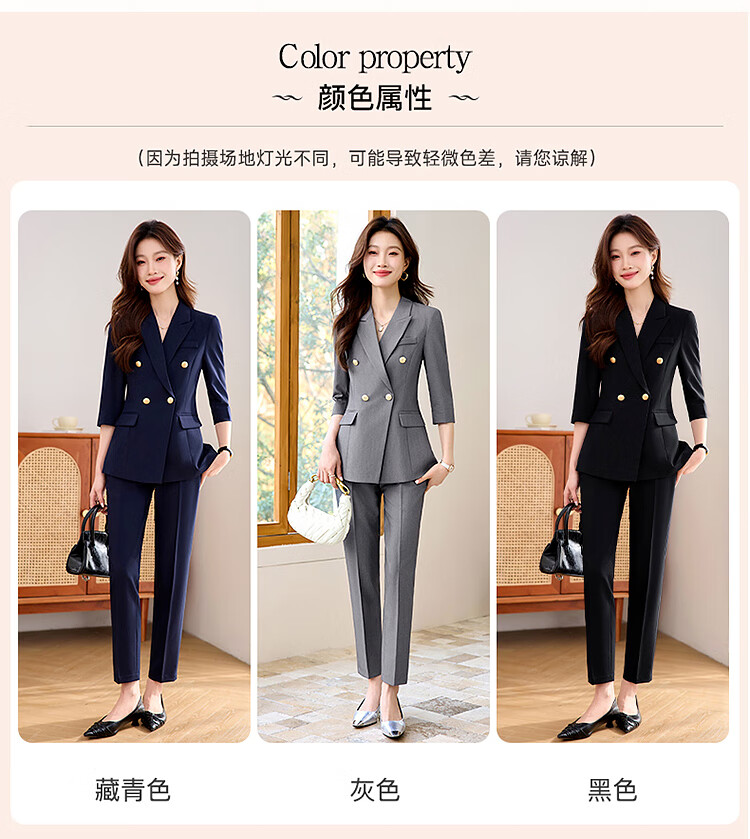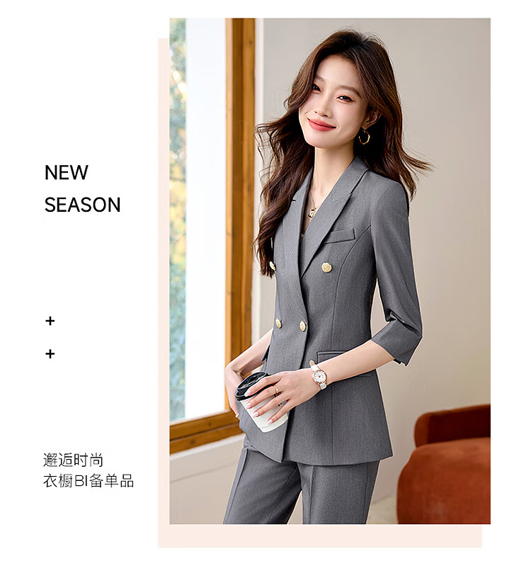 Woodpecker Summer Business Suit Suit Women's Thin Interview Formal High-end Mid-Sleeve Suit Jacket Temperament Work Wear Black Suit + Black Formal Pants L