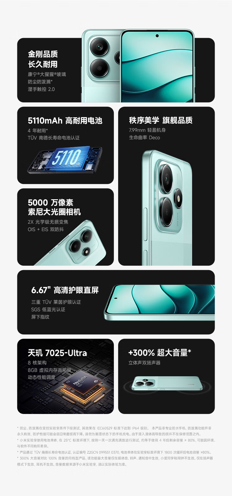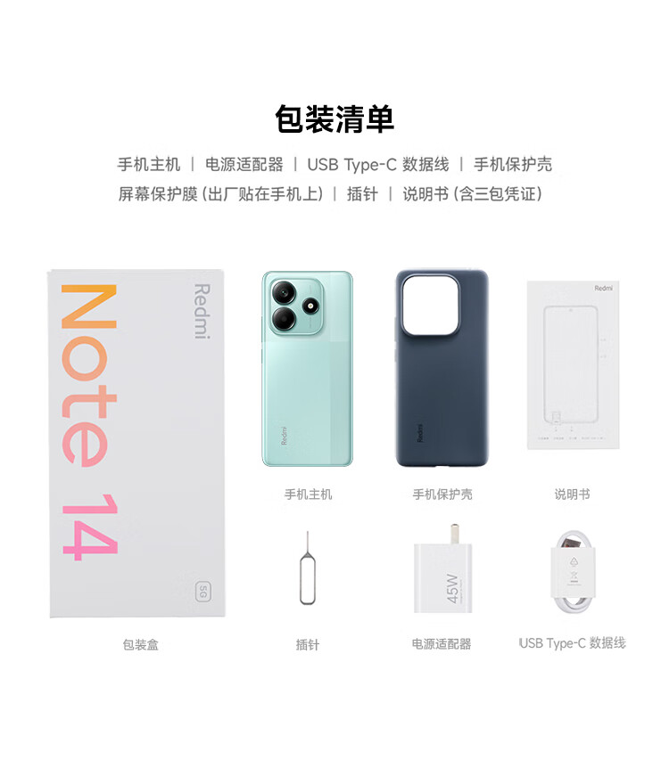 Xiaomi Redmi note14 5G mobile phone Redmi smart backup phone for the elderly recommended large battery and ultra-durable mobile phone National subsidy MC31A Midnight Black 8GB+128GB Standard configuration