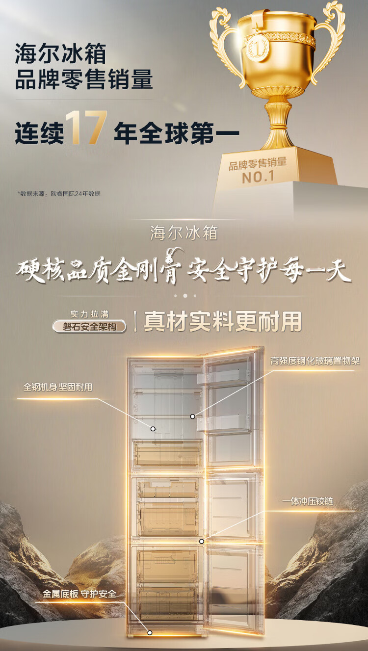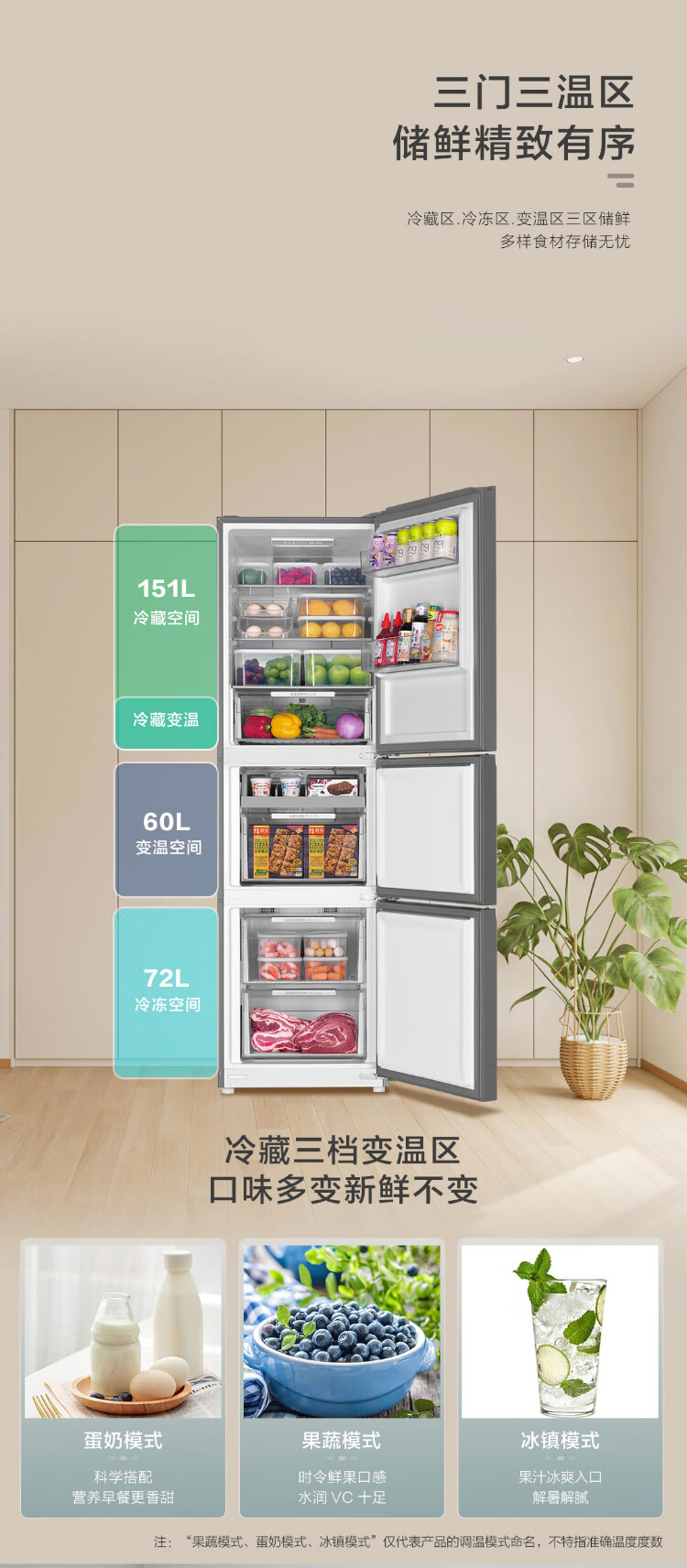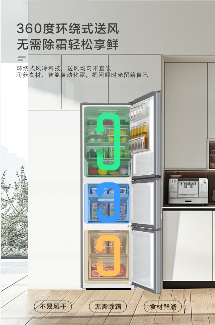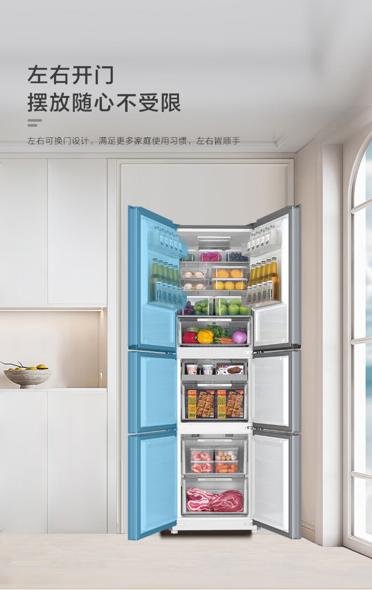 Haier three-door refrigerator, air-cooled, frost-free 283, upgraded to one level, dual-variable, energy-saving, minus-30 degrees deep-freezing, quick-freezing, household small-sized, high-looking refrigerator, small, adjustable left and right doors + food-grade safety materials + energy-saving, level 1 energy efficiency