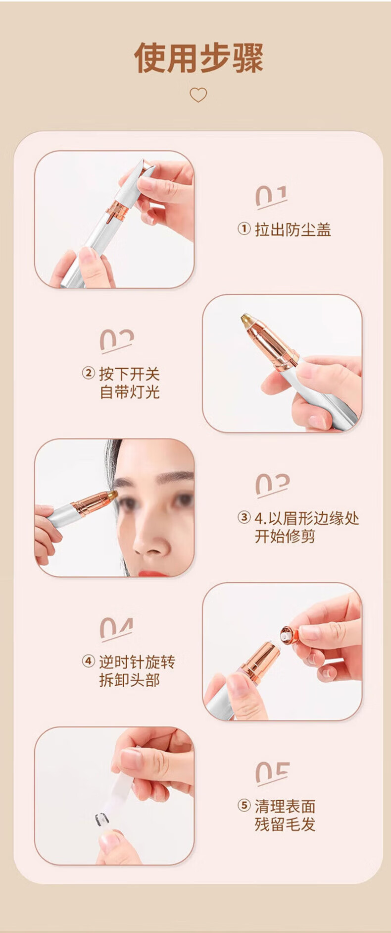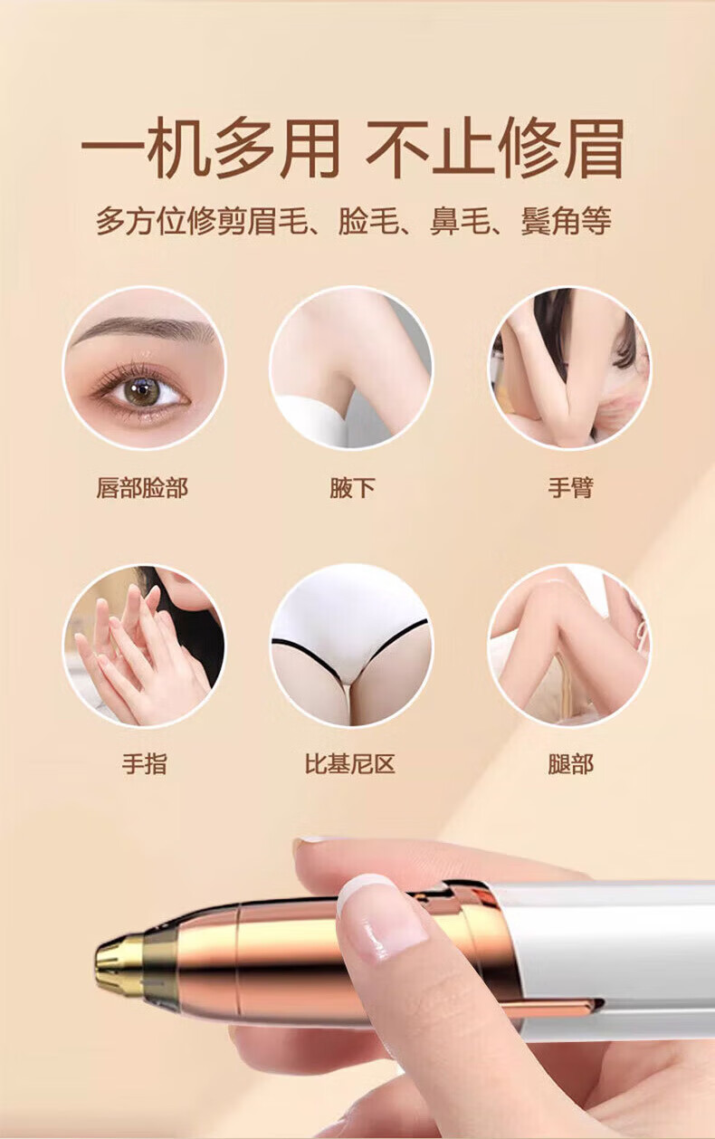 Xiaomi clip electric eyebrow trimmer for women, automatic eyebrow trimming artifact, hair removal instrument, shaver, eyebrow beauty eyebrow trimming pen, portable shaver, private shaver for men, multi-functional, rechargeable, white fill-in light, ivory white
