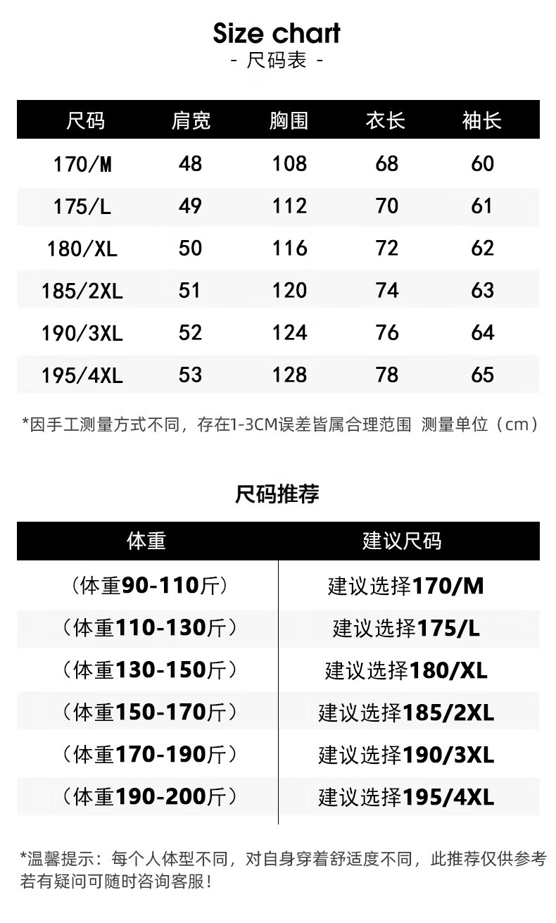 China (cm) 165 / 88-90 170 / 96-98 175 / 108-110 180 / 118-122 185 / 126-130