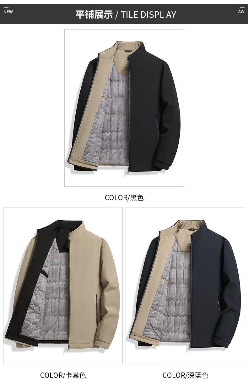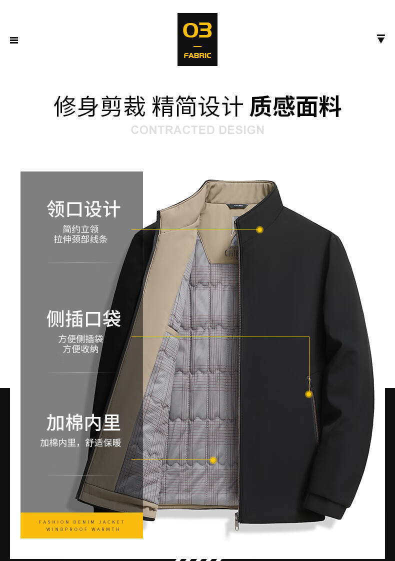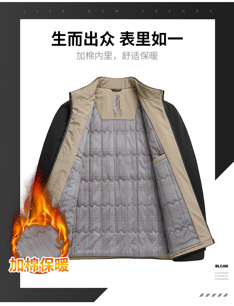Pierre Cardin (Pierre Cardin) Dad's Autumn and Winter Jackets, Middle-aged and Elderly Men's Lightweight Cotton Jackets, Grandpa's Casual Padded Thick Jackets, Khaki Color-8818 3XL 190