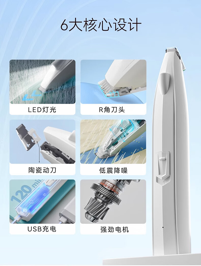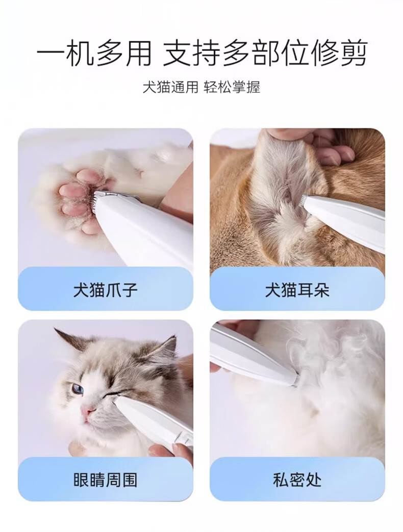 Pilot cat foot shaver, pet clipper, special shaving electric clipper, cat and dog claw and foot hair trimmer, new upgrade, LED rechargeable model, simple white