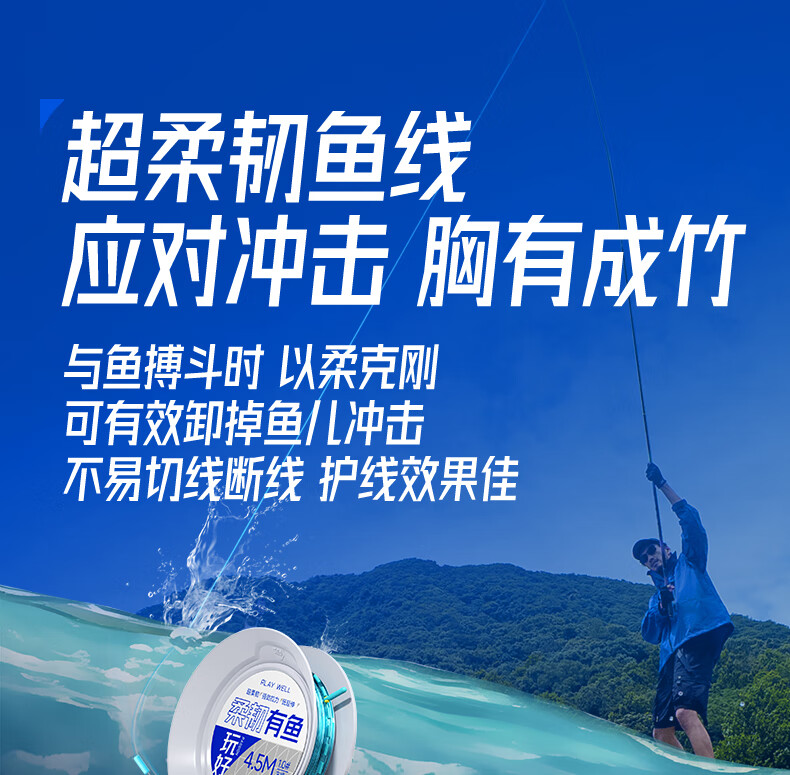 Weituosen Flexible Fishing Soft Line Set Knotless Main Line Product Taiwan Fishing Strong Tension Fishing Line 4.5 Meters Flexible Not Only No Knots Flexible Fishing No. 1.5