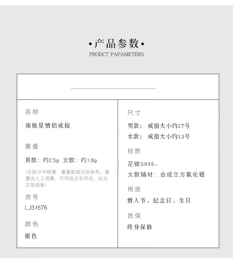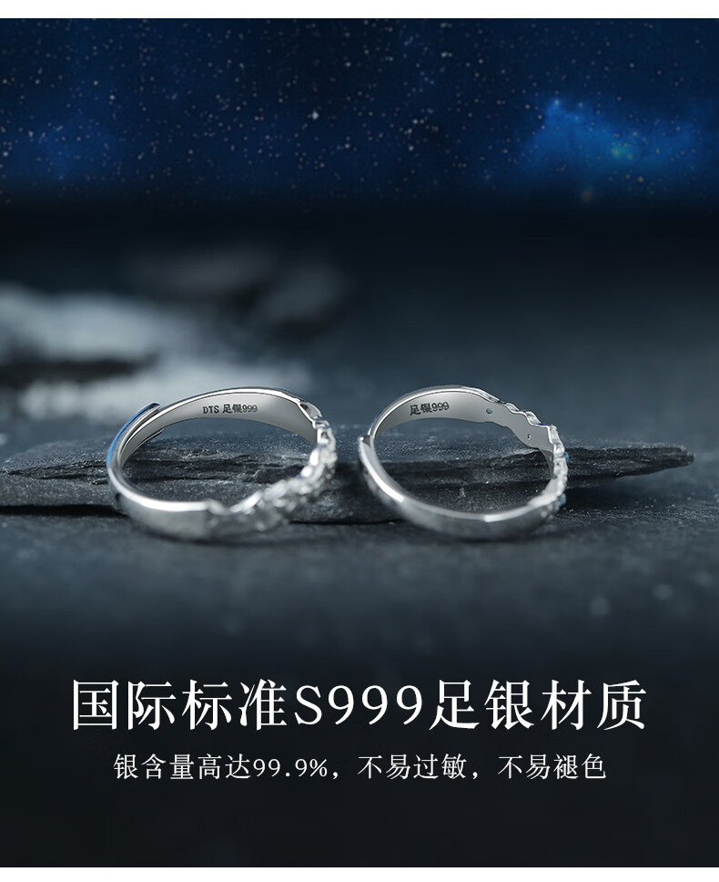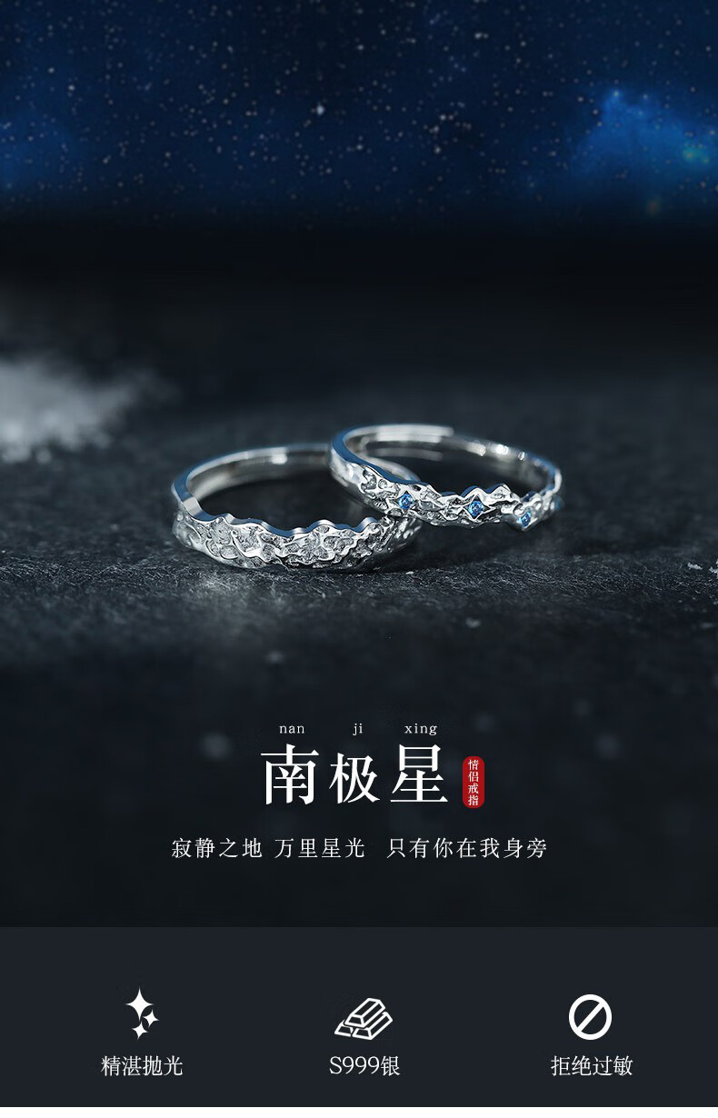Baolian Baolian Nanjixing 999 pure silver couple ring niche design female and male pair light luxury ring anniversary gift Nanjixing S999+True Love Flower Box+Certificate No Specifications