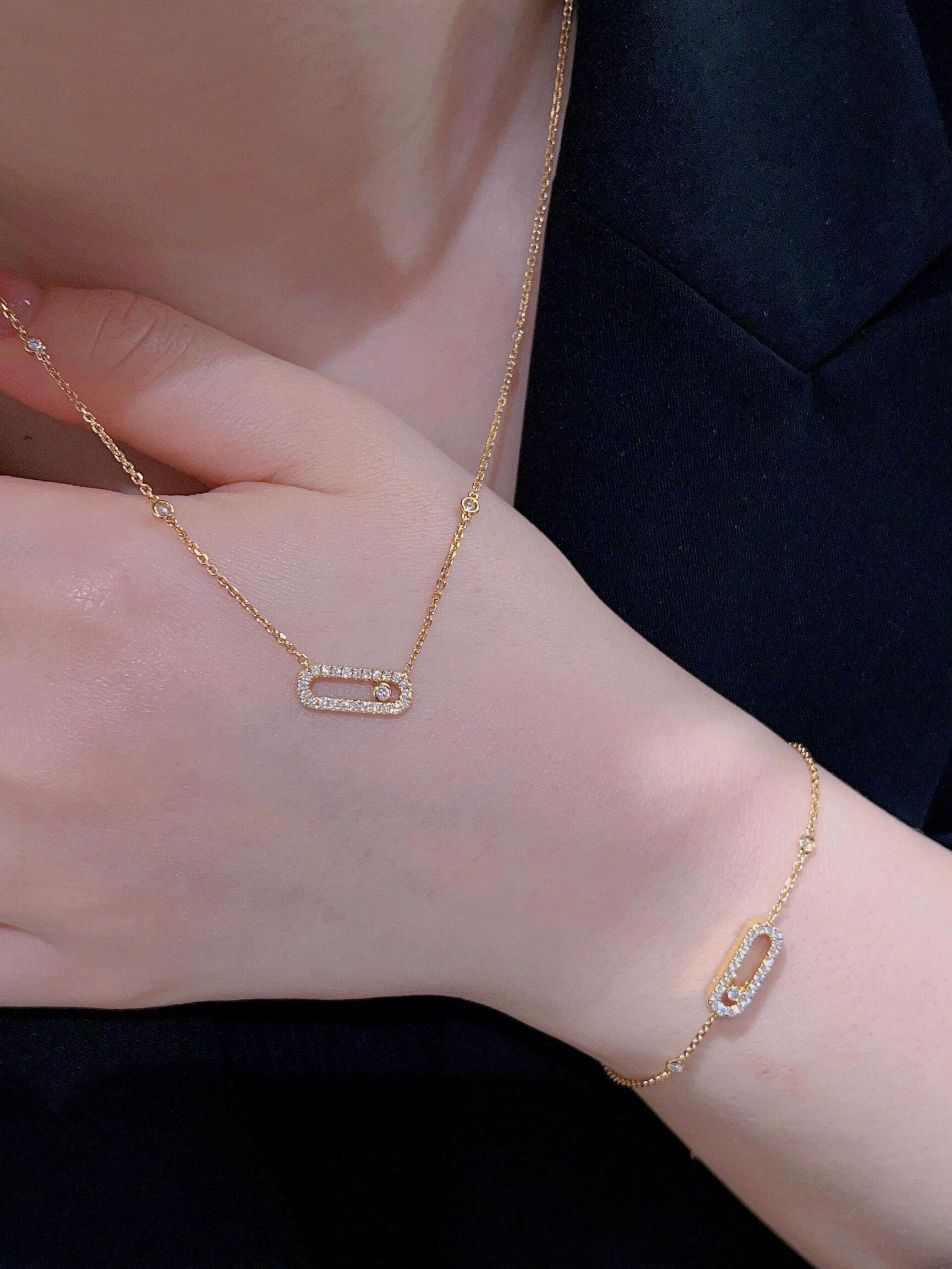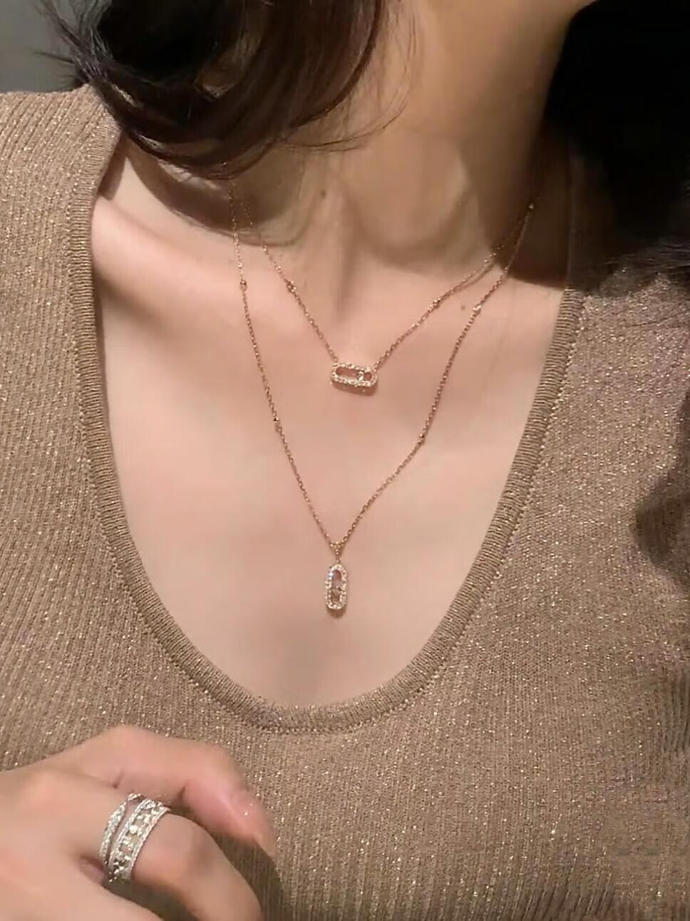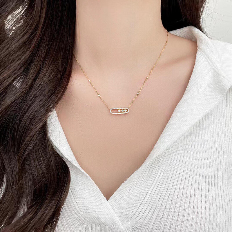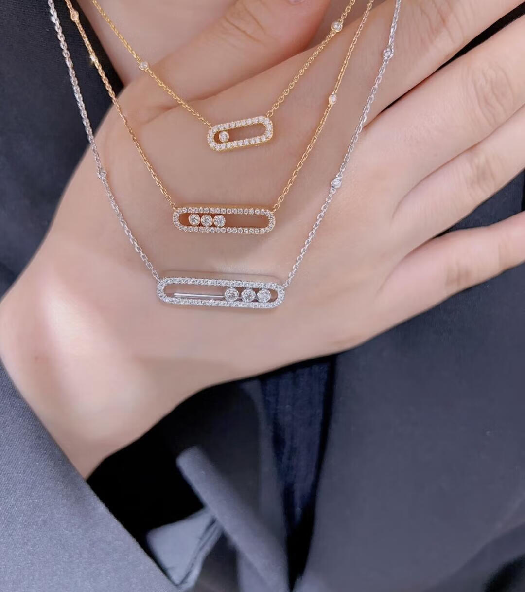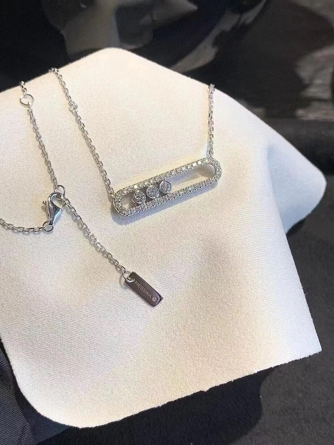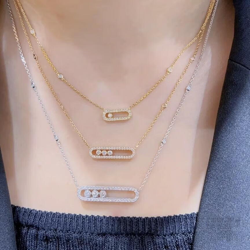 Olevo necklace three diamond sliding BabyMove full diamond light luxury white gold 18k color rose gold pendant female clavicle chain large full diamond three diamond white gold