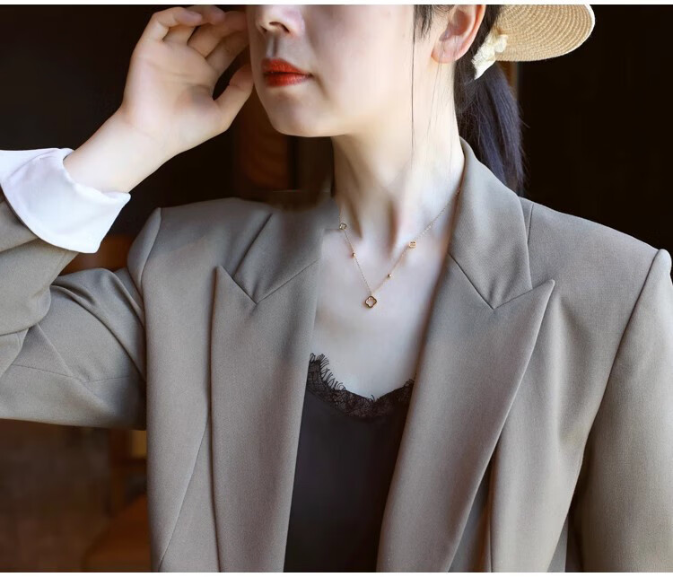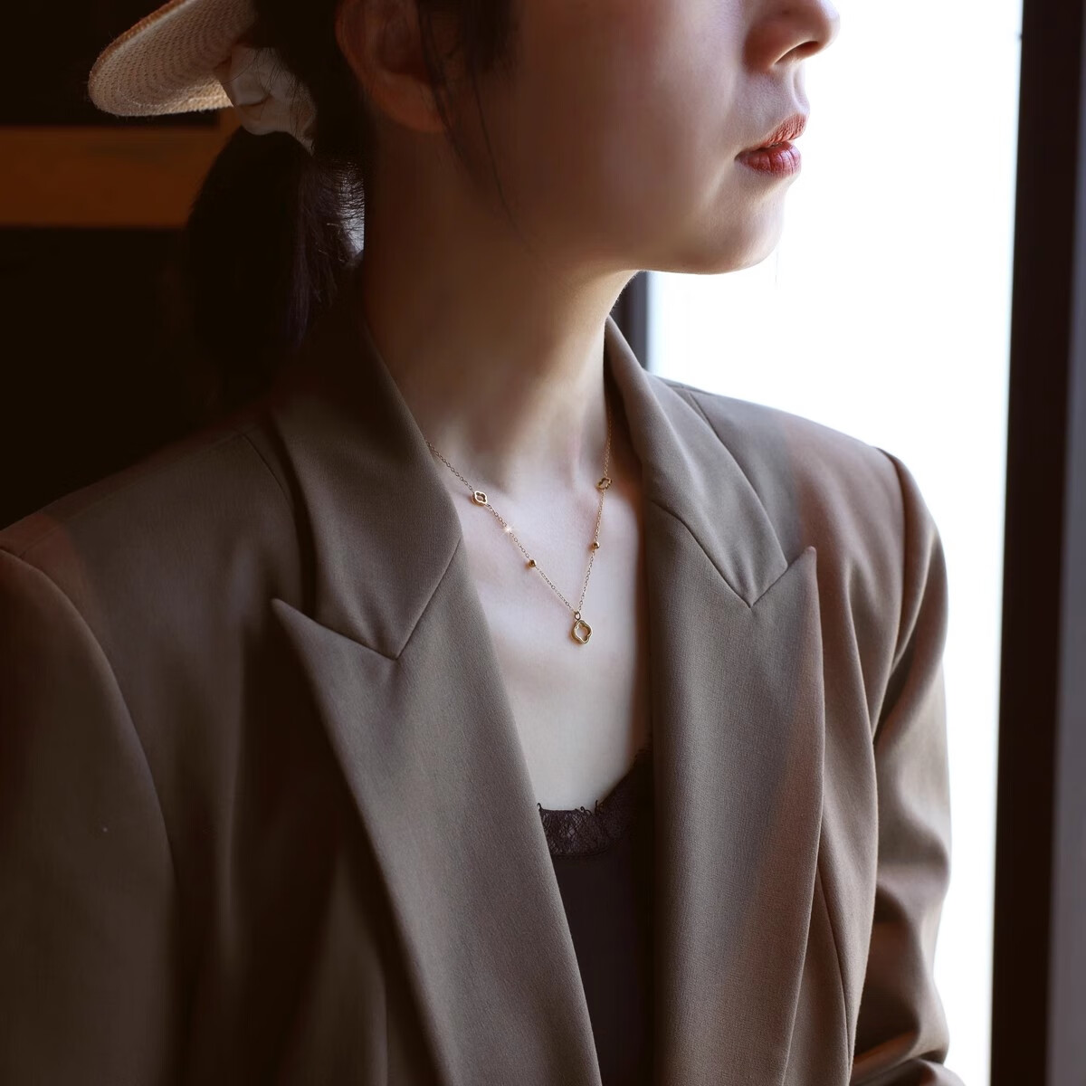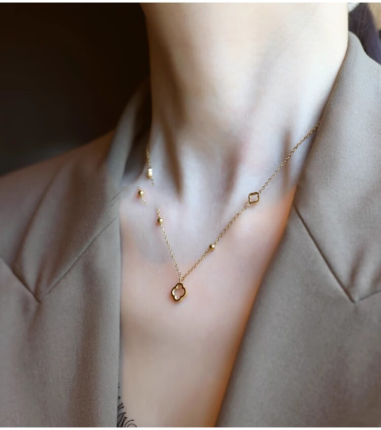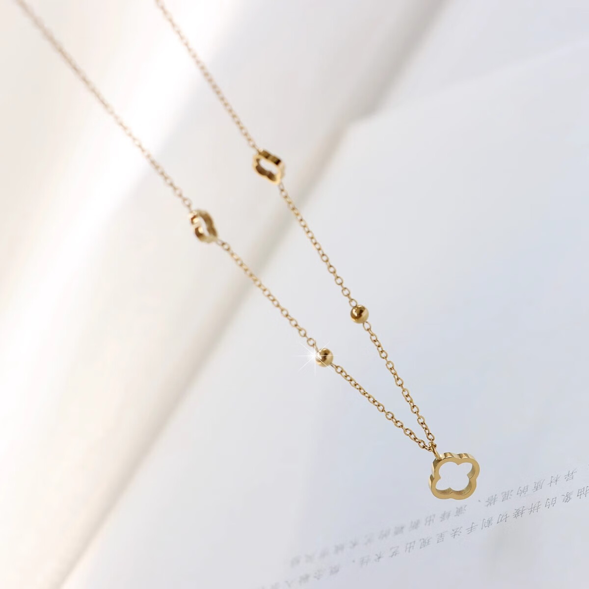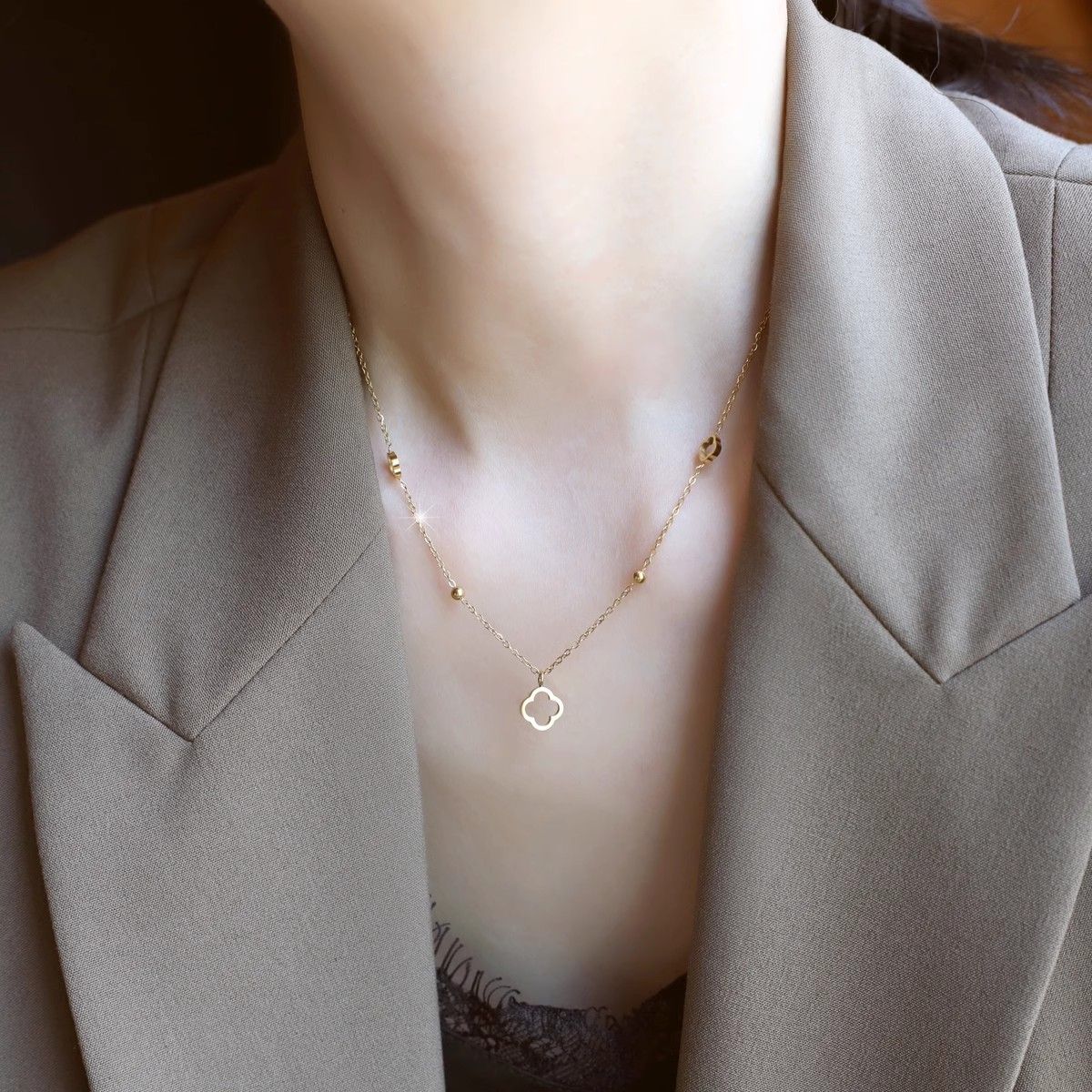 Olevo18k gold hollow four-leaf clover necklace for women 2025 new light luxury clavicle chain pendant for girlfriend and best friend hollow four-leaf clover necklace 40+5