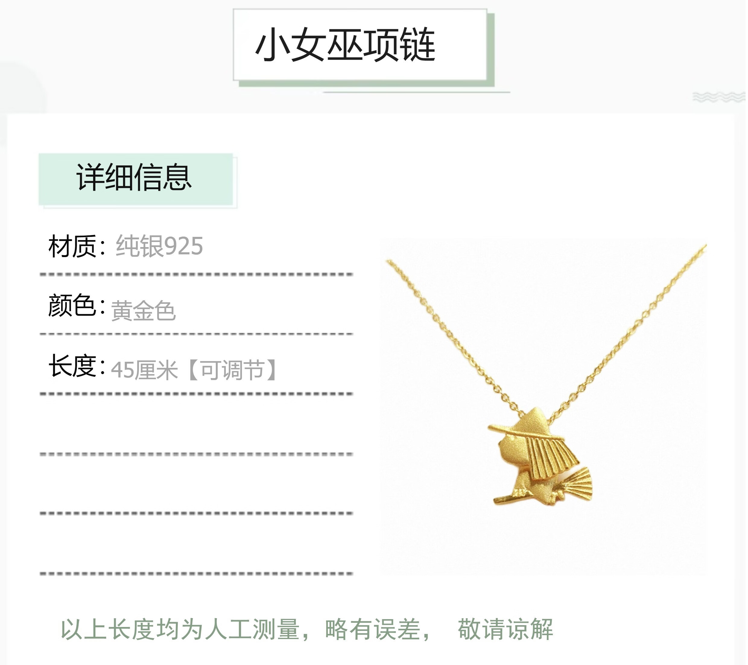 Olevo little witch necklace for women sterling silver plated 18K gold broom pendant clavicle chain design niche fashion high-end little witch necklace