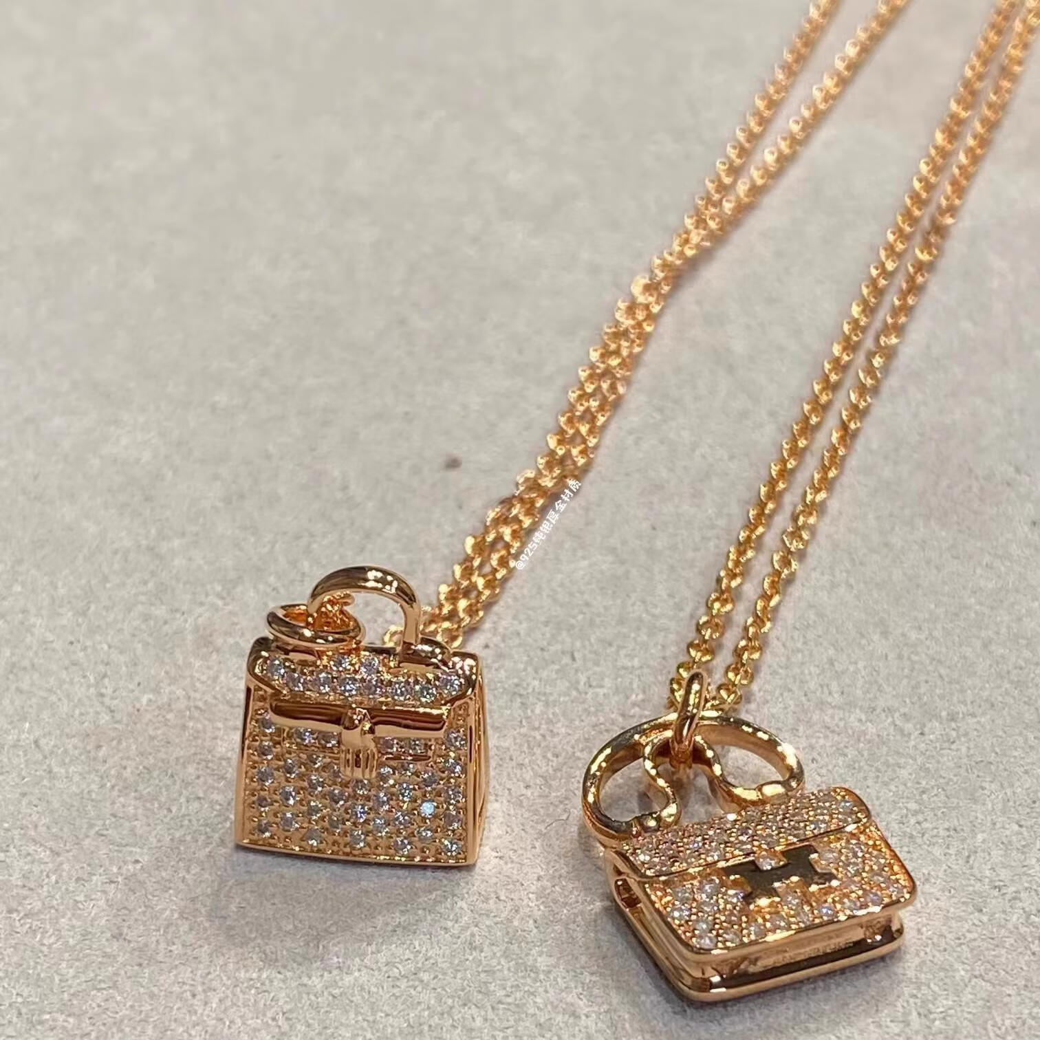 Olevo 18K rose gold Kang Kang bag necklace full of diamonds H letter pendant light luxury luxury internet celebrity clavicle chain 2024 new version rose gold