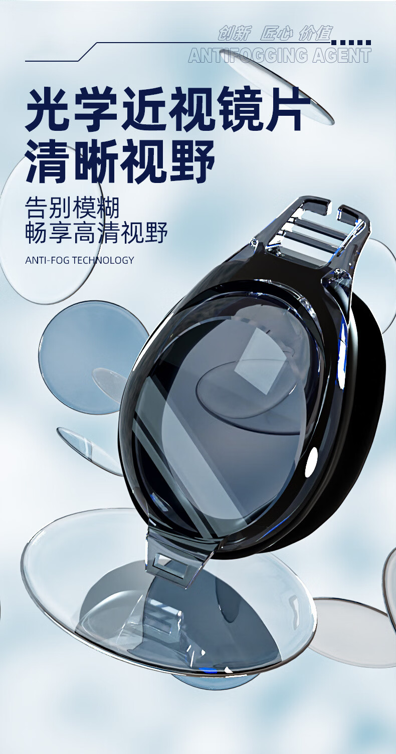 Myopia swimming goggles waterproof anti-fog high-definition swimming goggles for women with prescription men's adult professional swimming goggles goggles black 250 degrees