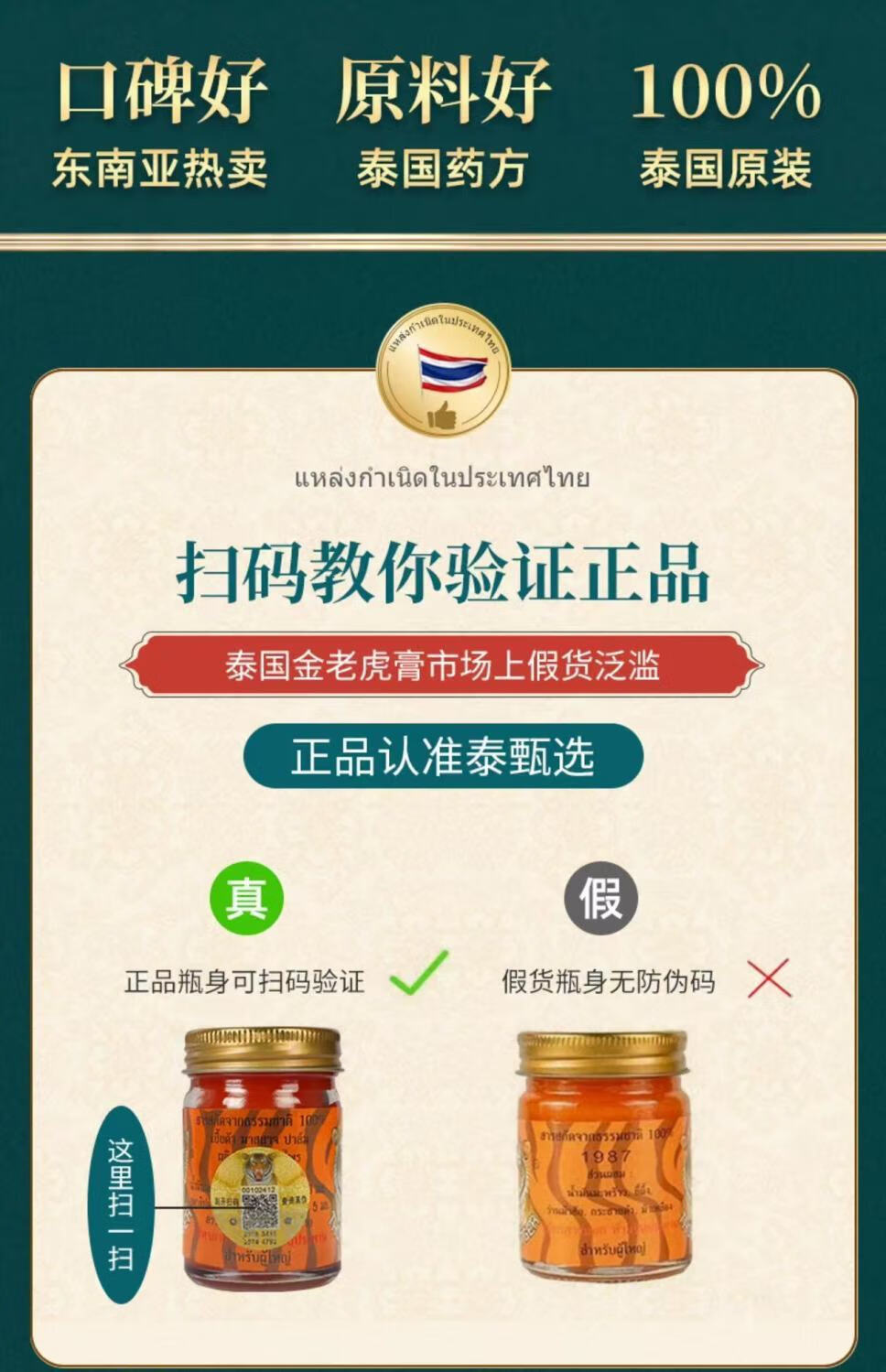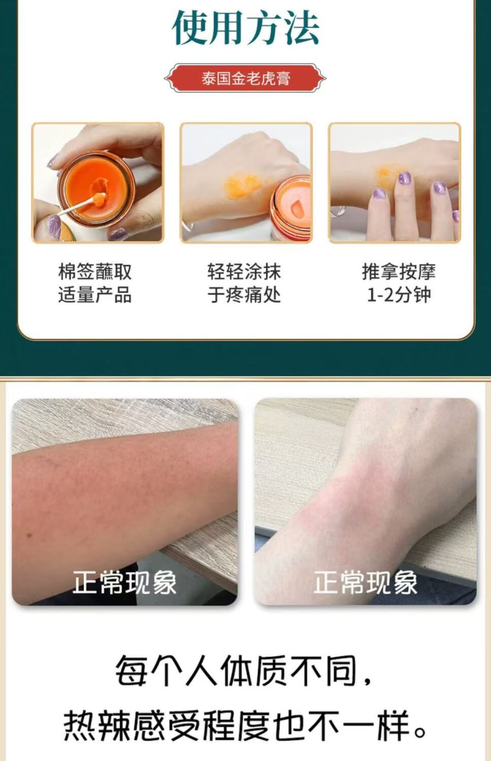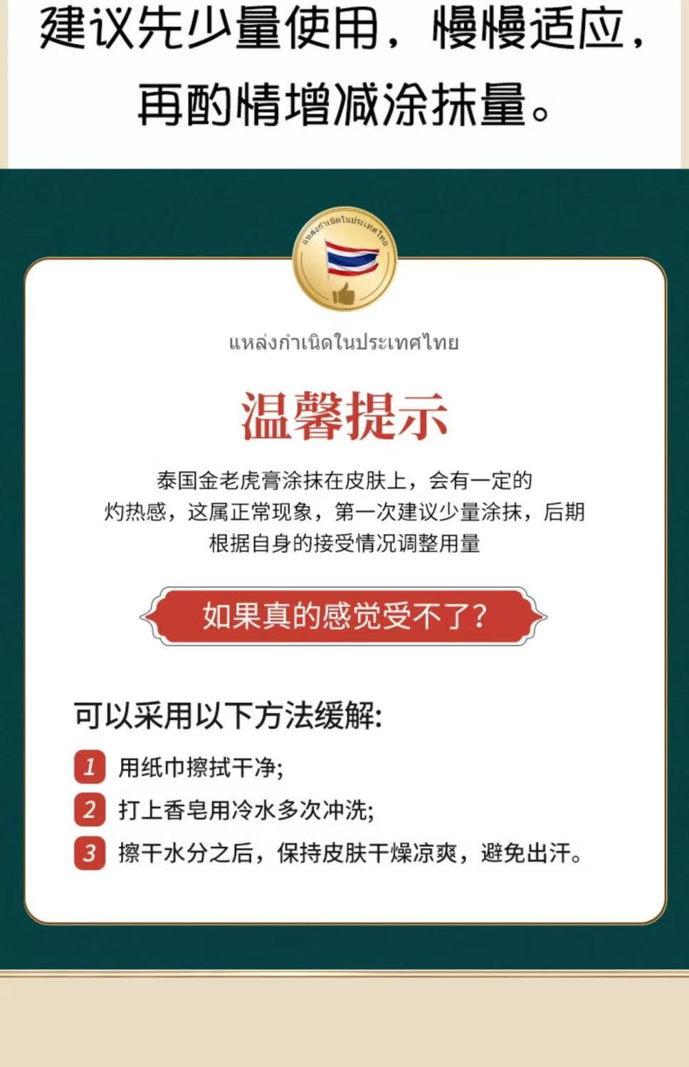 Tiger Brand Authentic Golden Tiger Cream, imported from Thailand, Tiger Brand Ointment, pain relief for bruises and injuries, pain relief for rheumatic joints, Golden Tiger Cream 1 box/4 bottles, preferred pack