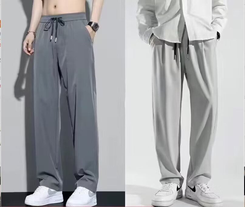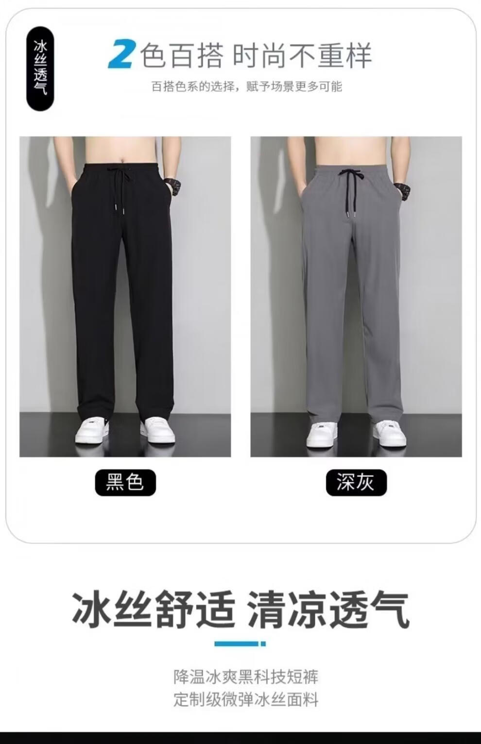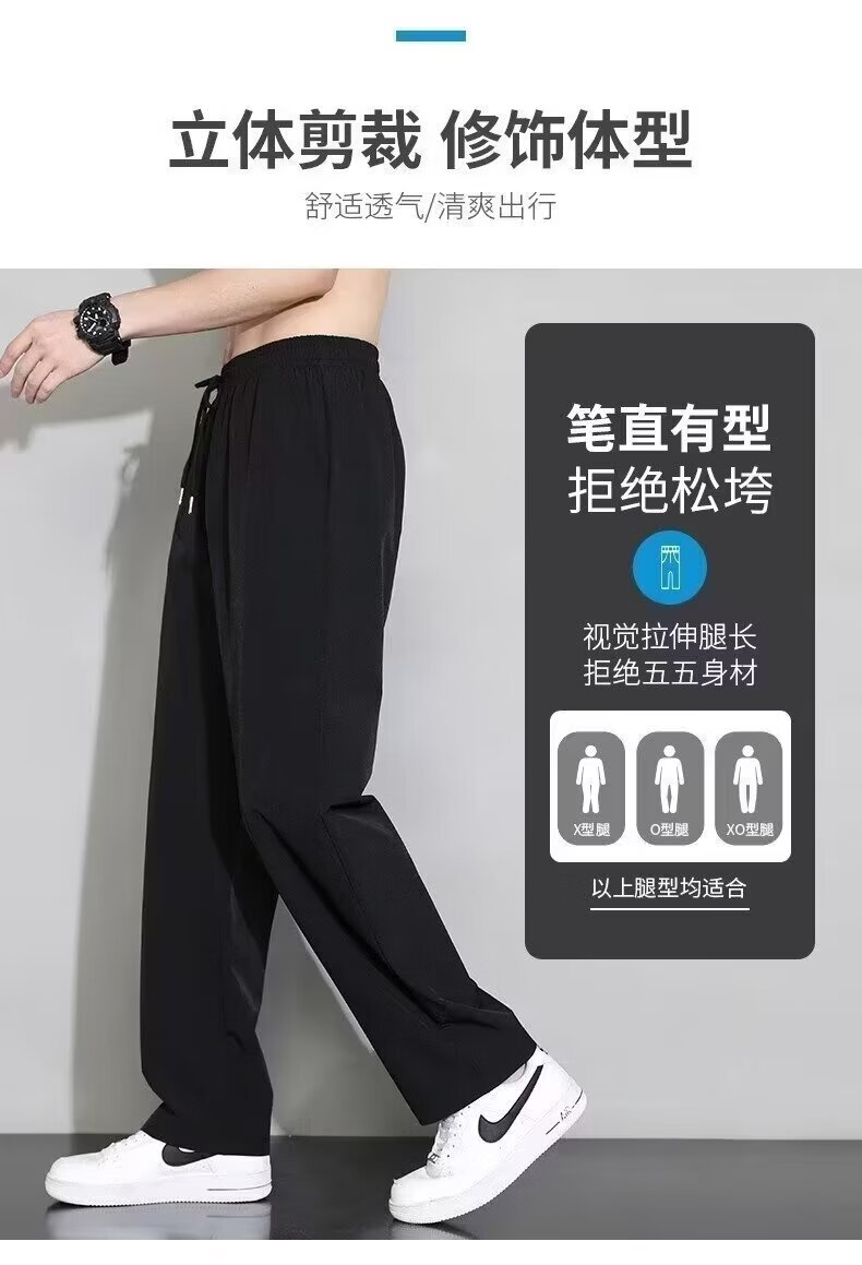Pants Men's Summer Long Pants Straight Leg Loose Sports Pants Men's Summer New Ice Silk Casual Pants Black Hong Kong Men's Style G013 Straight Leg XL 110-130Jin Jin is equal to 0.5 kg