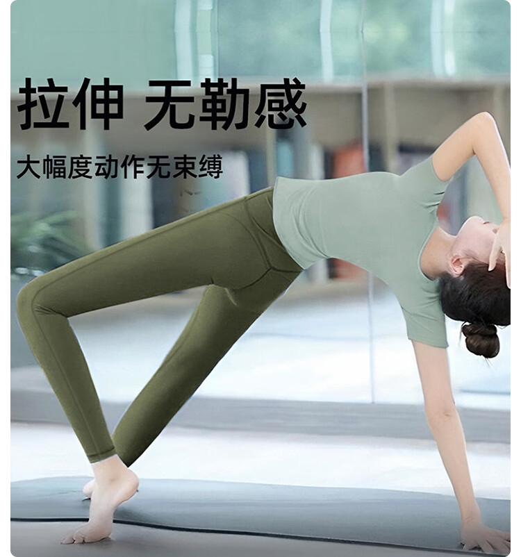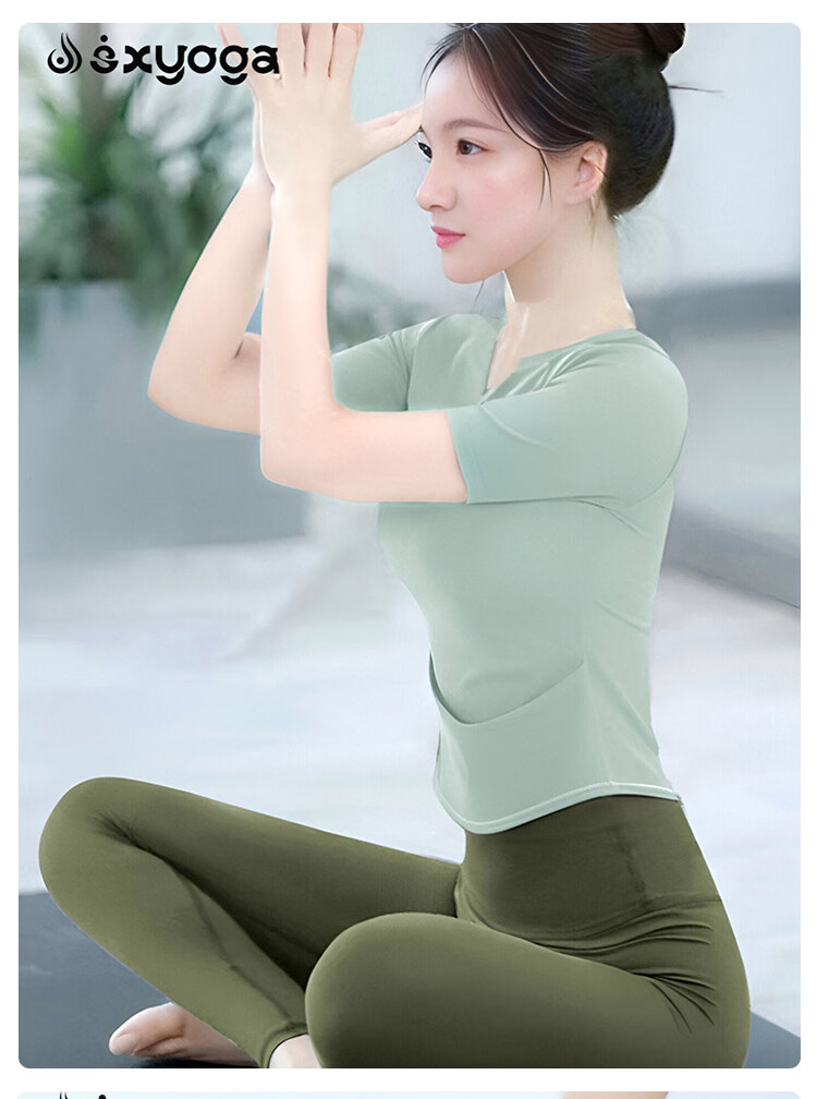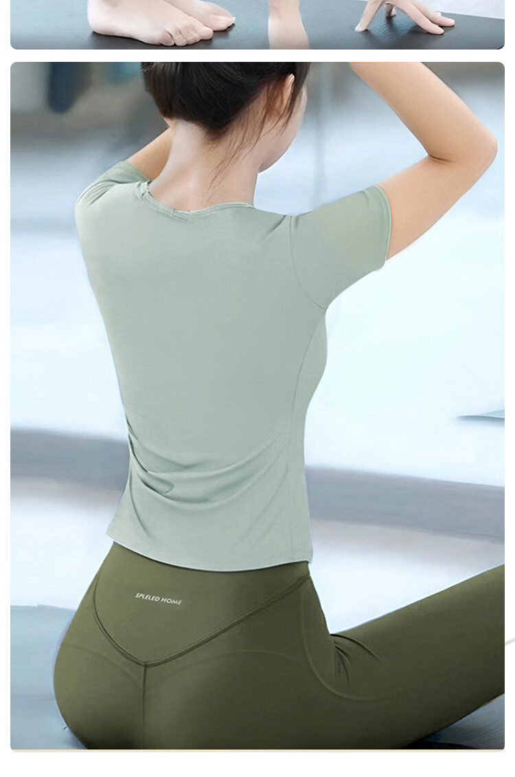 Double show high-end yoga wear Pilates, beautiful slimming belly-covering short-sleeved outer wear, fashionable and western-style sports fitness suit, dark green short-sleeved + moss green suit XL 120-135