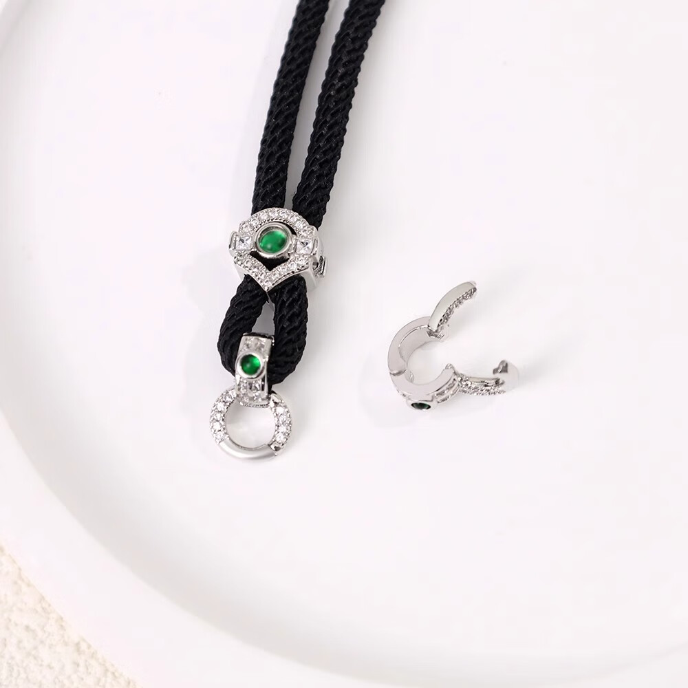 POP-plated 18k gold inlaid zircon pendant lanyard braided black rope double safety buckle versatile personalized accessories universal buckle black rope necklace