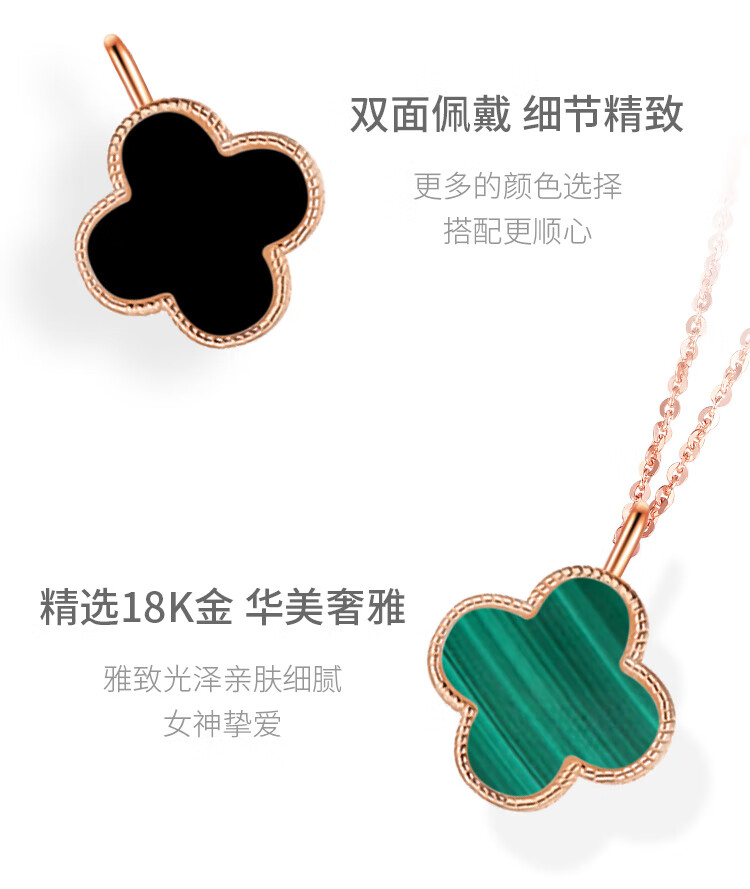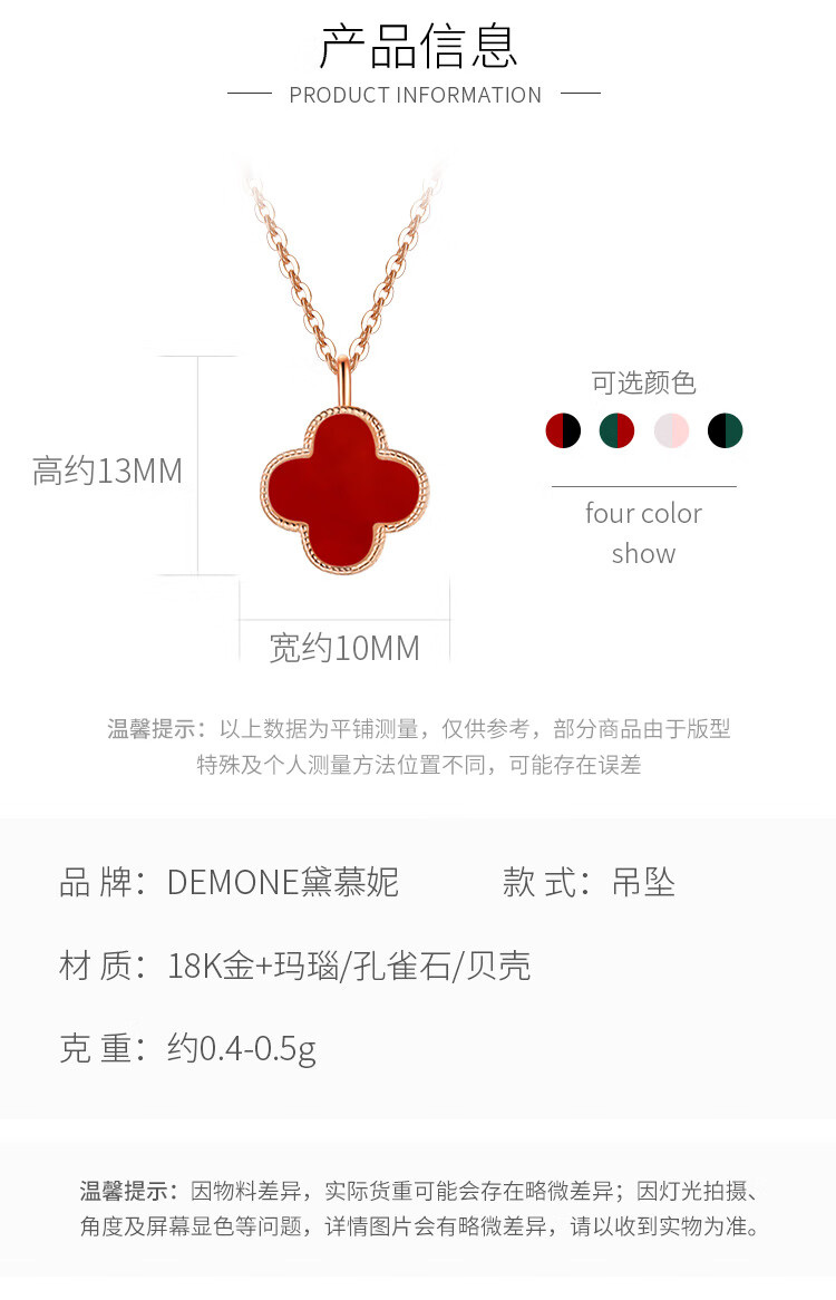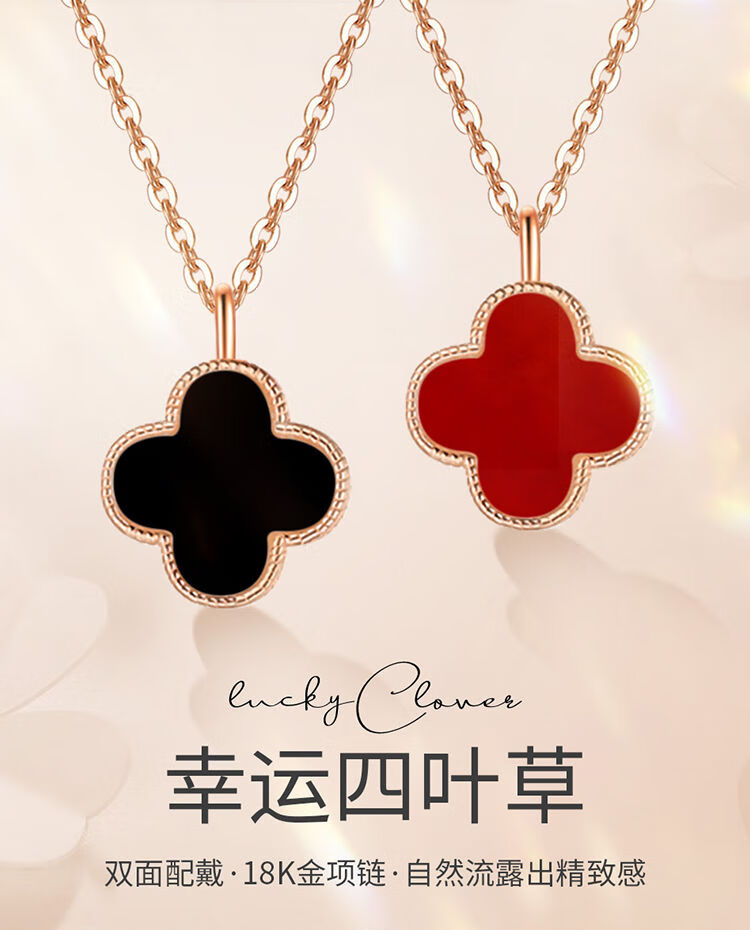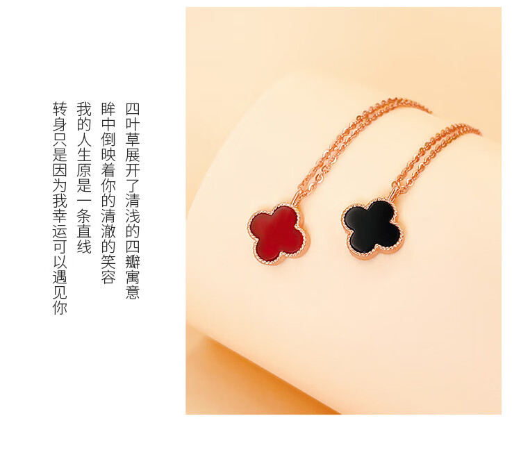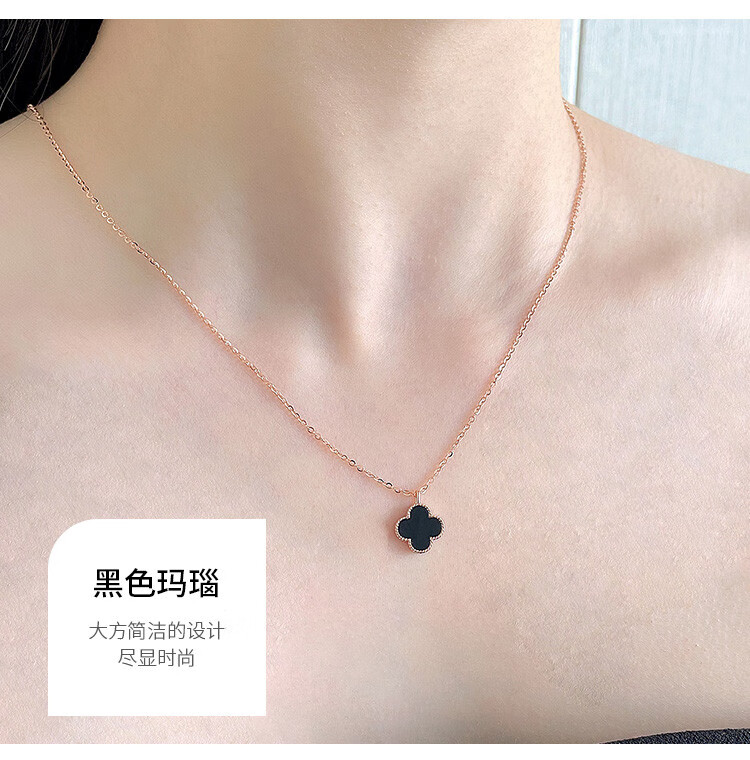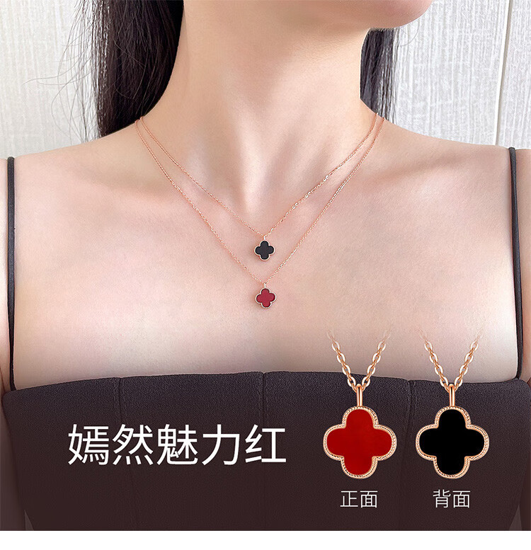 POP 18K gold lucky four-leaf clover versatile women's pendant necklace rose gold red agate double-sided chain 18K gold four-leaf clover necklace (red and black) rose gold (with 0.5-0.6gK gold necklace)