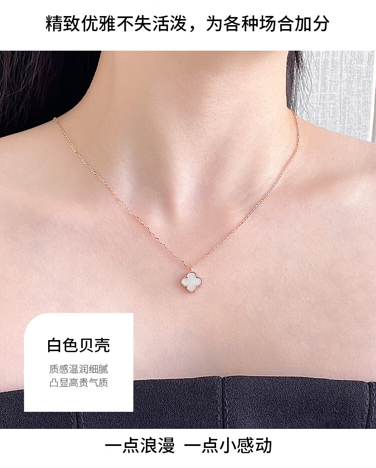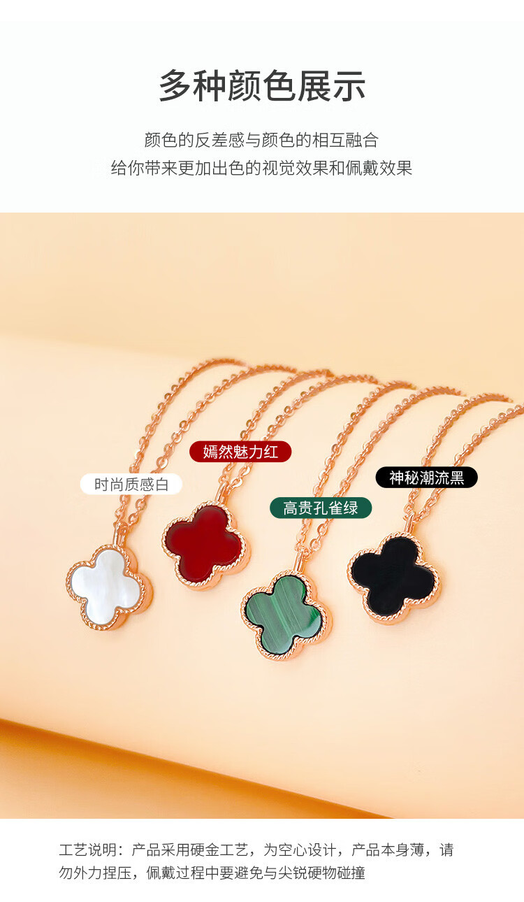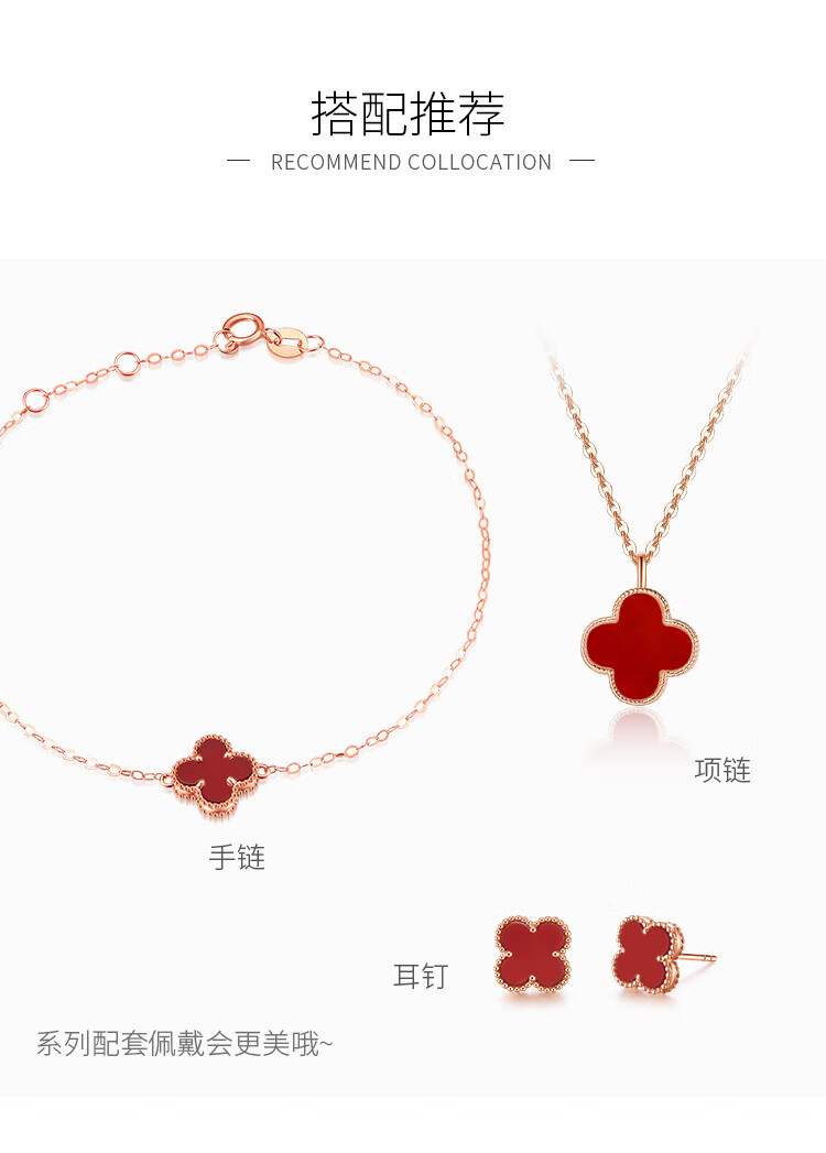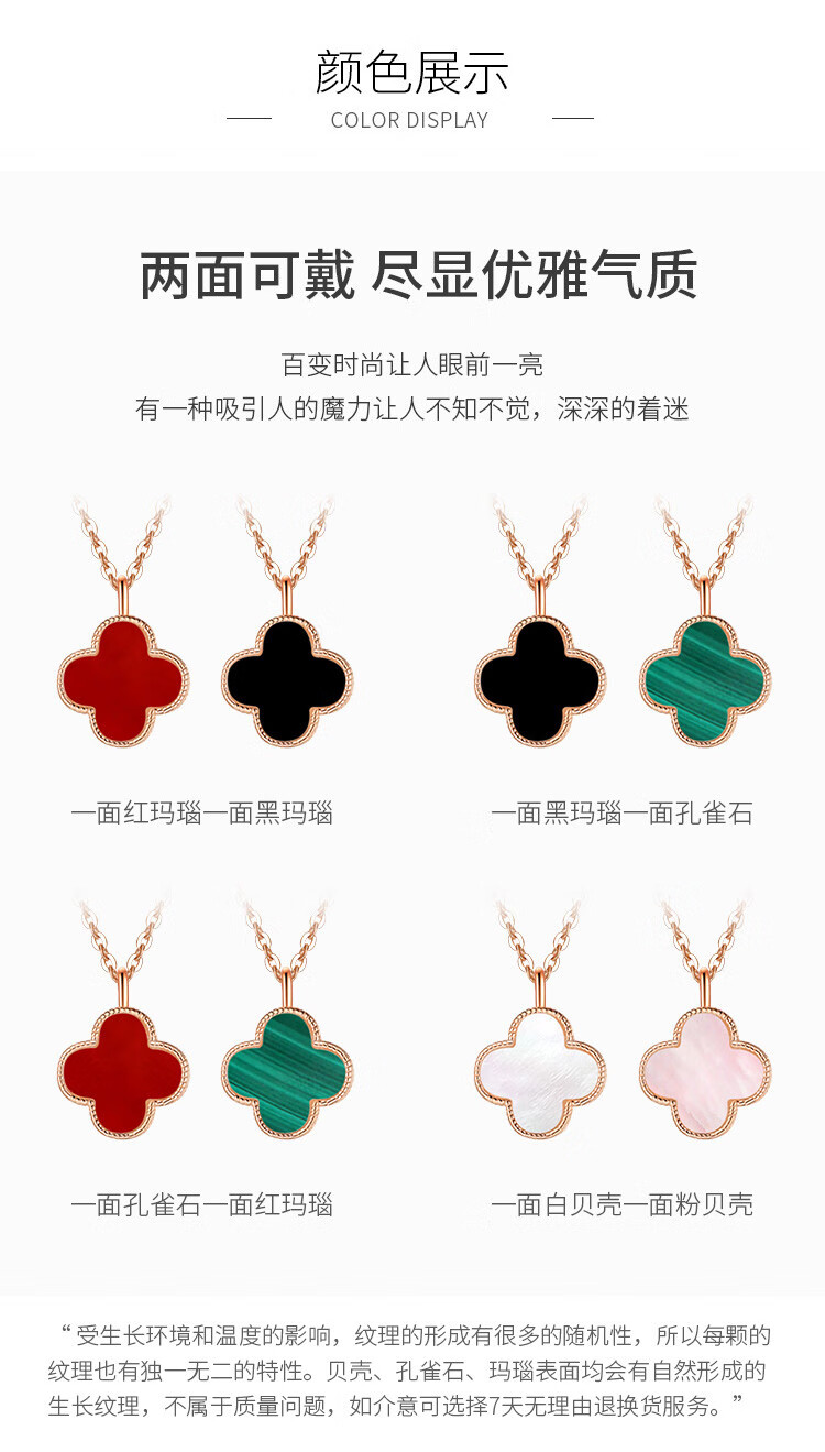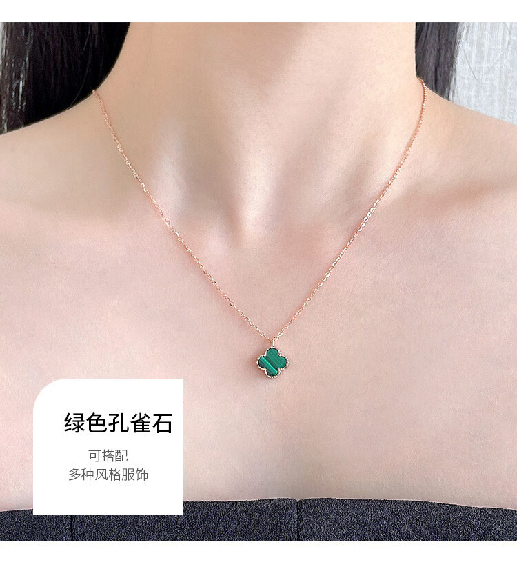 POP 18K gold lucky four-leaf clover versatile women's pendant necklace rose gold red agate double-sided chain 18K gold four-leaf clover necklace (red and black) rose gold (with 0.5-0.6gK gold necklace)