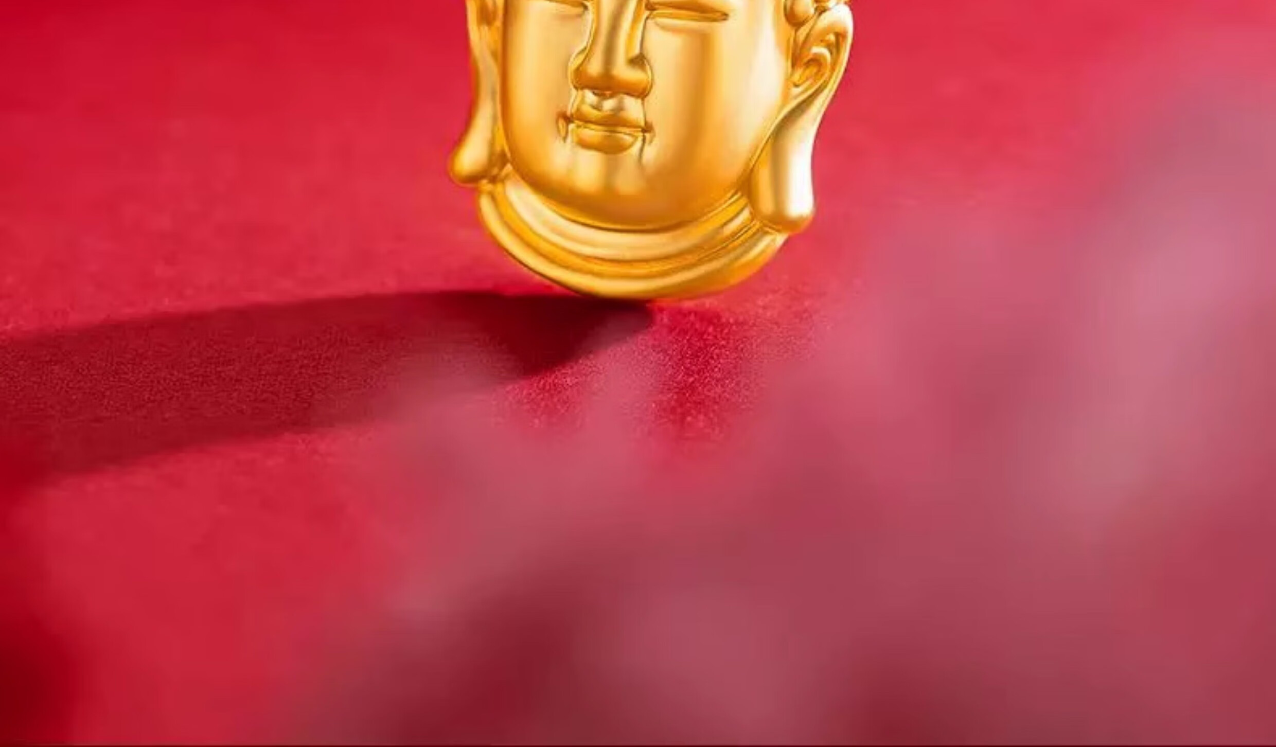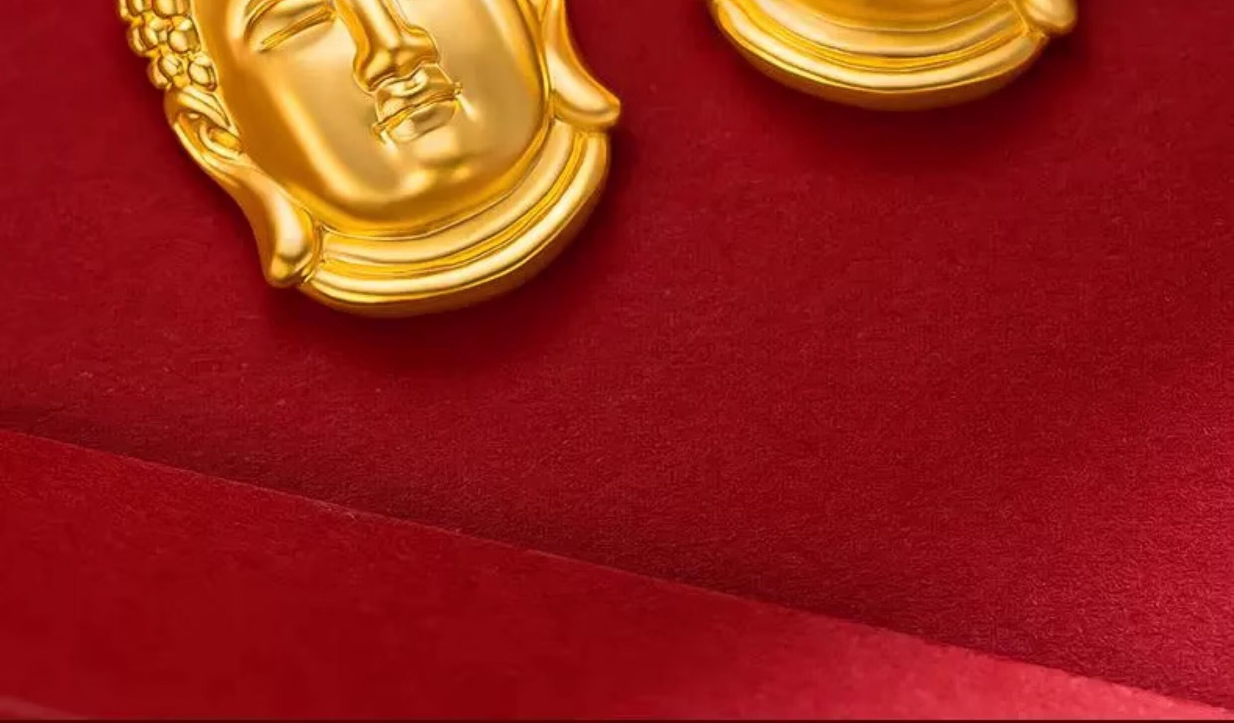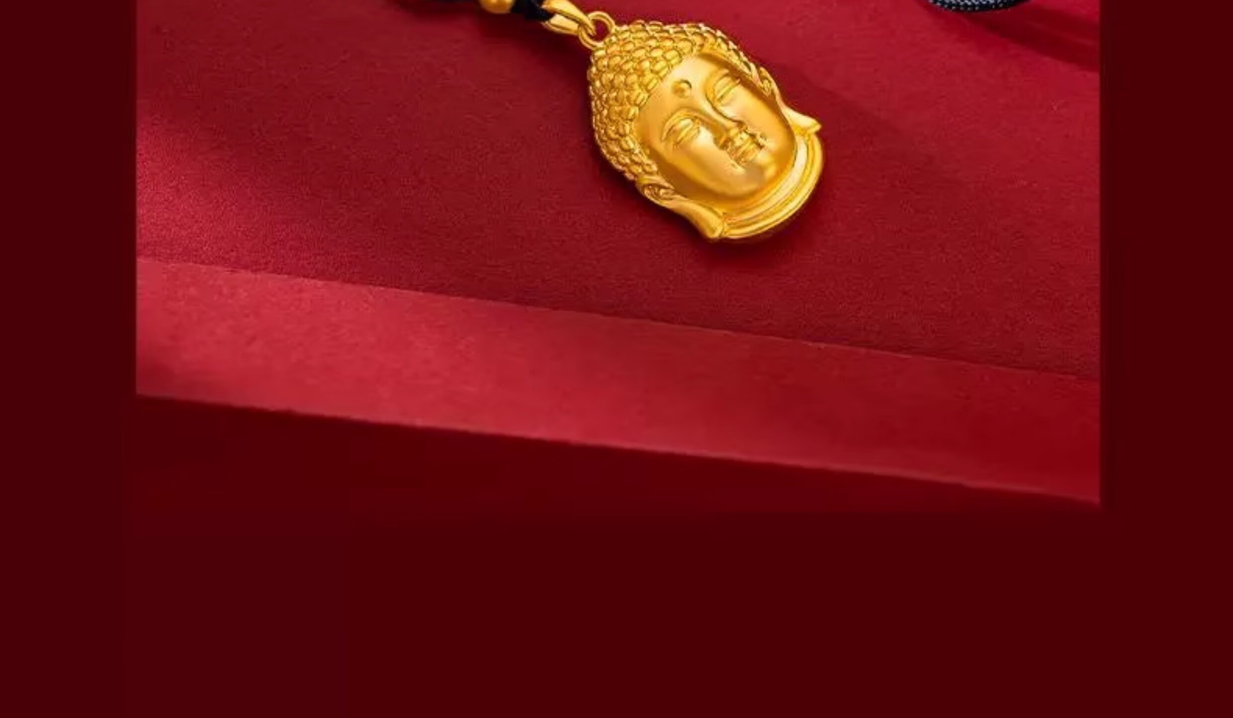 Popu's new Buddha head pendant gold-plated silver pendant 18K gold solid simulation natal Buddha head necklace for men and women Buddha head pendant + gold beads black rope