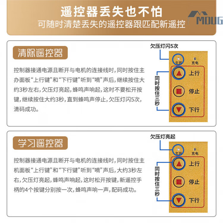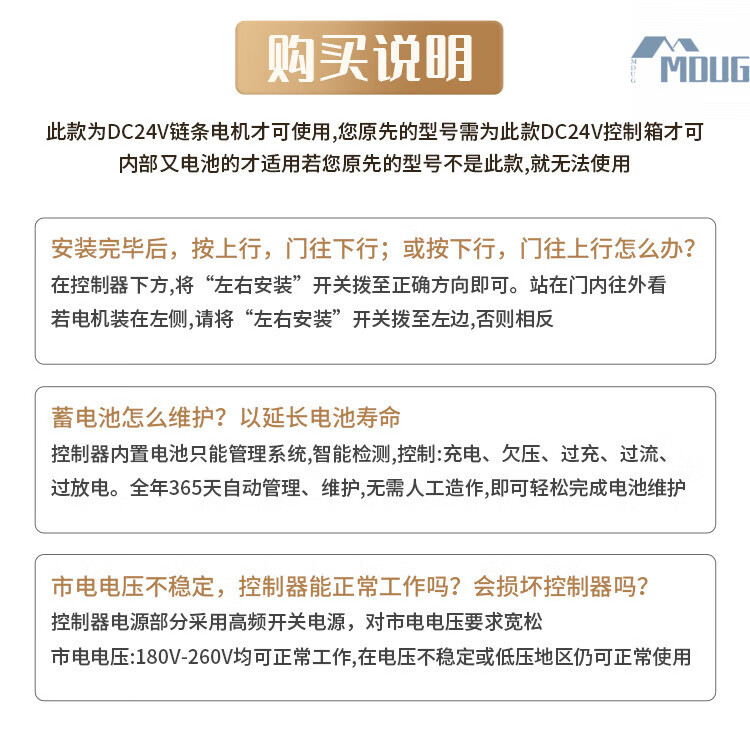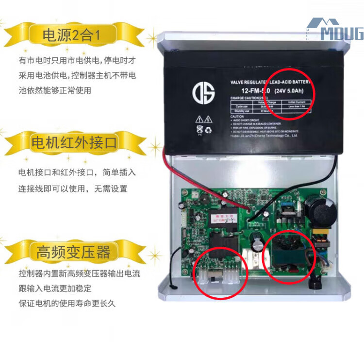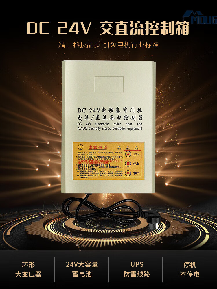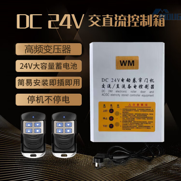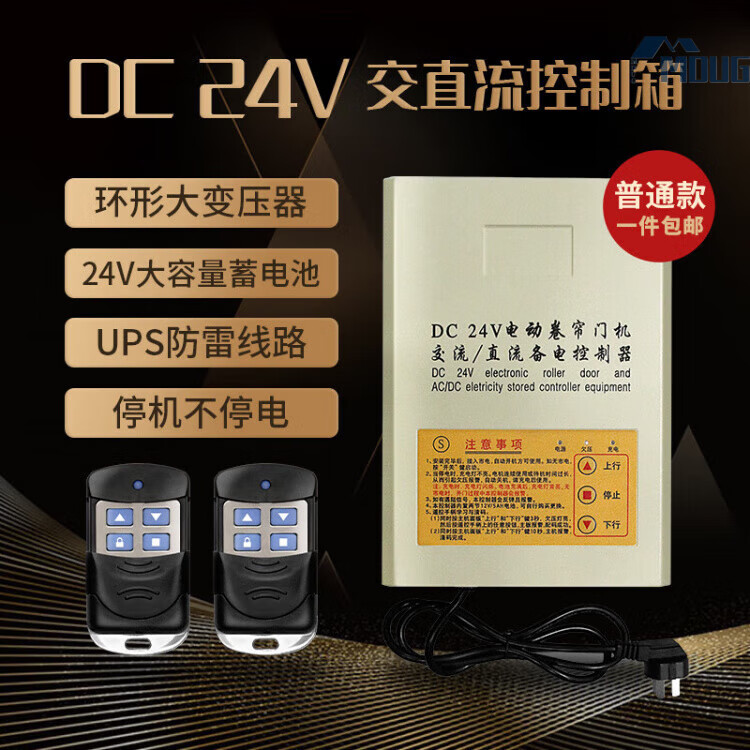 MDUGDC24V AC and DC rolling door machine control box power outage treasure electric garage door reserve power rolling shutter door controller upgraded model without battery with 2 remote controls