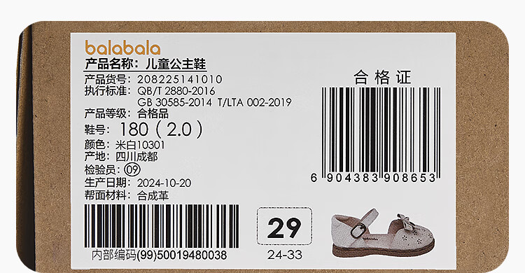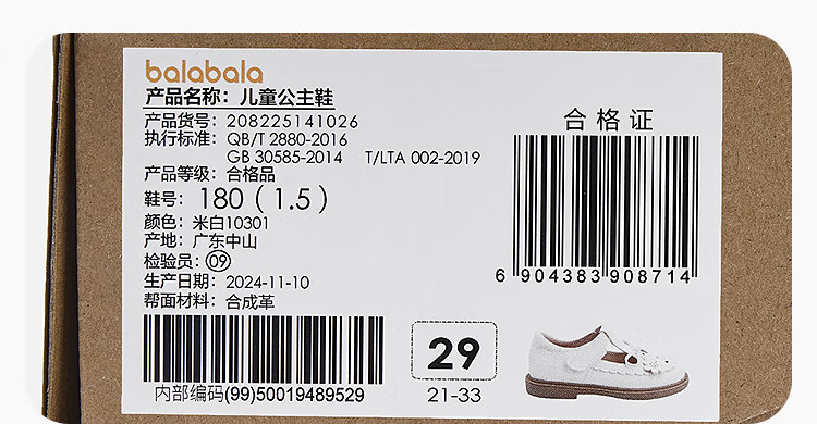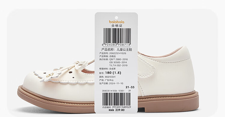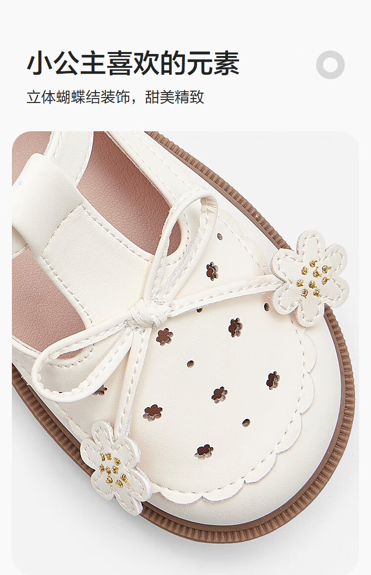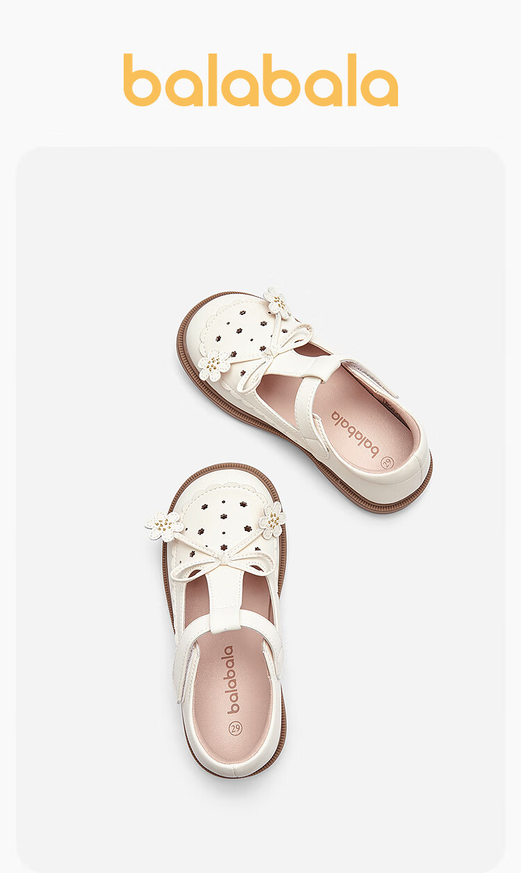 Balabala children's shoes children's princess shoes girls sandals summer new British style small leather shoes off-white off-white 10301 26