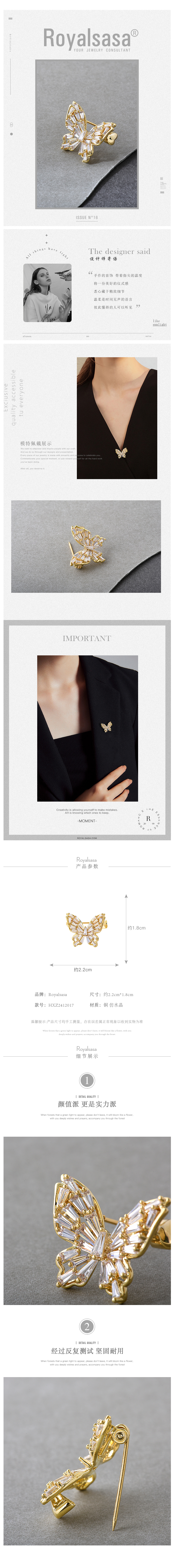 Royal sasa royal salsa hollow butterfly brooch exquisite temperament high-end imitation crystal corsage daily versatile pin lapel pin