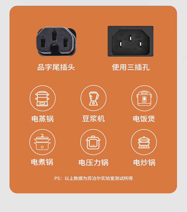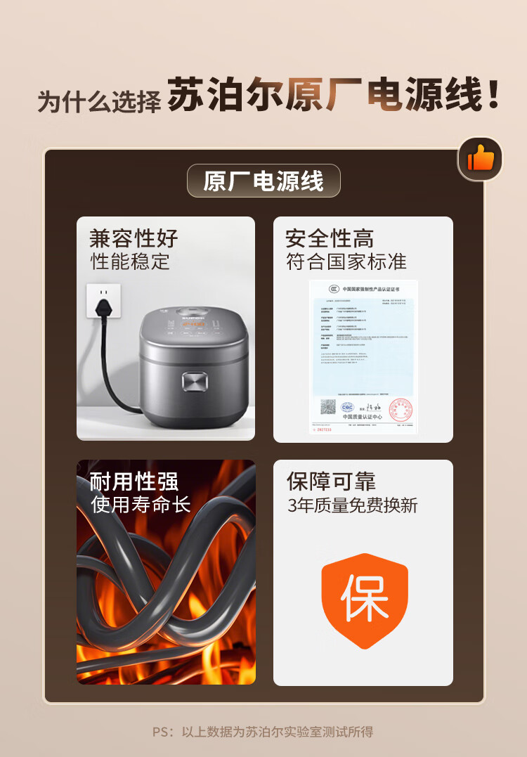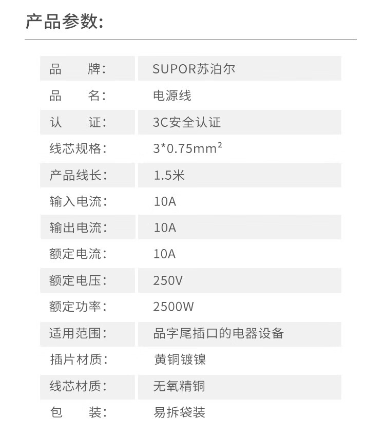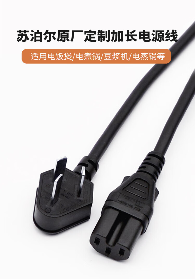 SUPOR rice cooker three-hole 1.5m M power cord universal original accessories electric pressure cooker electric cooking pot soy milk electromechanical stew pot plug coupler long power cord