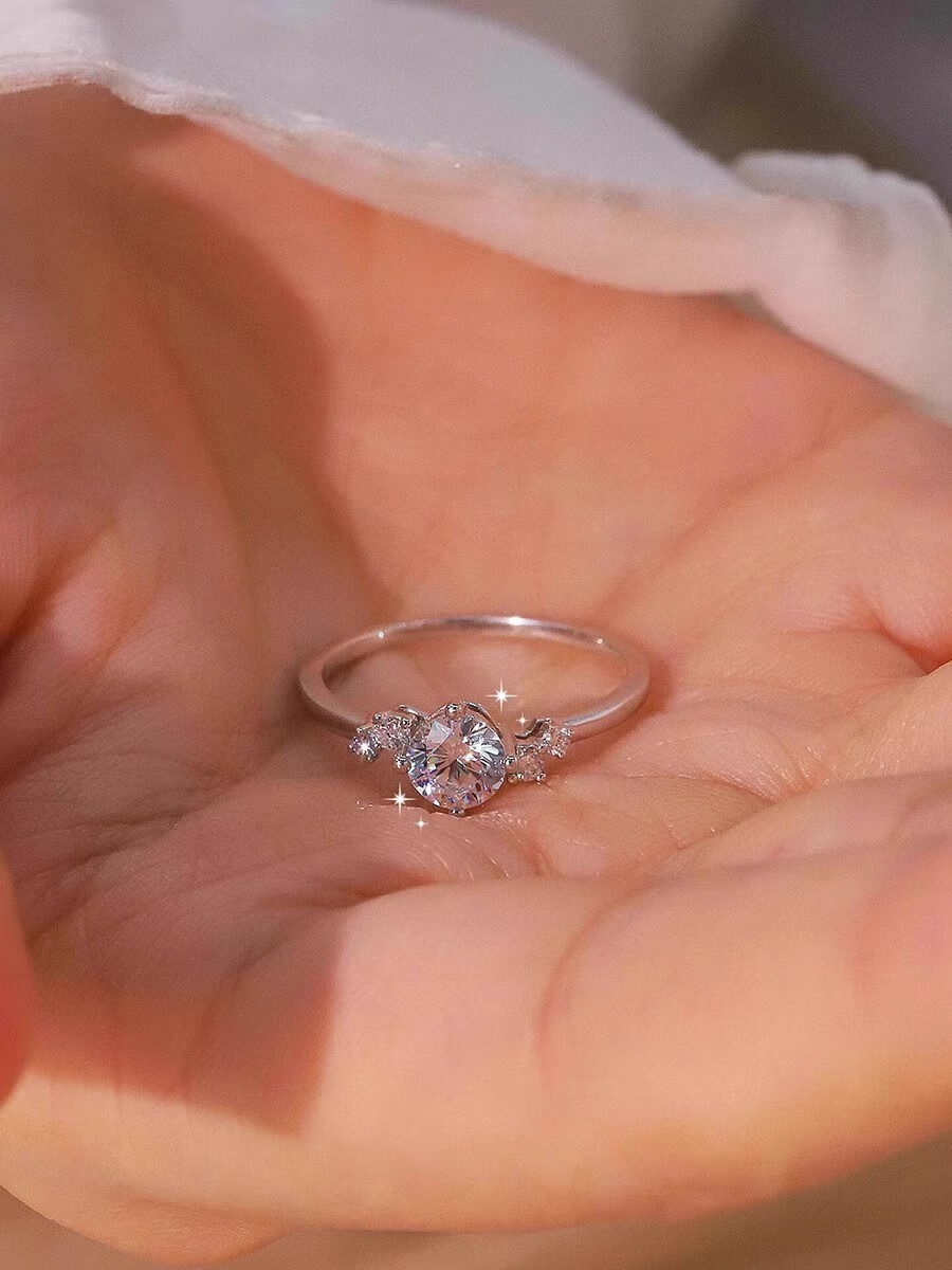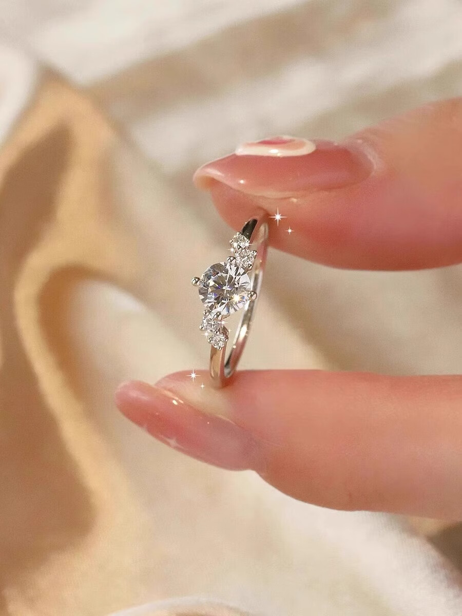 Olevo moissanite diamond ring sterling silver platinum plated 18k ring simulated proposal engagement wedding gift for girlfriend 1 carat imported moissanite opening adjustable size
