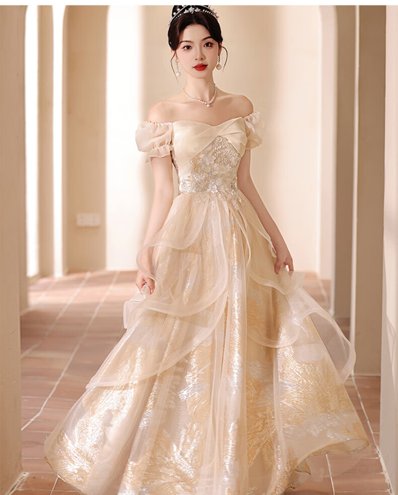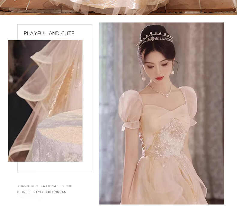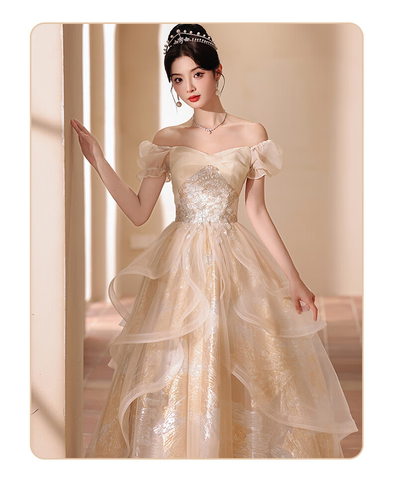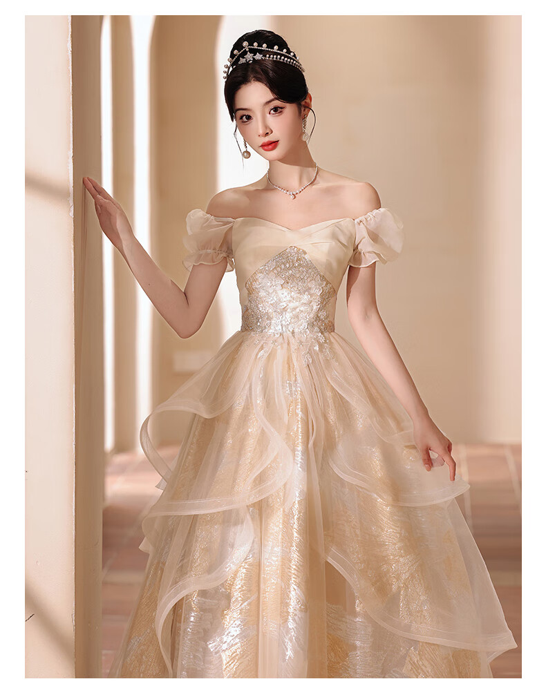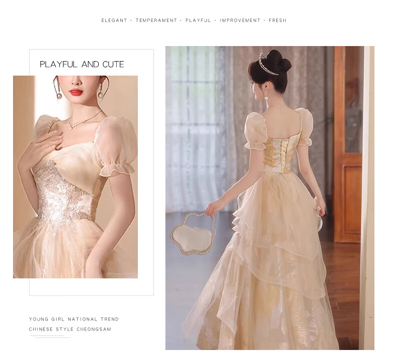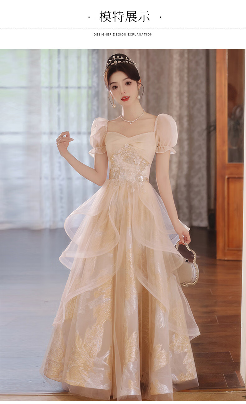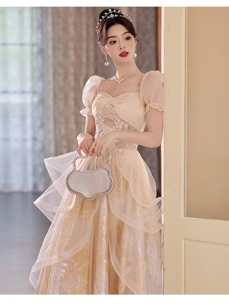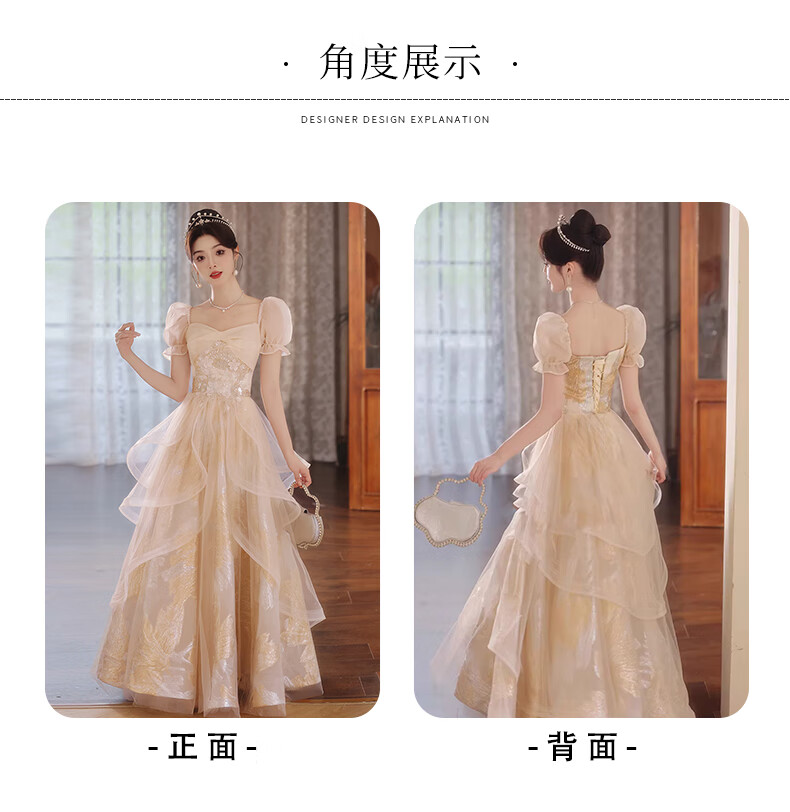 Zhufan student adult dress 18-year-old female adult dress evening girl 2025 new banquet temperament host sense champagne color S