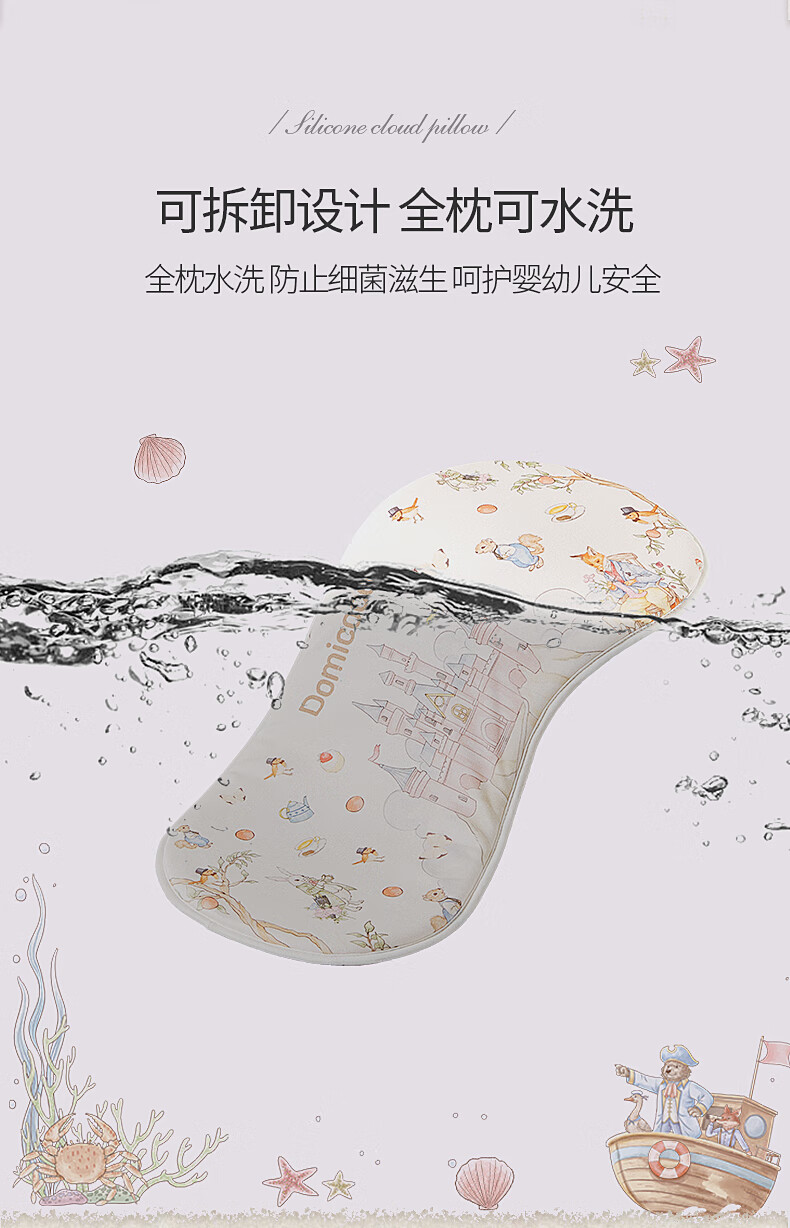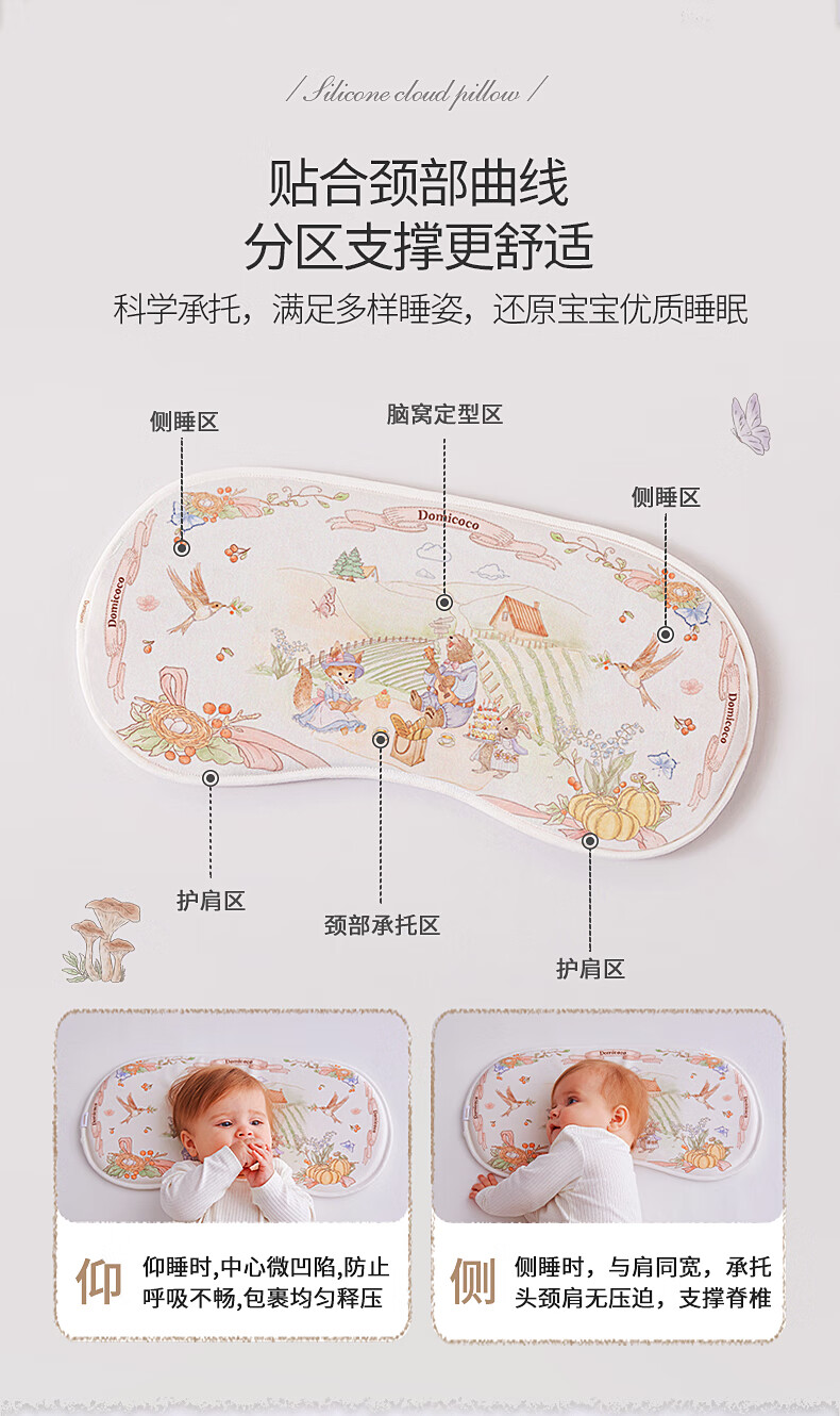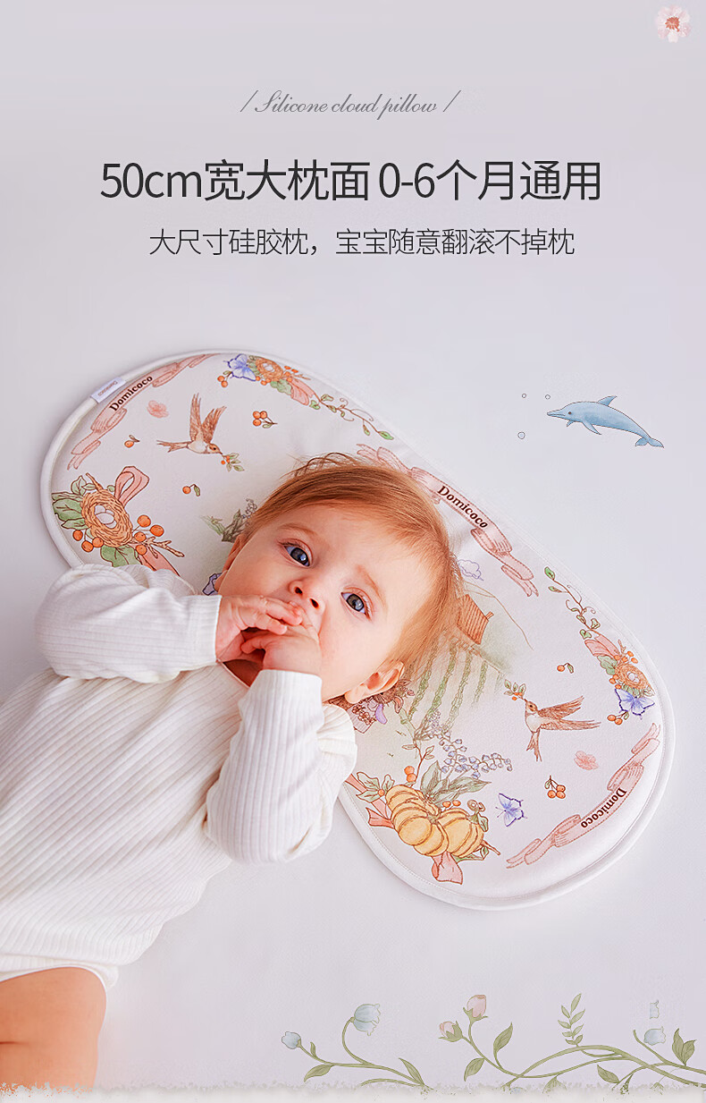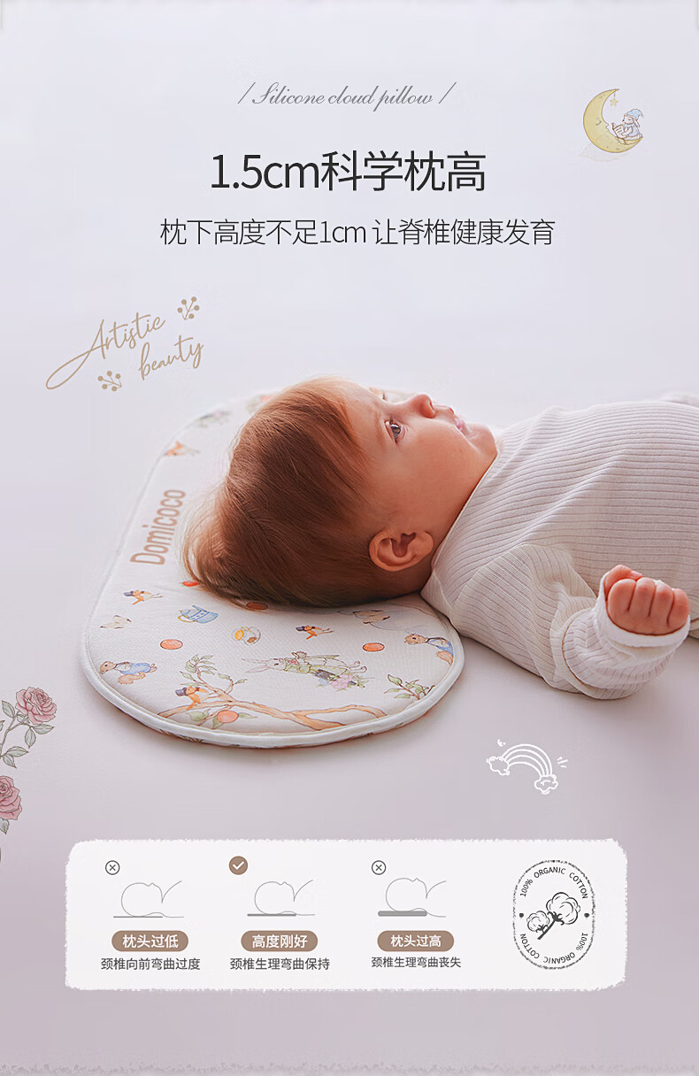 DOMICOCO Duomi Coco Newborn Baby Cloud Pillow 0 to 6 months and above baby 1 to 3 years old silicone summer breathable thin Castle Station Romance 1.5cm pillow height 0-6 months