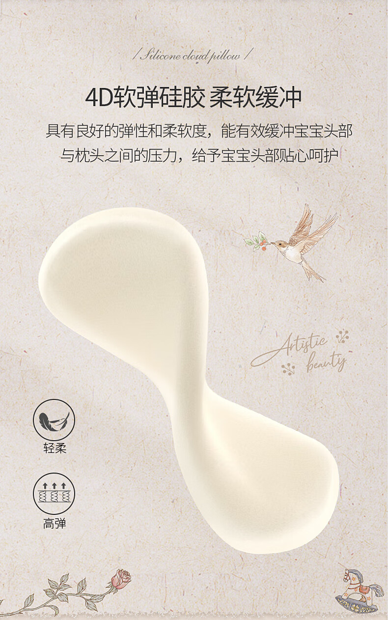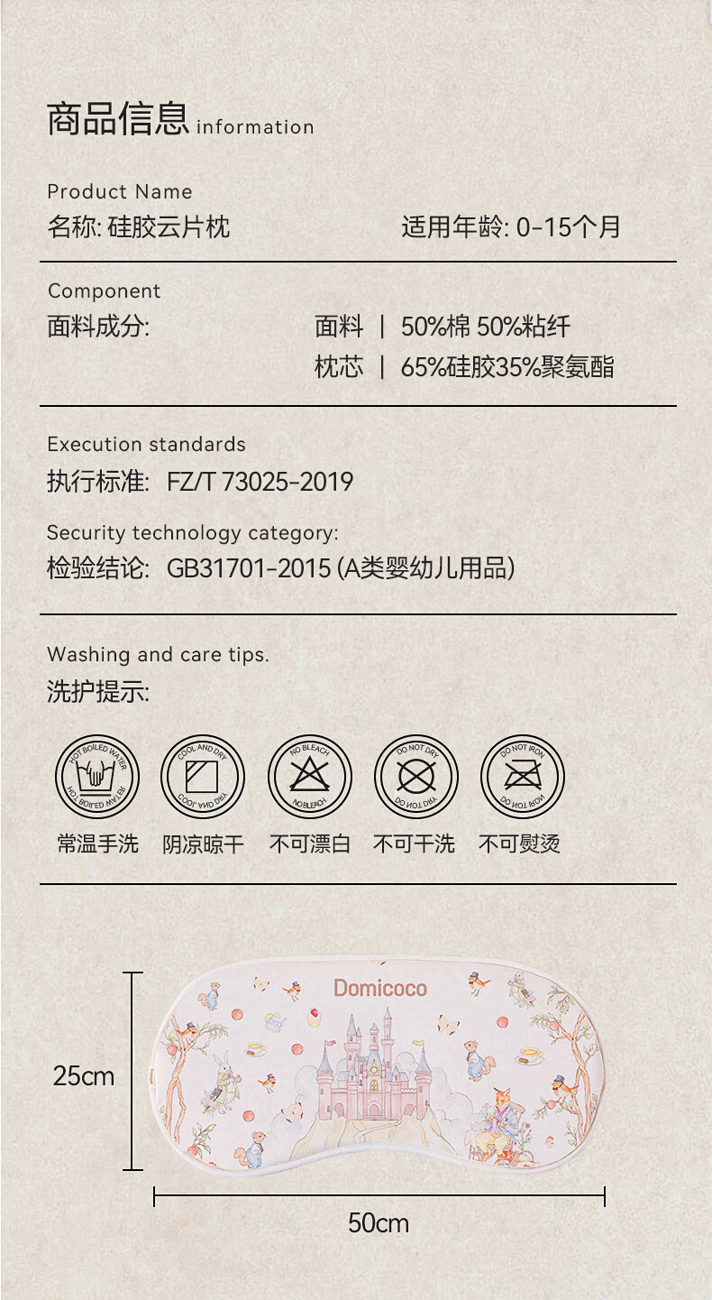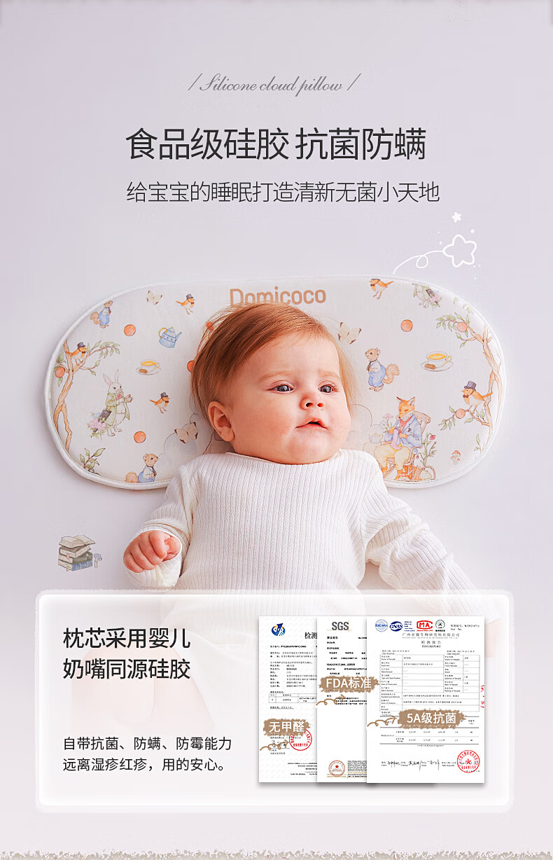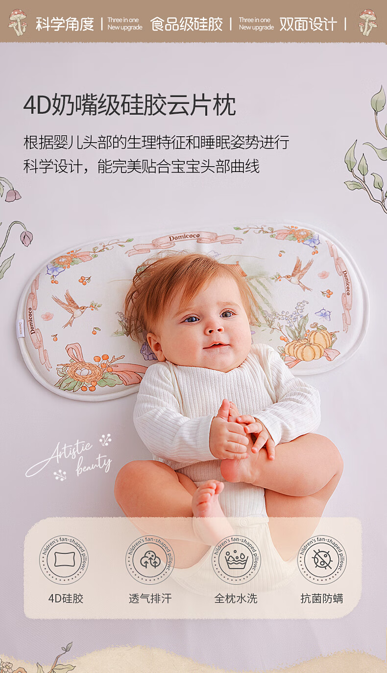 DOMICOCO Duomi Coco Newborn Baby Cloud Pillow 0 to 6 months and above baby 1 to 3 years old silicone summer breathable thin Castle Station Romance 1.5cm pillow height 0-6 months