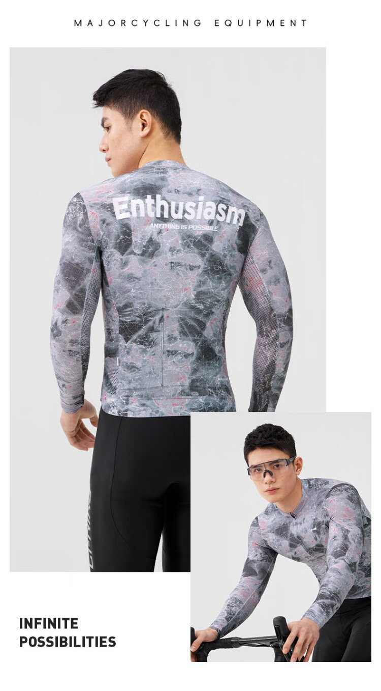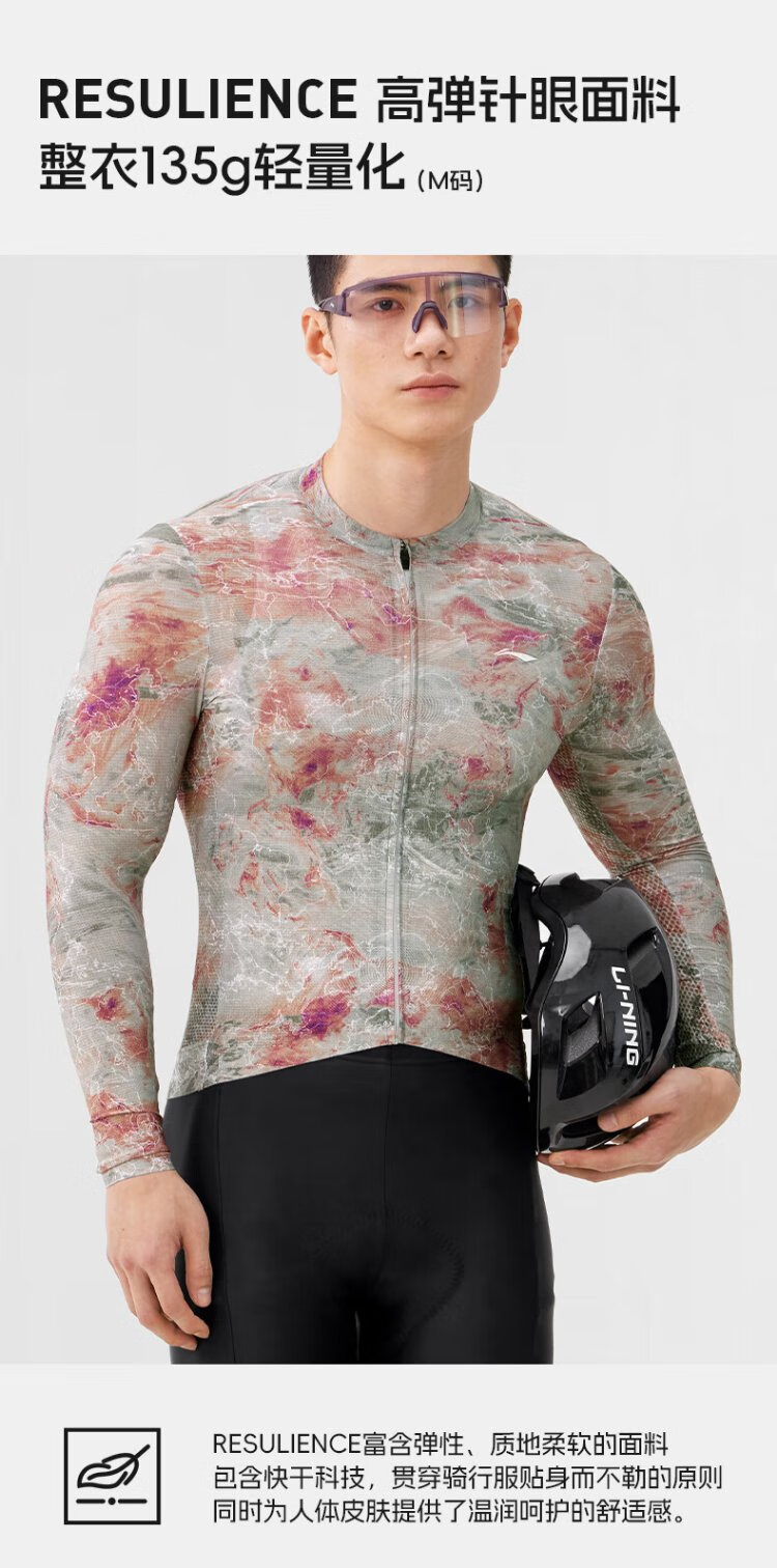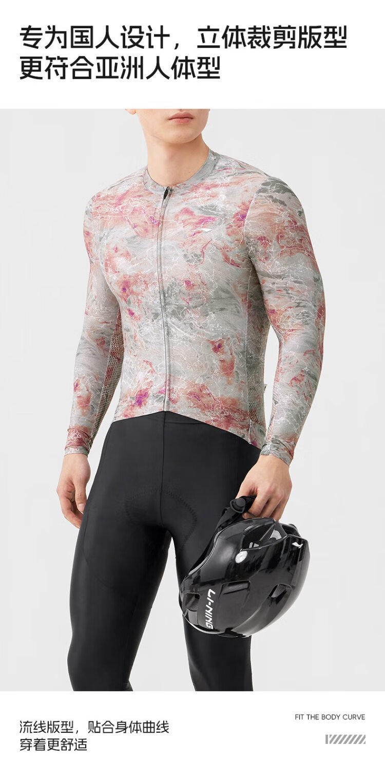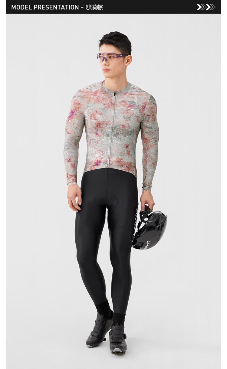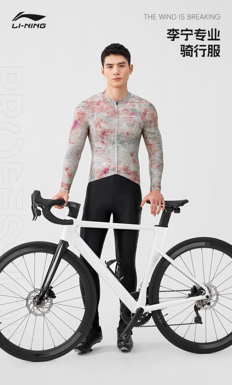 Li Ning (LI-NING) cycling jersey men's long-sleeved 2025 new tops and trousers equipment complete set of road bicycle mountain bike riding pants summer geological gray suit with thin cycling trousers M