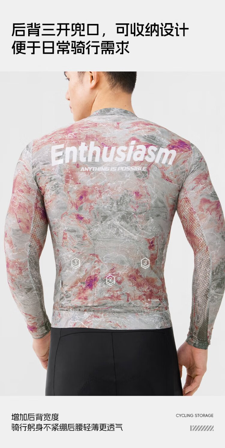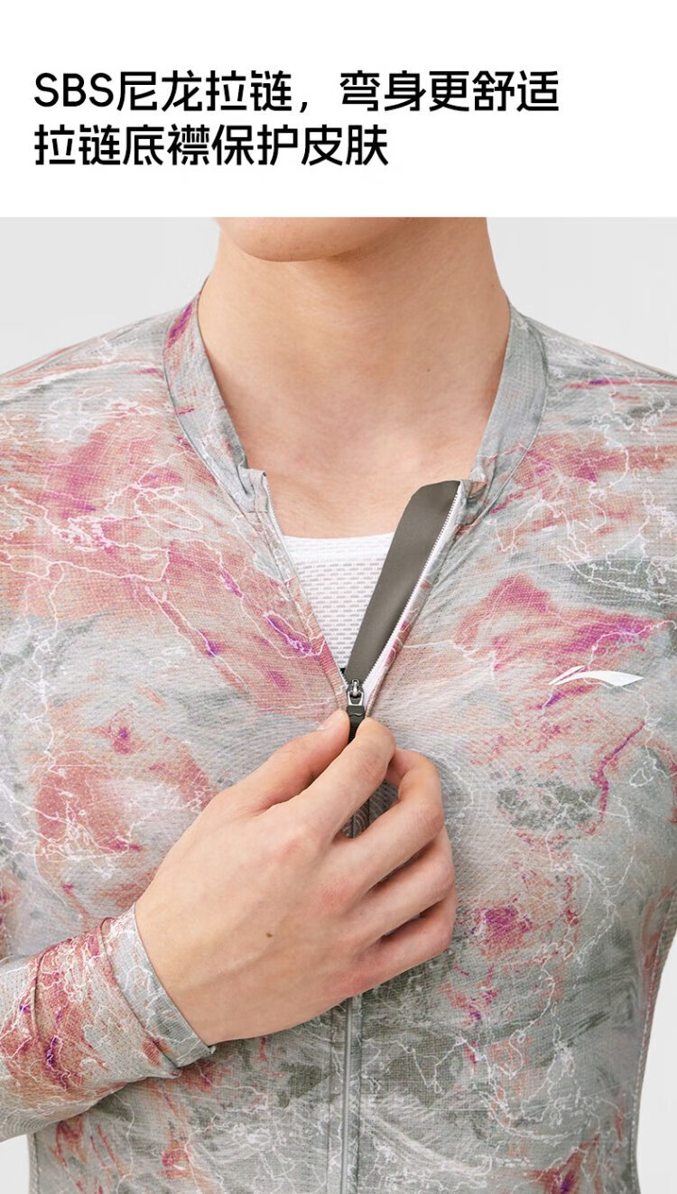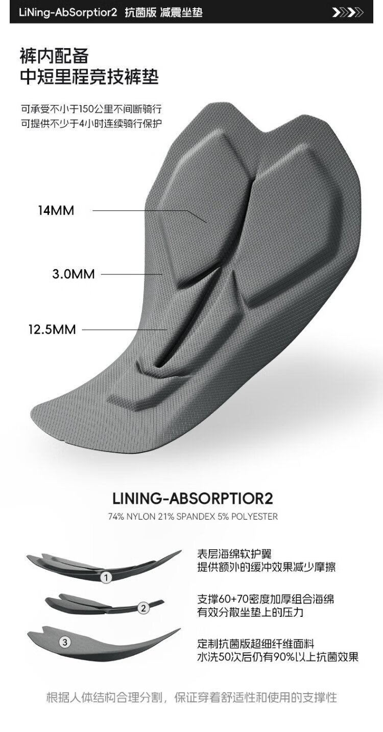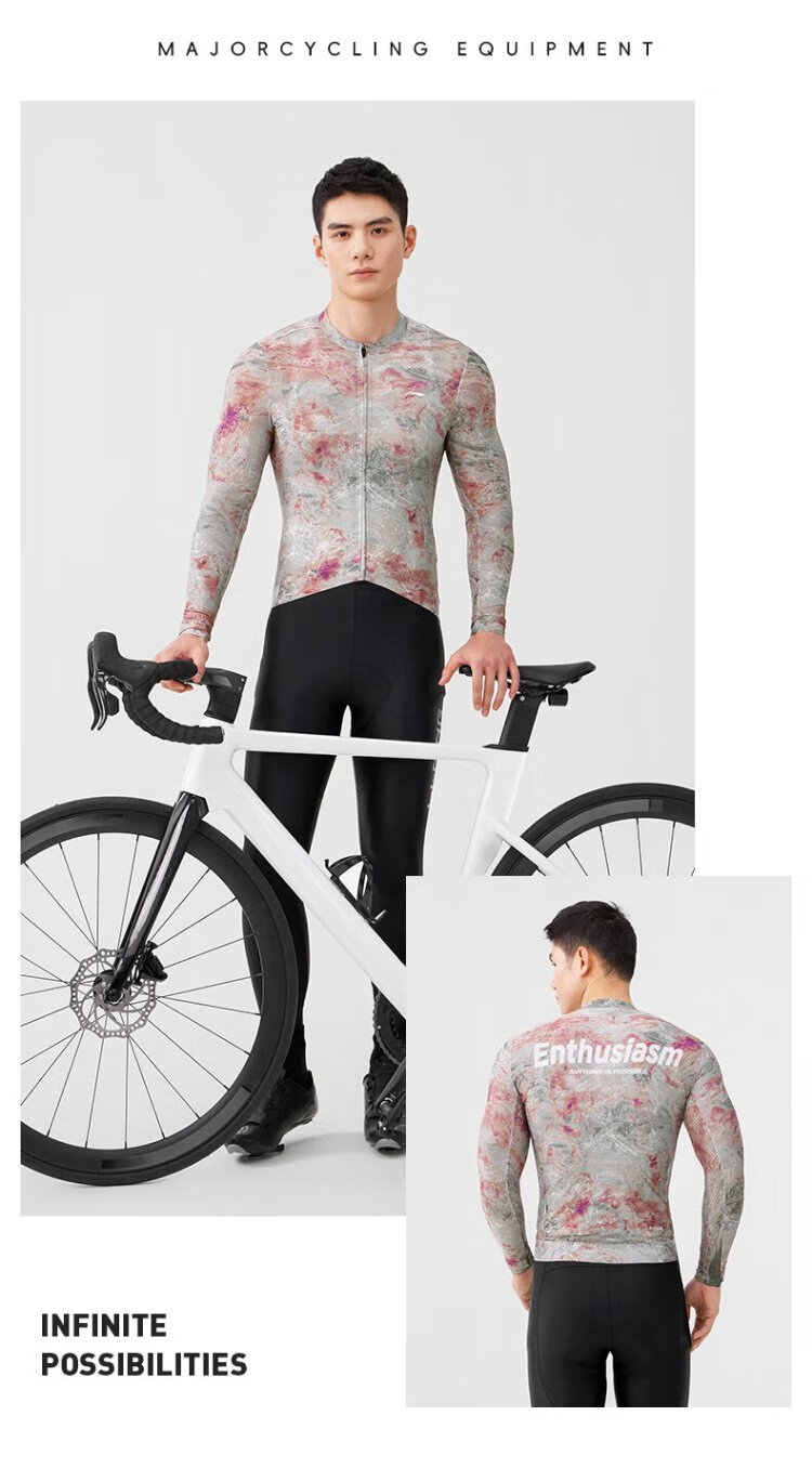 Li Ning (LI-NING) cycling jersey men's long-sleeved 2025 new tops and trousers equipment complete set of road bicycle mountain bike riding pants summer geological gray suit with thin cycling trousers M