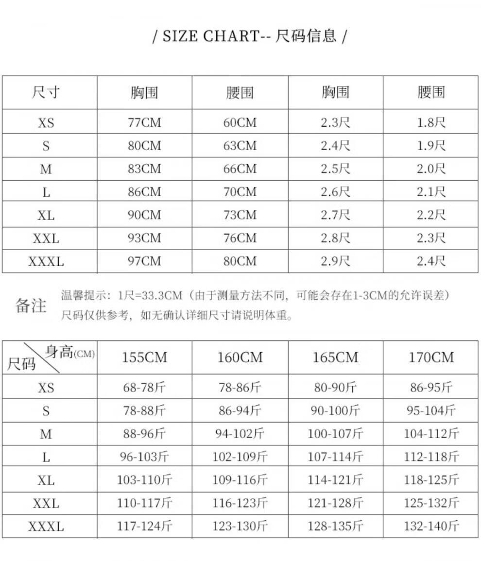 China (cm) 160-165/84-86 165-170 / 88-90 167-172 / 92-96 168-173 / 98-102 170-176 / 106-110