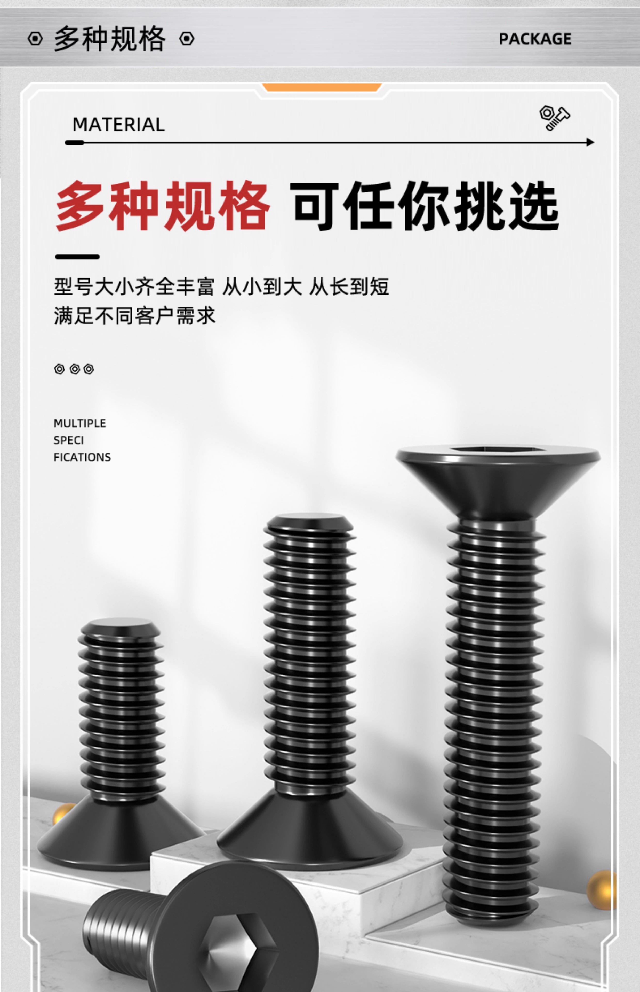 Fengji 10.9 grade anti-thread countersunk head hexagonal screw left-thread left-hand anti-wire flat head bolt M4M5M6M8M10M12mm M5*16 20 pcs