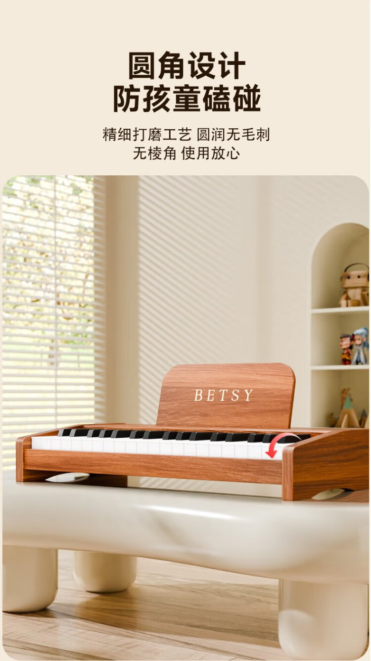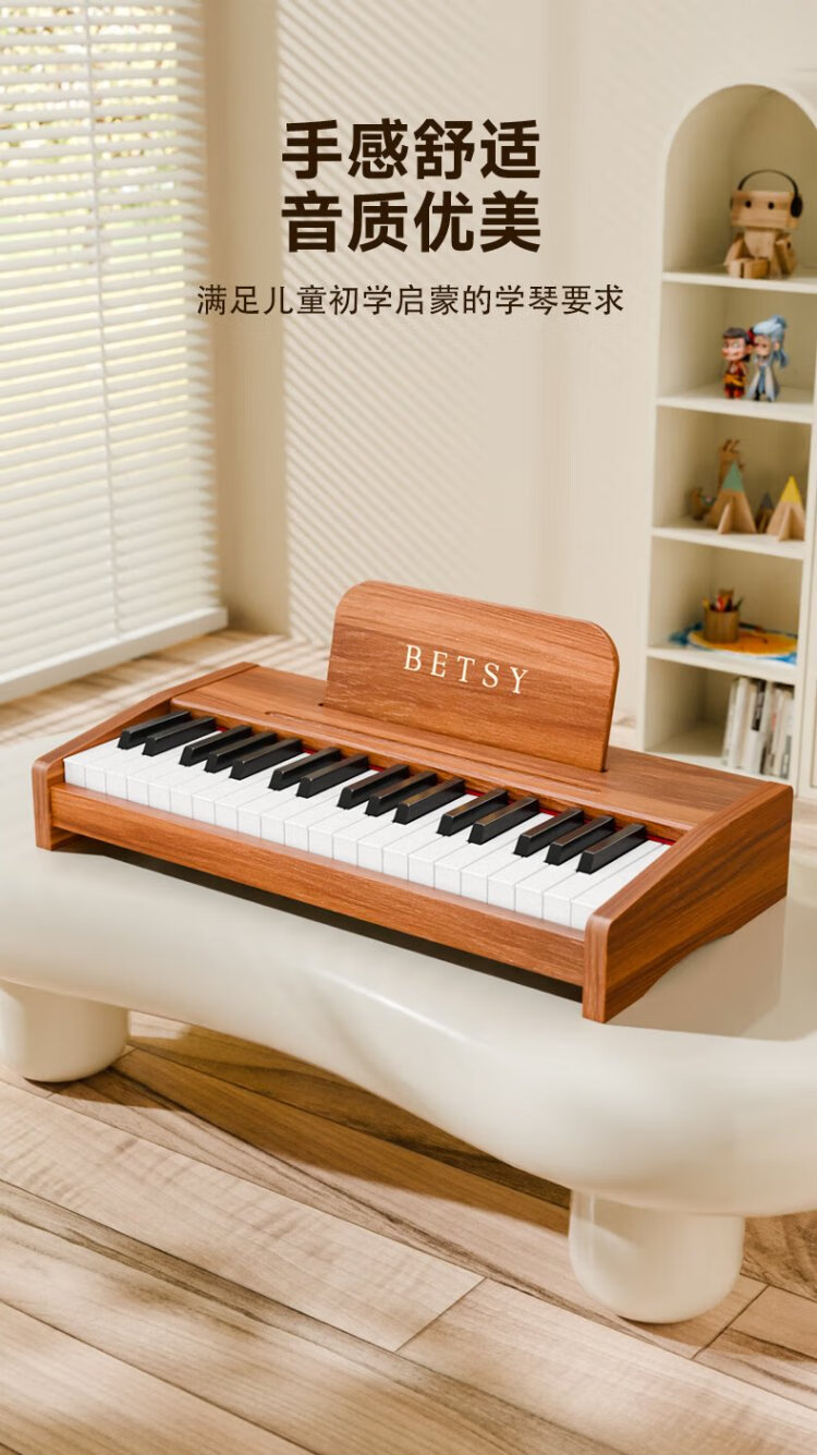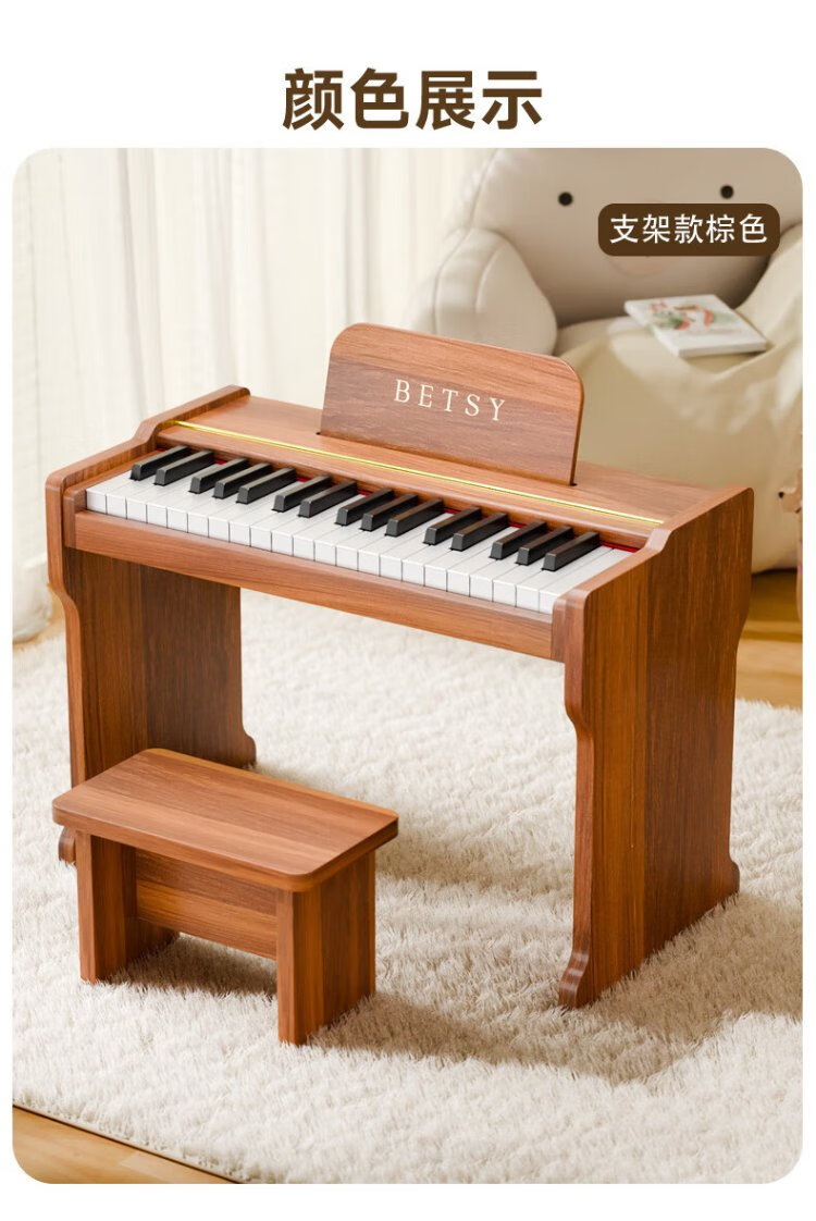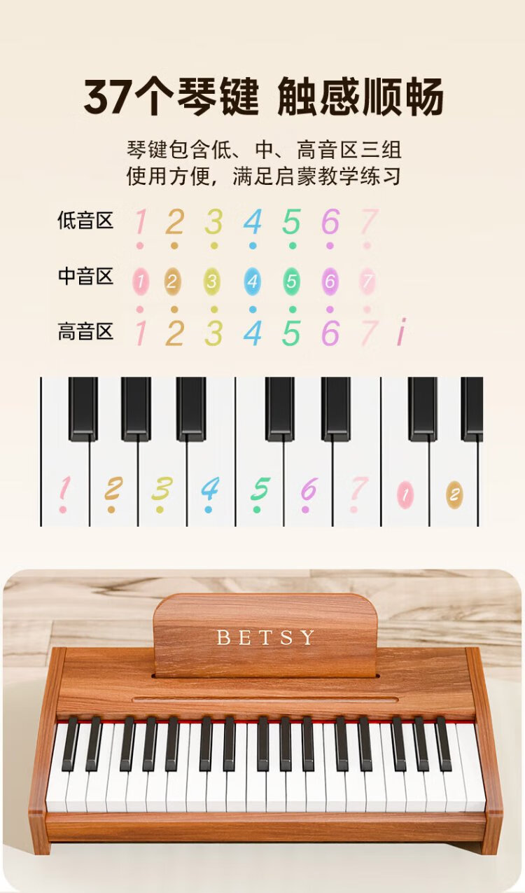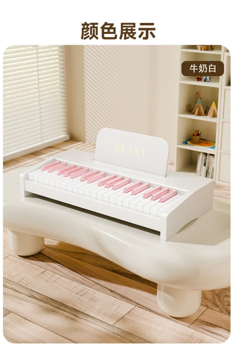 Betsy Children's Piano Toy Electronic Keyboard Early Education Puzzle 1-3-6 Years Old Baby Baby First Birthday Gift Small Piano Milk White-37 Keys-Single Bluetooth+Bracket+Piano Bench