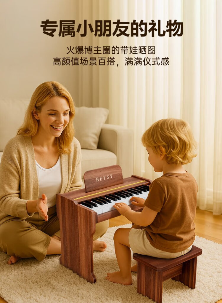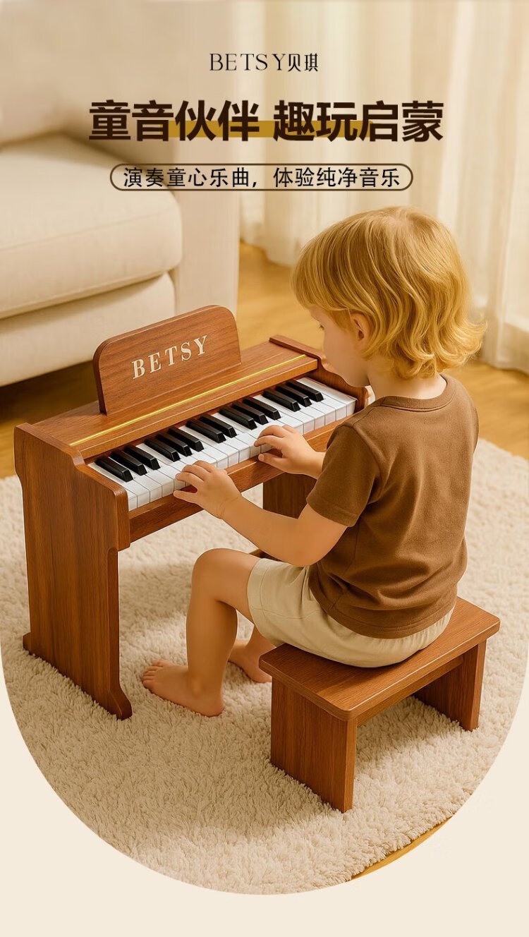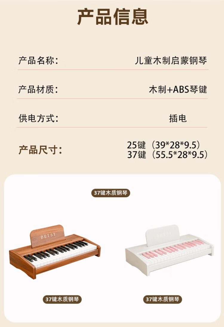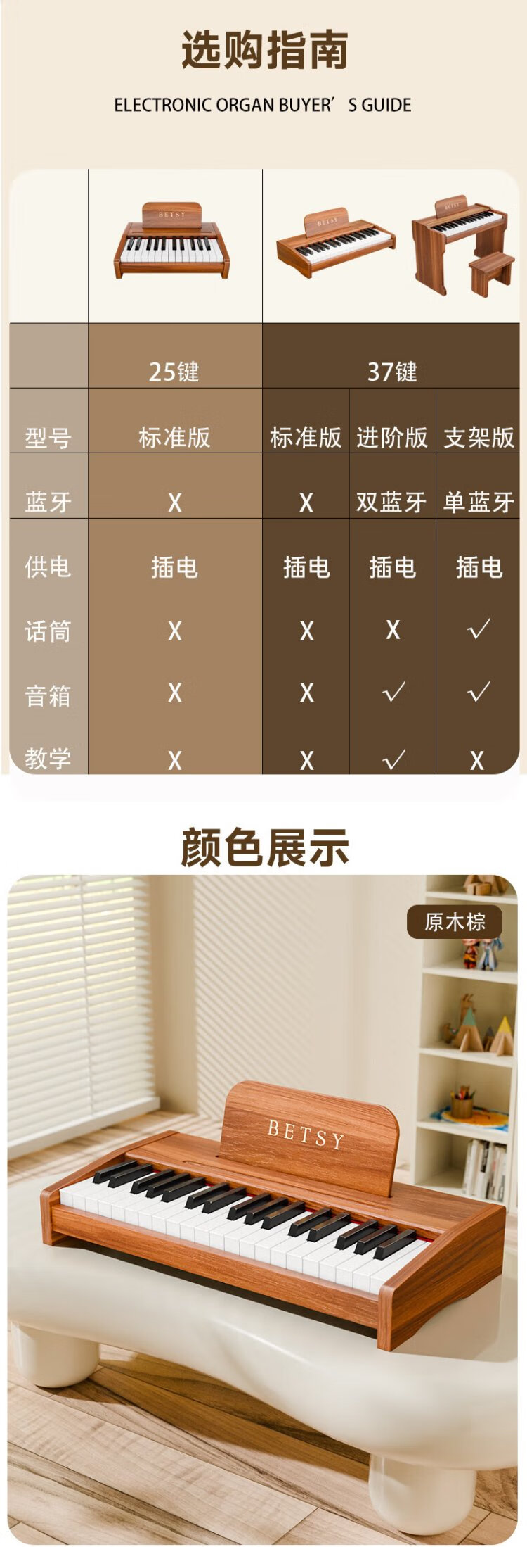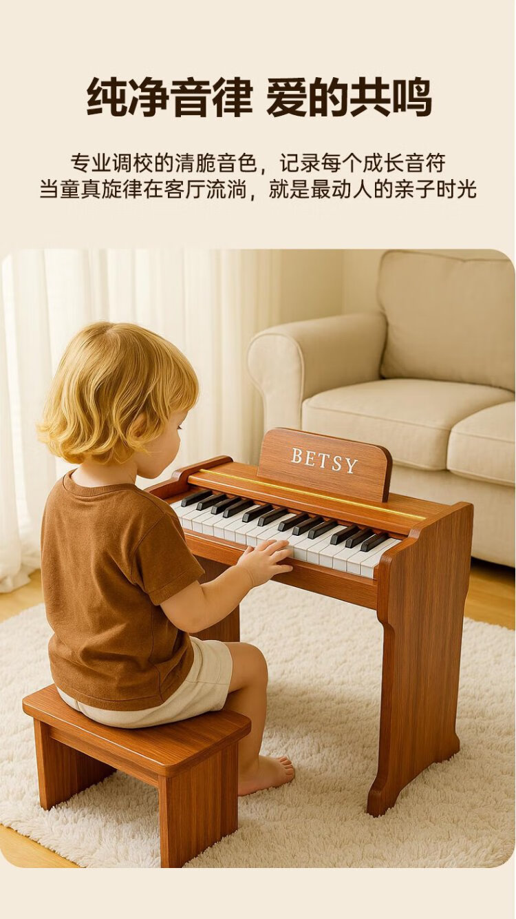 Betsy Children's Piano Toy Electronic Keyboard Early Education Puzzle 1-3-6 Years Old Baby Baby First Birthday Gift Small Piano Milk White-37 Keys-Single Bluetooth+Bracket+Piano Bench