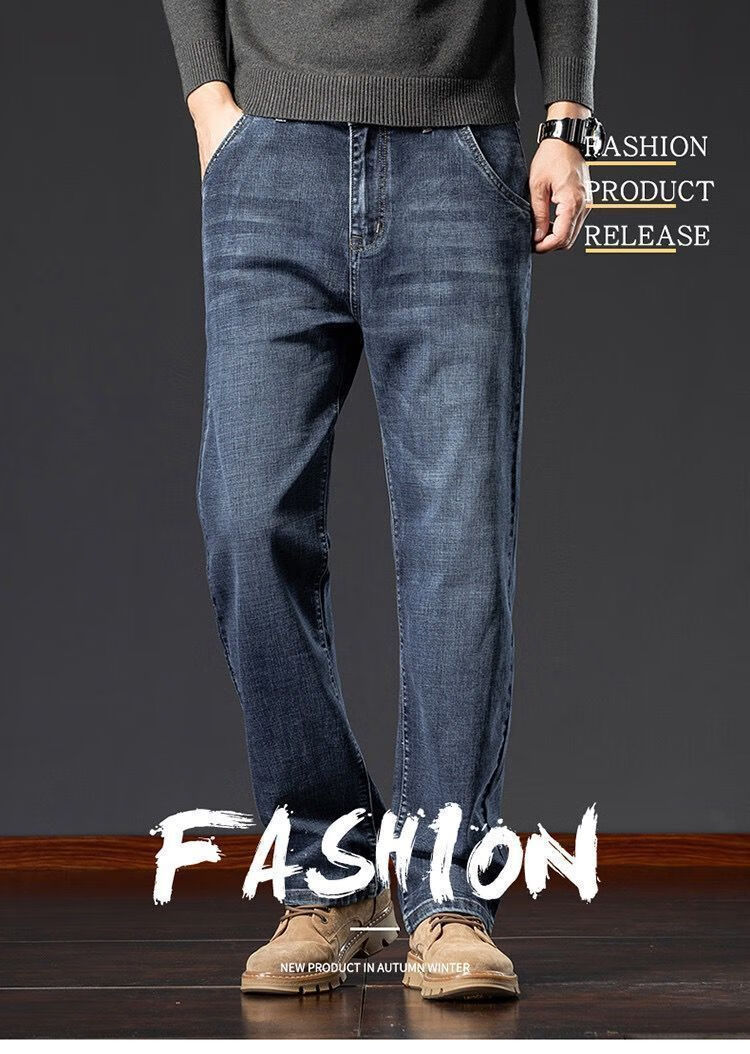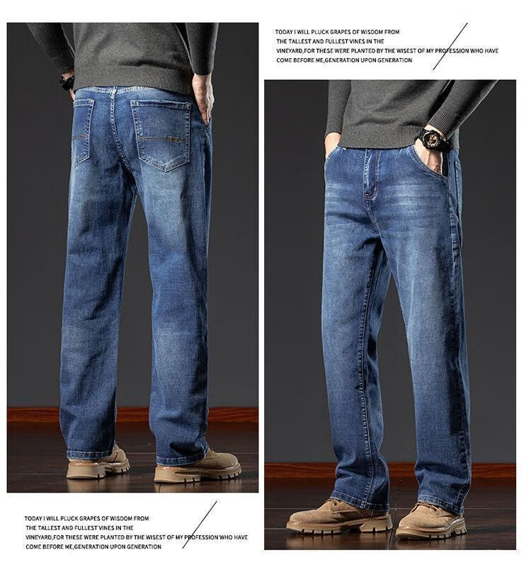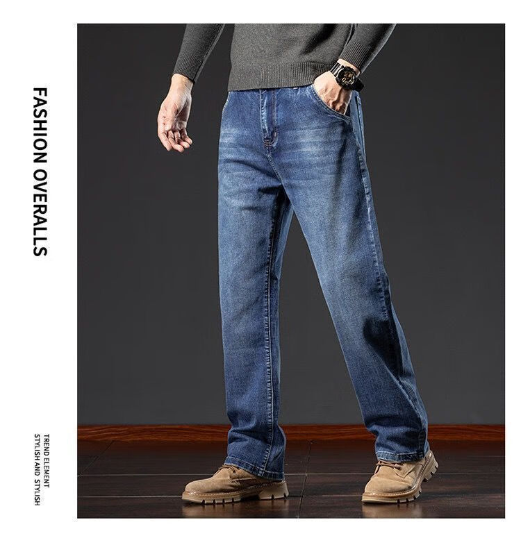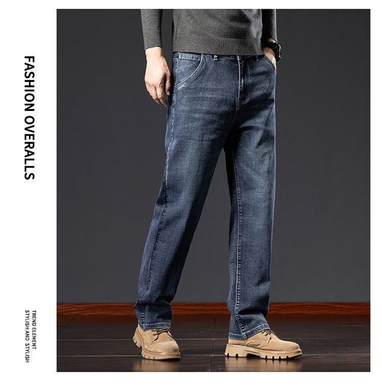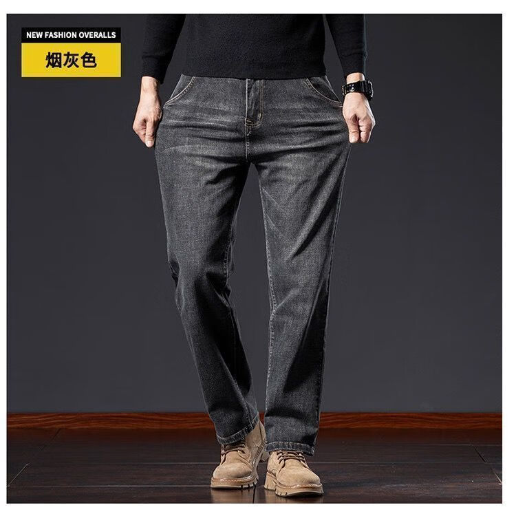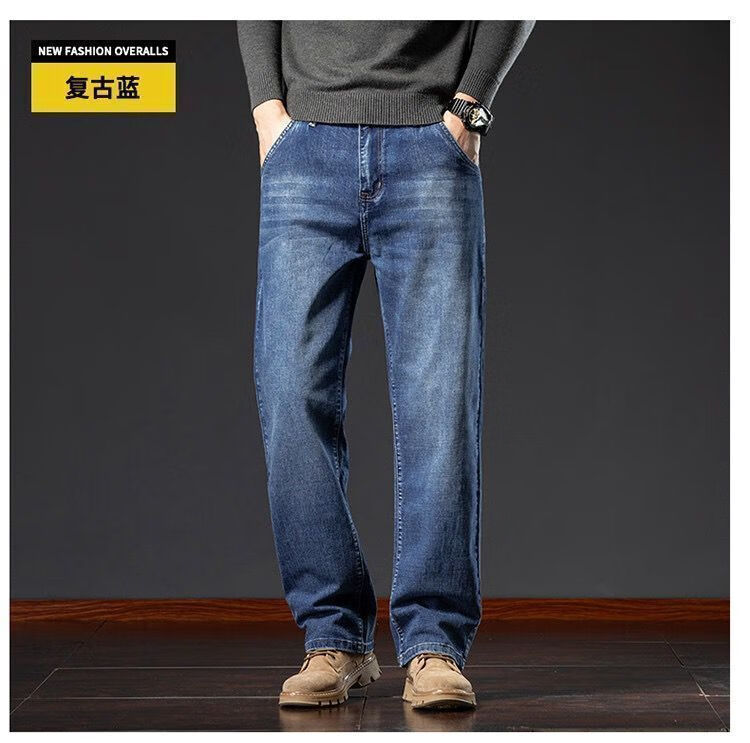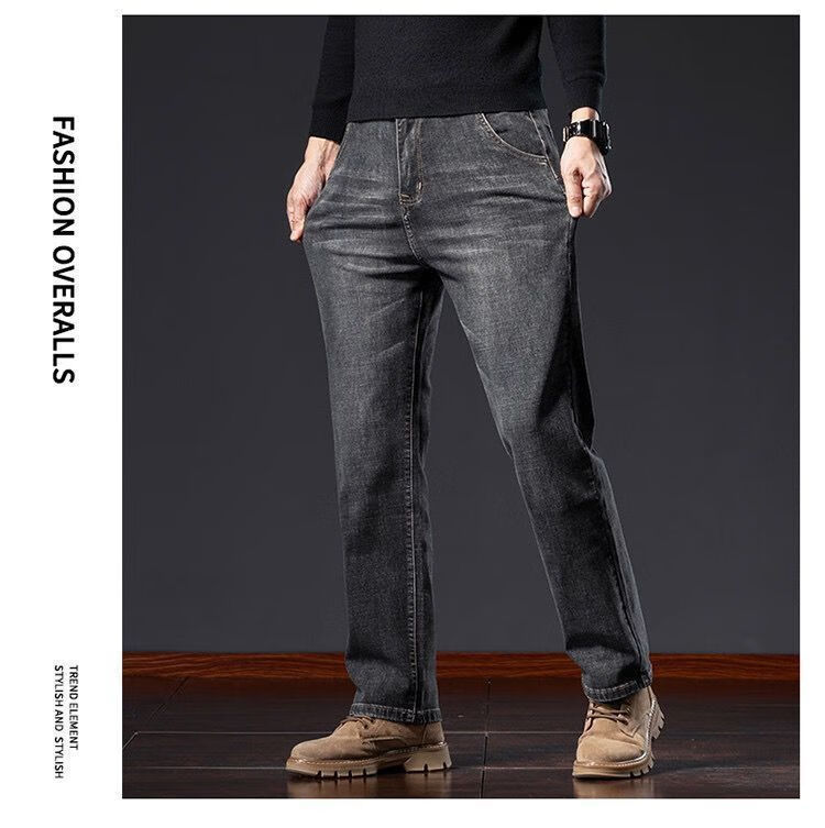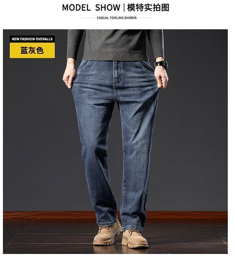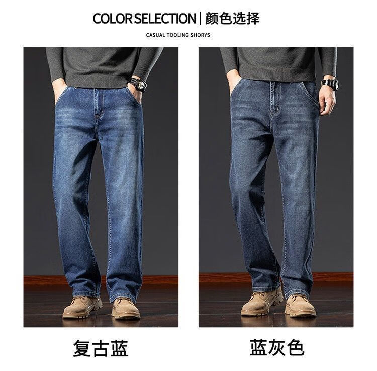 【宽松直筒】高品质牛仔裤男四季款宽松直筒商务休闲百搭长裤 蓝灰色 32 【建议125-150斤】