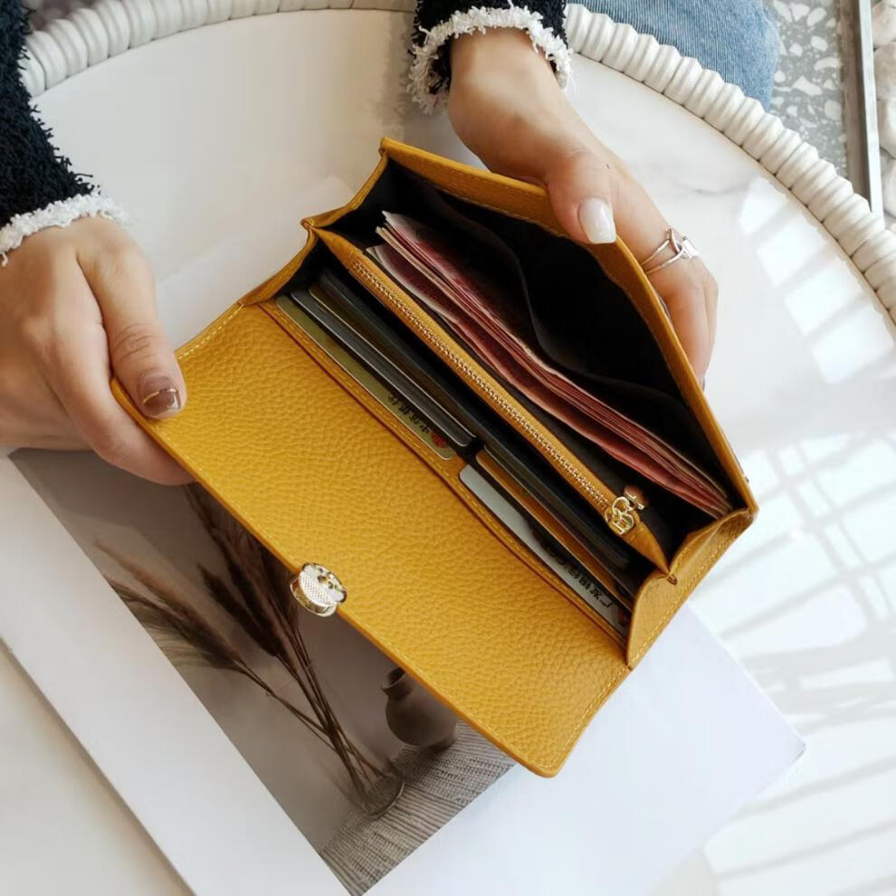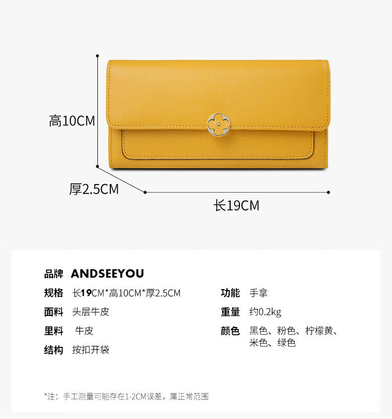 ANDSEEYOU brand long wallet women's new yellow cowhide fortune wallet fashion four-leaf clover soft cowhide clutch Chinese Valentine's Day yellow as shown in the picture