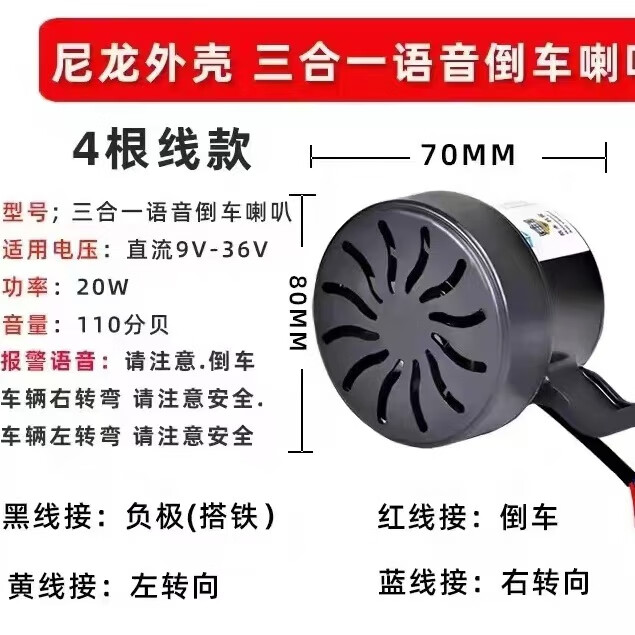 Litian truck reversing steering bus voice horn three-in-one reversing horn 12V24V human language waterproof horn three-in-one voice horn full metal shell 4 wires