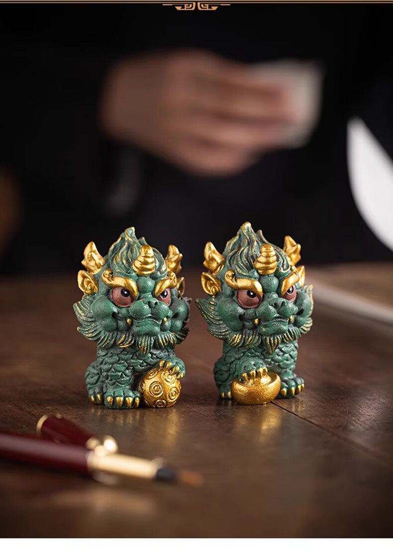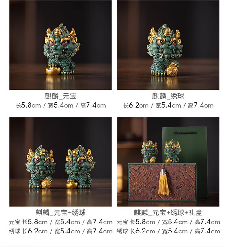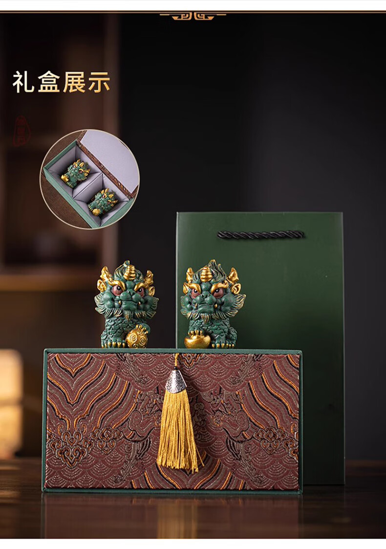 BOSSY Forbidden City Style, Cultural Creation, National Trend, Lucky Beast Kirin Pair, Tea Pets, Desktop Ornaments, Creative Crafts, Business Gifts, Kirin Pair, Gift Box