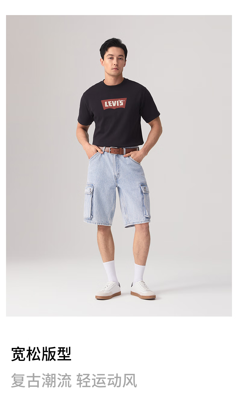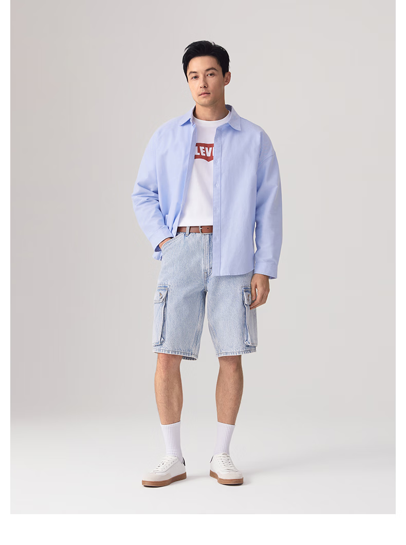 Levi s shopping mall same style Levi's 25 new men's casual workwear denim shorts 001GU light blue 34 (12)