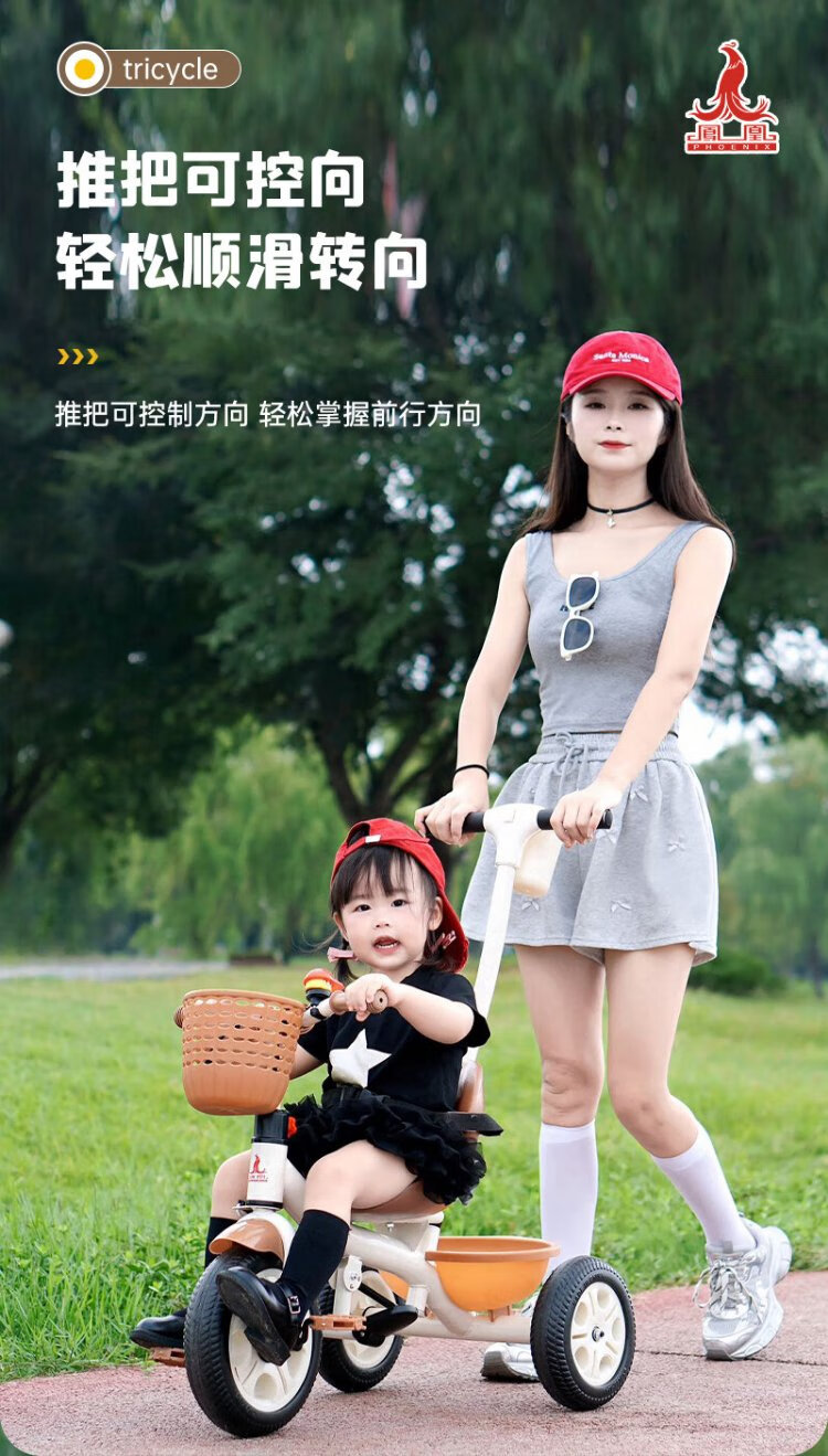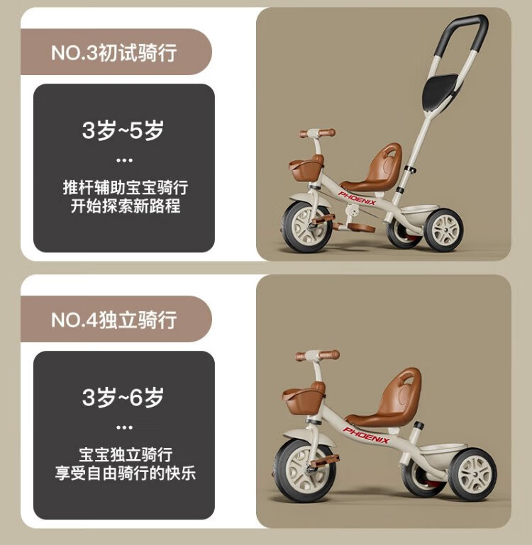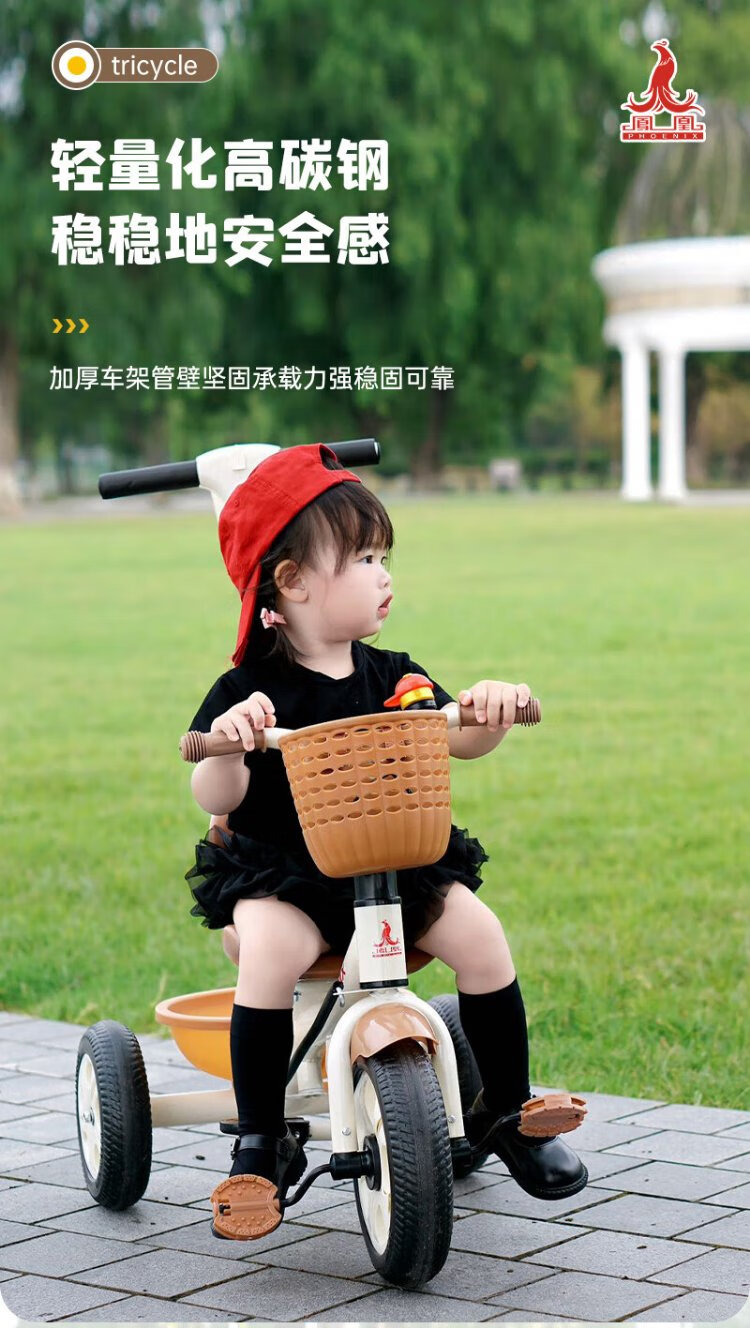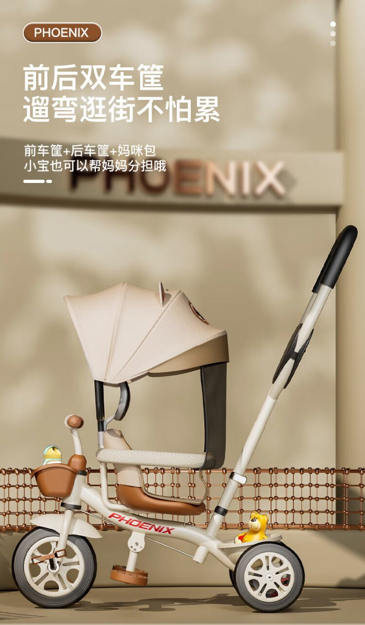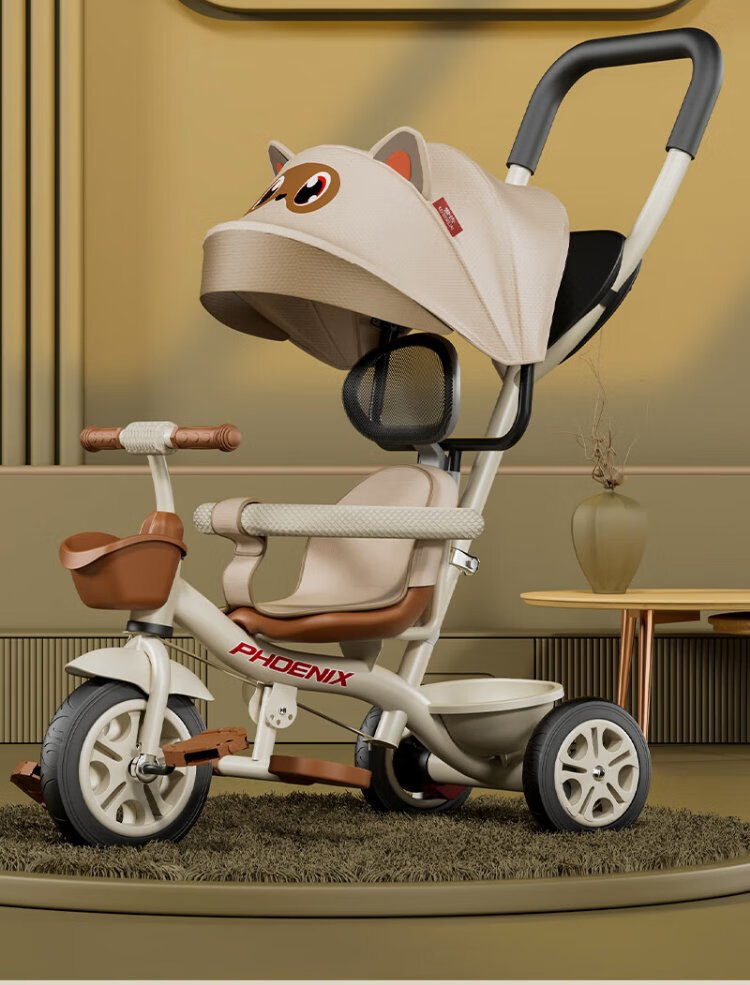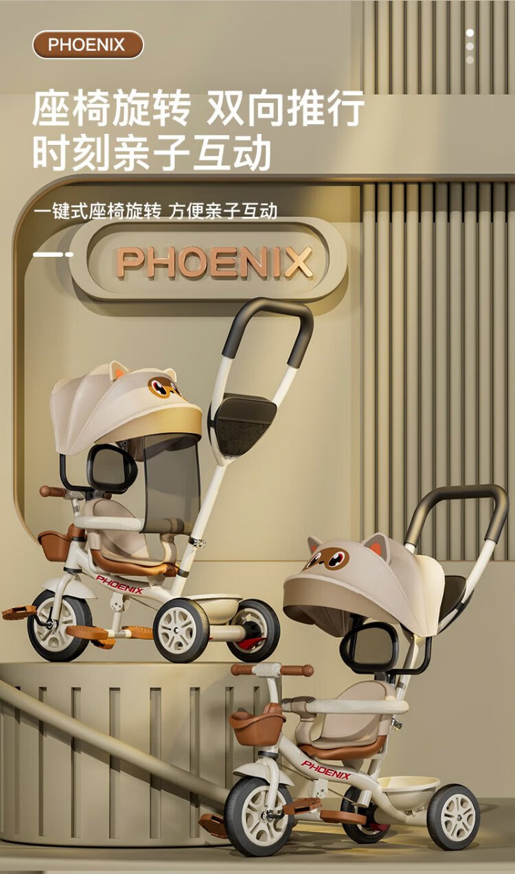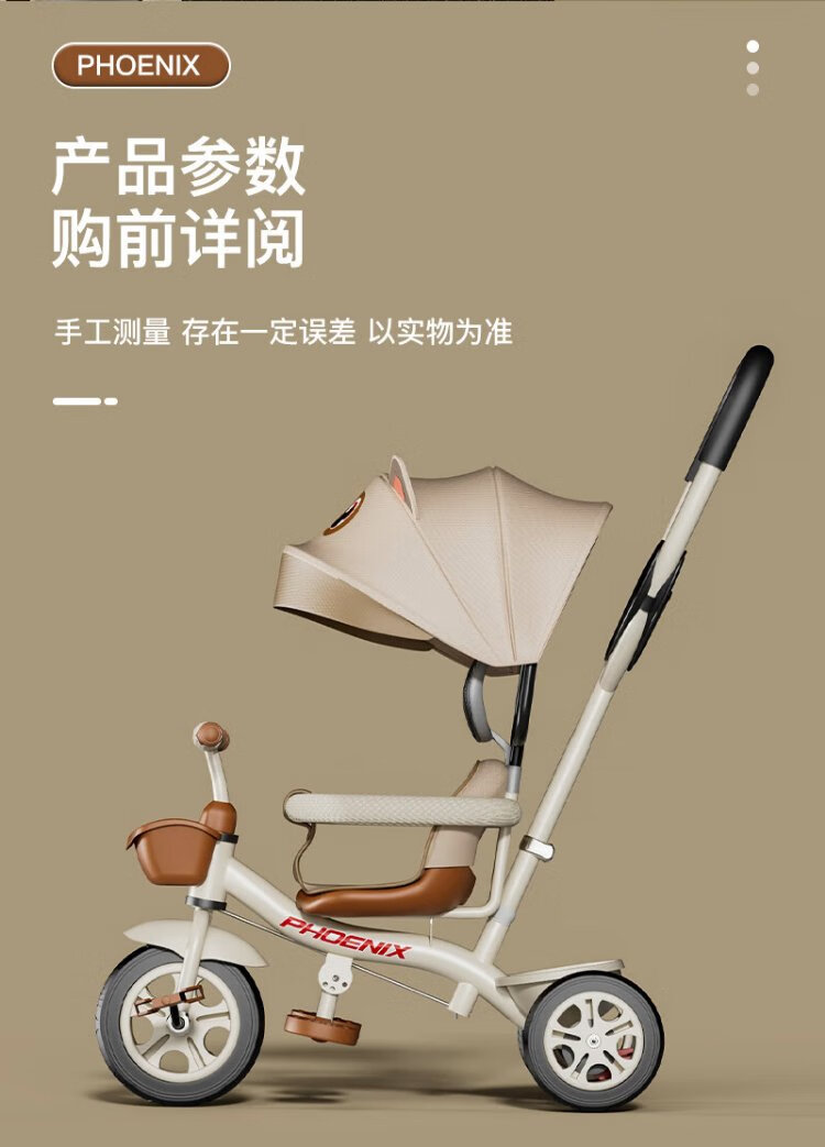 Phoenix (Phoenix) children's tricycle, bicycle, pushable baby tricycle, children's tricycle, pushable and rideable children's bicycle, three-wheel coffee color | titanium empty wheel + pedal + push handle