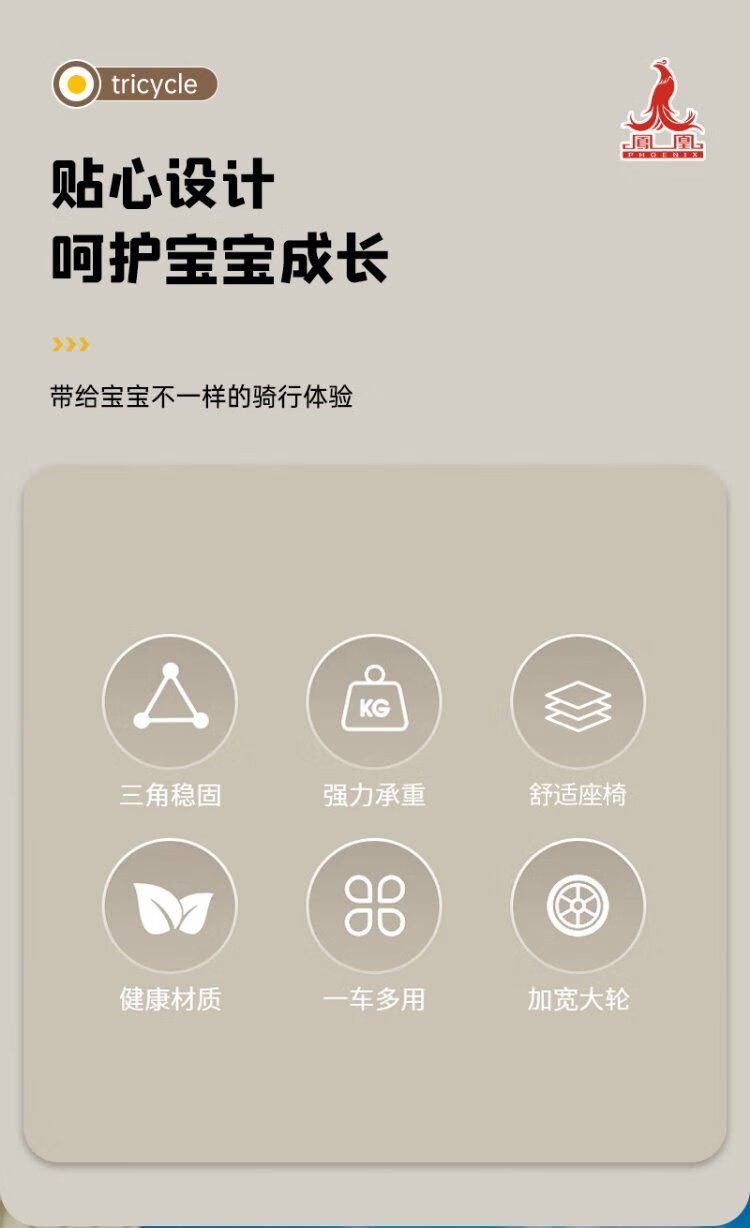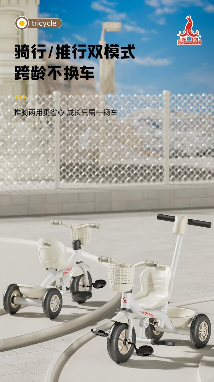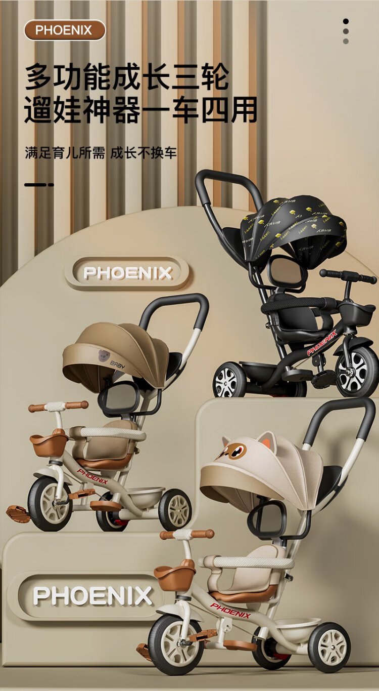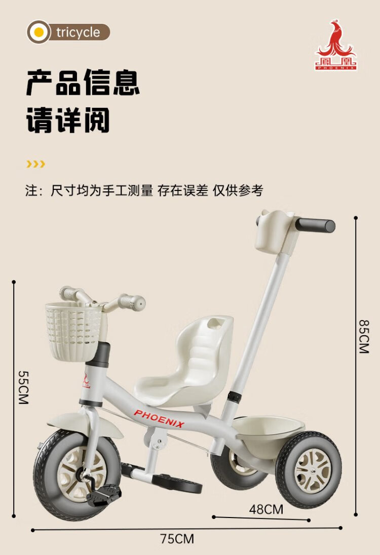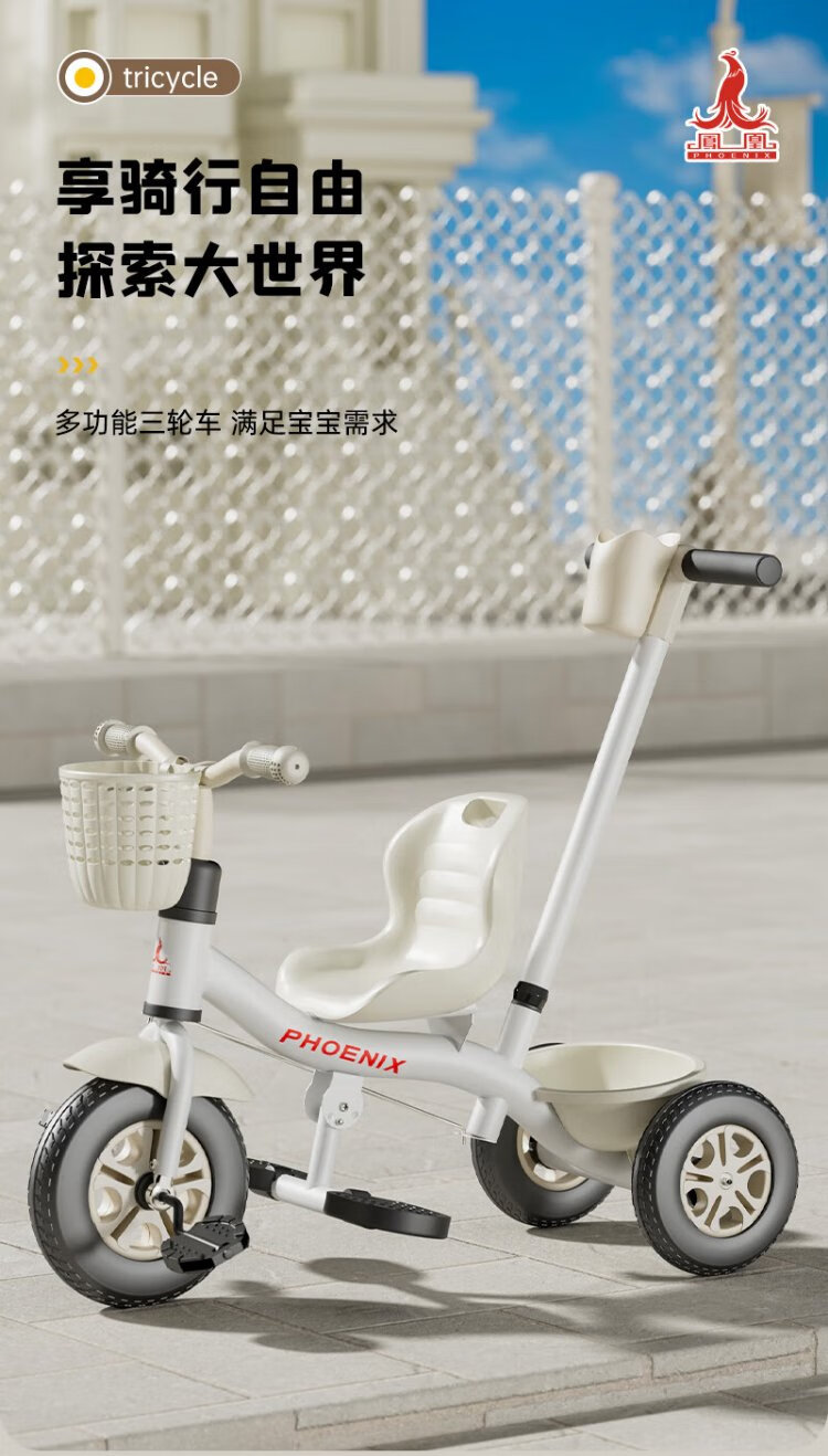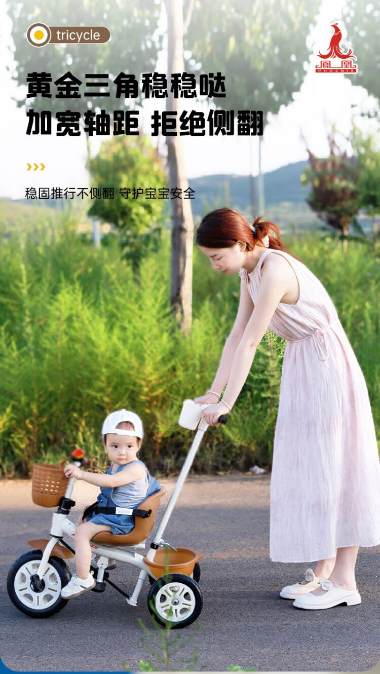 Phoenix (Phoenix) children's tricycle, bicycle, pushable baby tricycle, children's tricycle, pushable and rideable children's bicycle, three-wheel coffee color | titanium empty wheel + pedal + push handle
