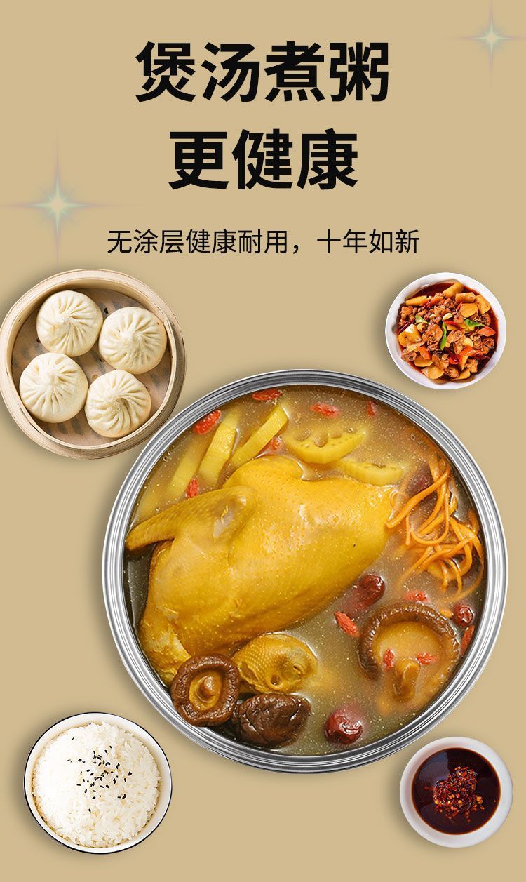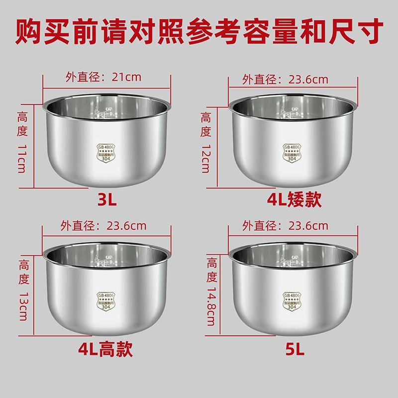 Suitable for Midea thickened uncoated rice cooker liner 1.6L3L4L5L food grade 304 stainless steel accessories 3L-food grade 304 stainless steel liner height 110