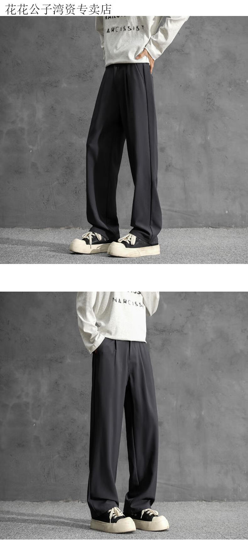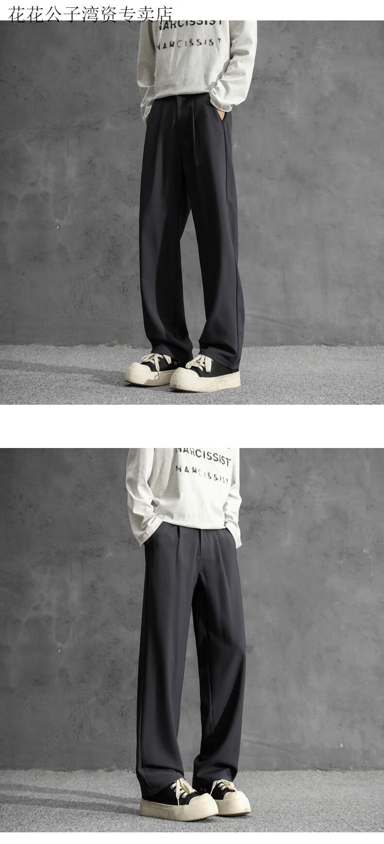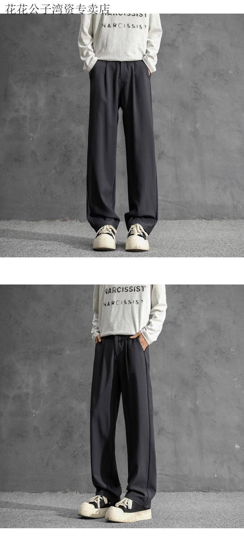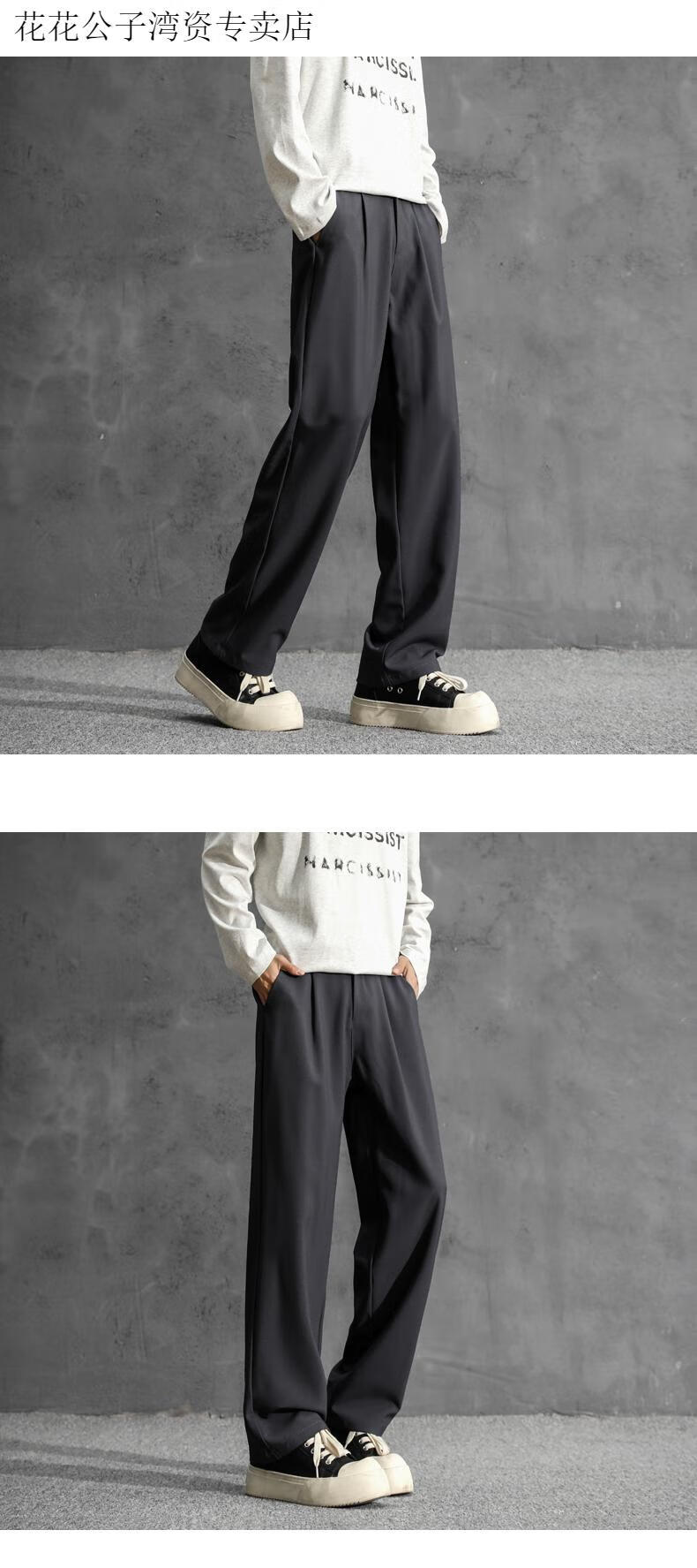 Playboy (PLAYBOY) pure cotton trousers for boys, straight, loose and drapey, spring and autumn casual trousers, American high-waisted suit trousers, dark gray S