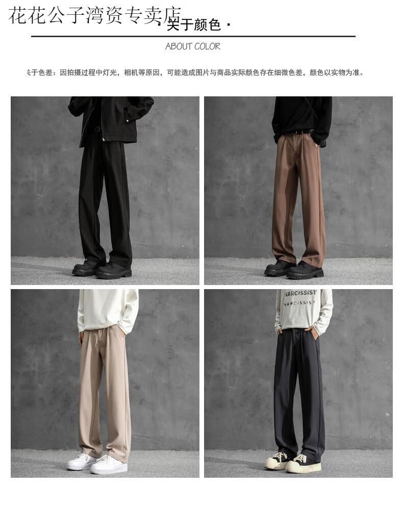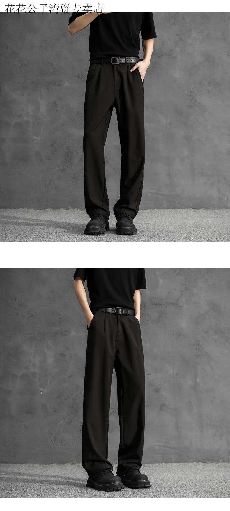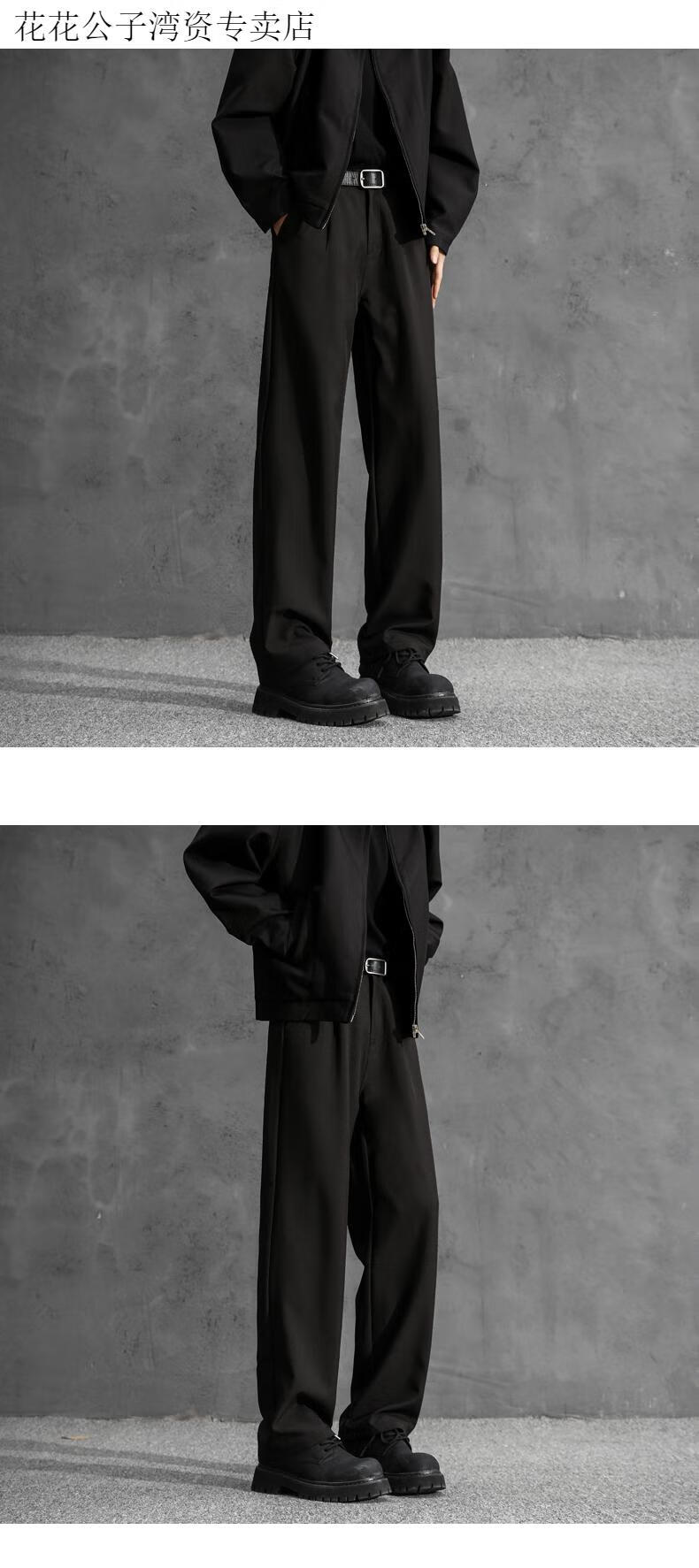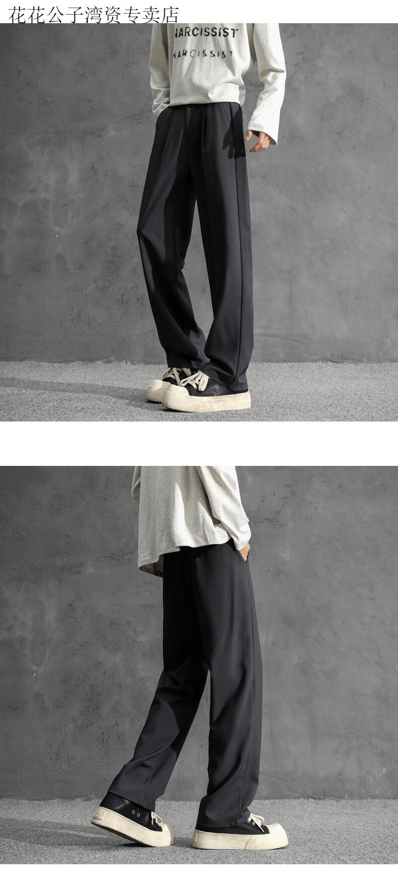 Playboy (PLAYBOY) pure cotton trousers for boys, straight, loose and drapey, spring and autumn casual trousers, American high-waisted suit trousers, dark gray S